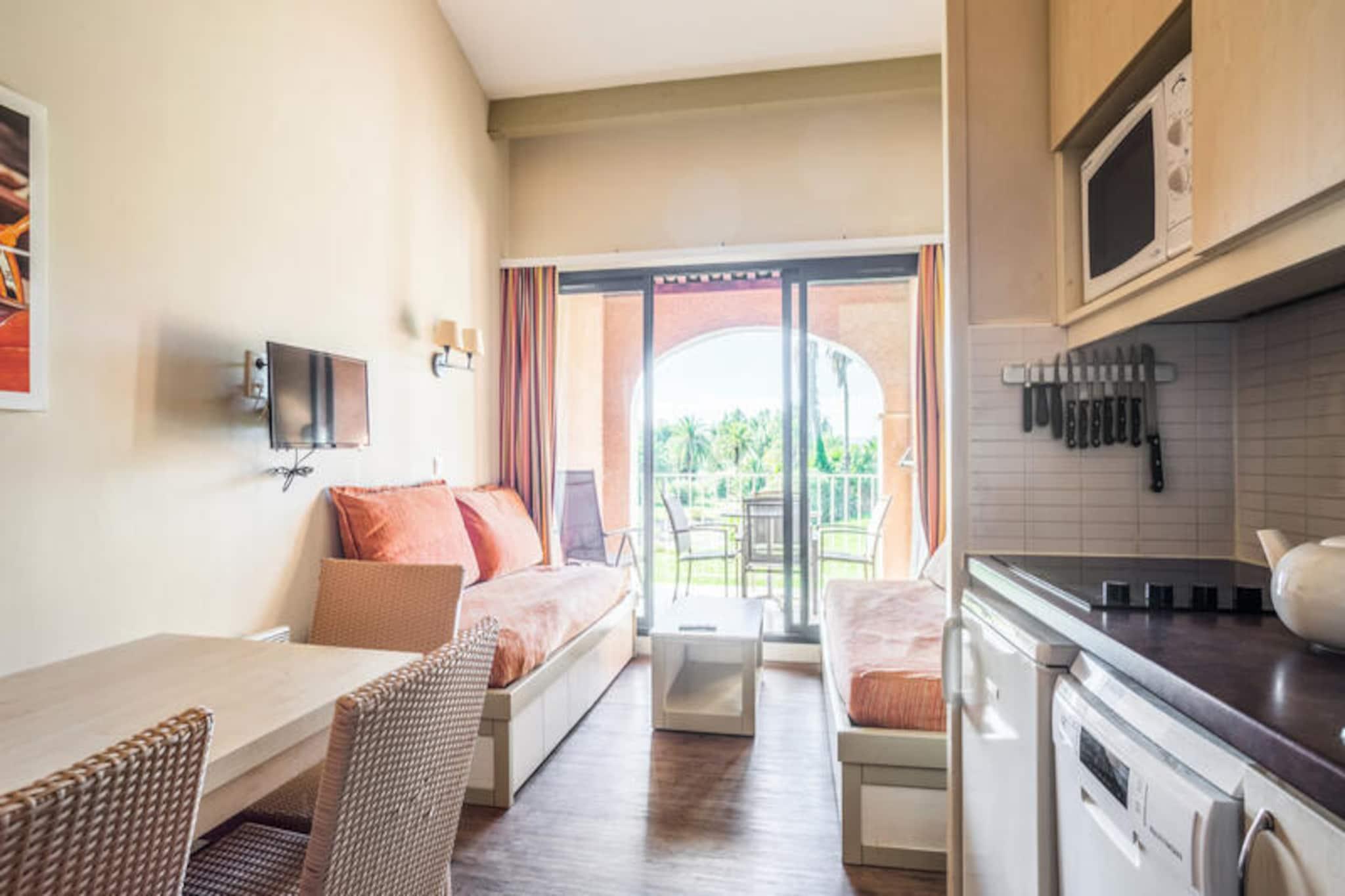 Nestled near the Massif des Maures, this inviting holiday apartment is set within a picturesque 16-hectare park, just 500 meters from the beach. Styled in charming Proven?al architecture, the property features a cozy living room with two single sofa beds, a cabin with bunk beds, and a private balcony for relaxation. It’s pet-friendly and comes with included bed linen, while Wi-Fi access and end-of-stay cleaning are available for an additional fee, ensuring a hassle-free stay. Perfectly located for exploring Grimaud and nearby attractions, the property is just 10 km from the vibrant streets of Saint-Tropez. Local markets, charming cafes, and scenic walking paths offer endless options for dining and leisure. For a refreshing escape, guests can enjoy the residence’s outdoor swimming pool, open from April to October, with extended hours in the summer. The apartment boasts a well-equipped kitchen with an open layout, making meal preparation a breeze. The bathroom includes a bathtub, complemented by a separate toilet for added convenience. Free outdoor parking is available within the residence, subject to availability. Whether you seek tranquility or adventure, this delightful retreat offers the perfect balance for an unforgettable getaway.