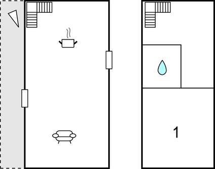Badezimmer (nr. 1) - WC. Warmes und kaltes Wasser. Dusche