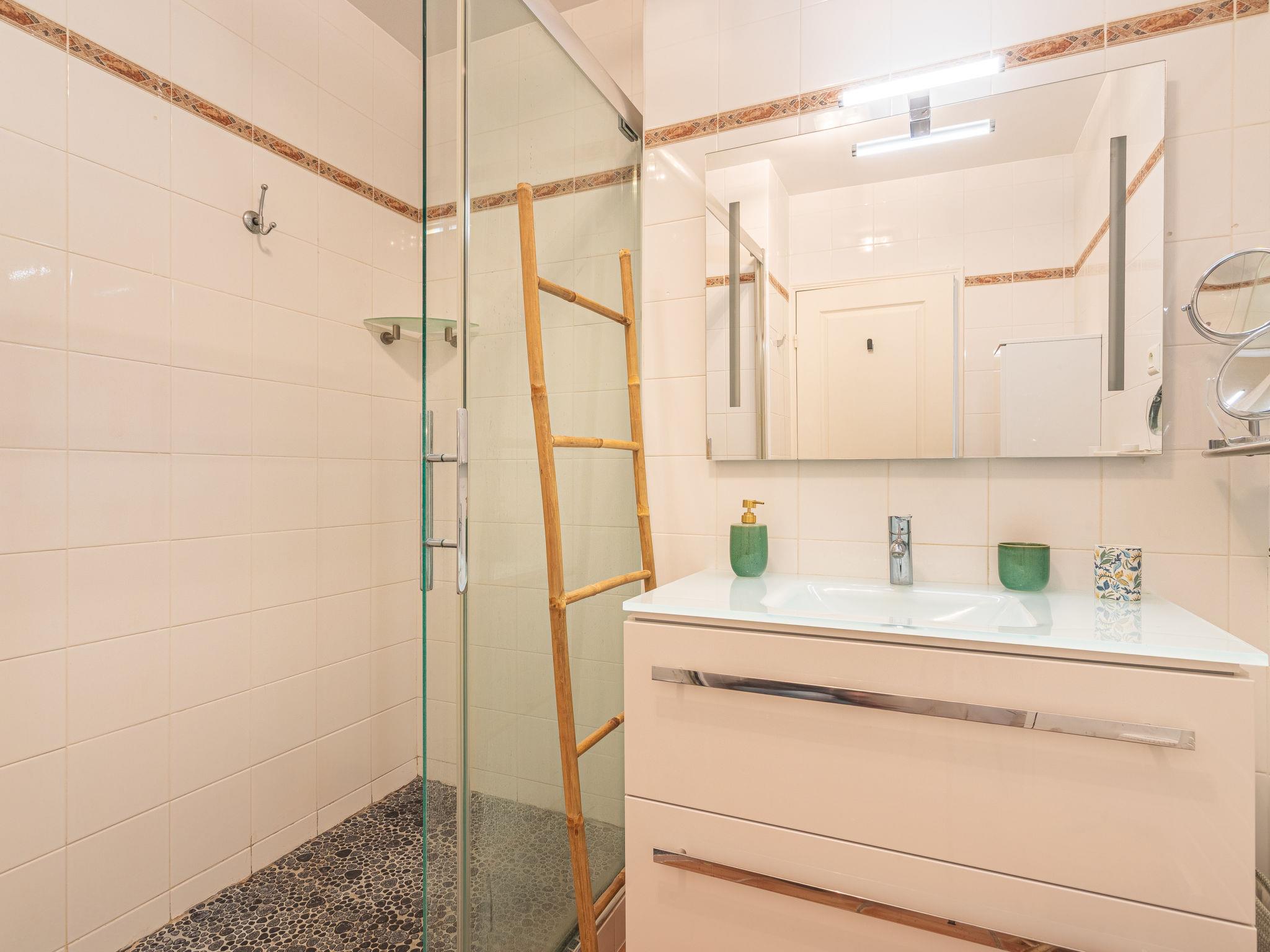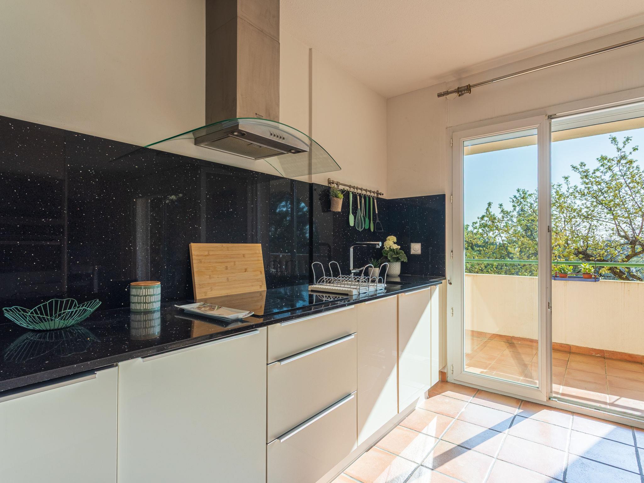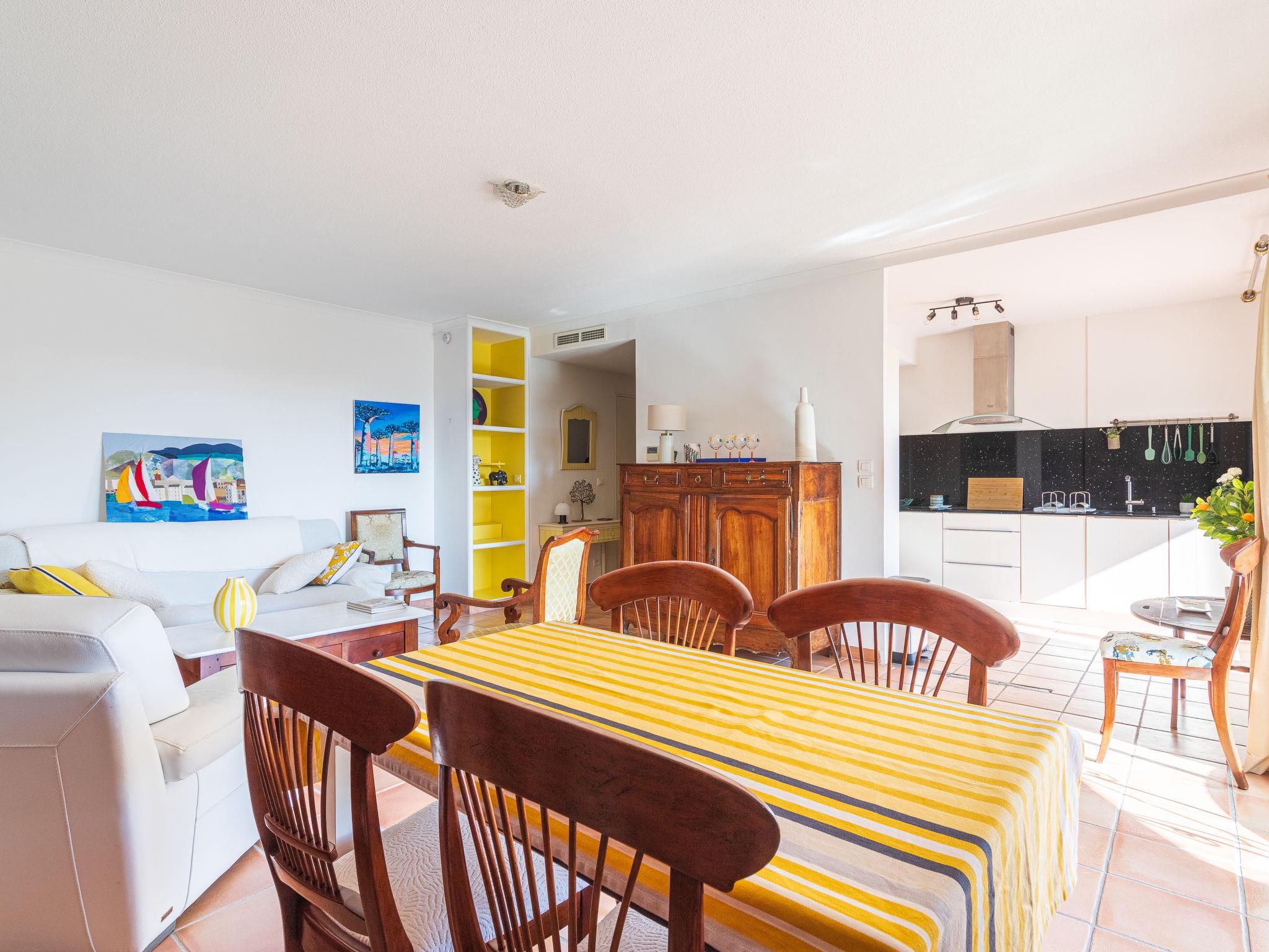 3-room apartment 75 m2, on the upper ground floor. Spacious, beautiful furnishings: entrance hall. Living/dining room with dining table and TV (flat screen). Exit to the terrace. 1 room with 1 french bed (160 cm, length 190 cm). Exit to the terrace. 1 room with 1 double sofabed (150 cm, length 190 cm). Exit to the terrace. Open kitchen (oven, dishwasher, 3 ceramic glass hob hotplates, toaster, kettle, microwave, freezer, electric coffee machine). Shower, sep. WC. Electric heating, air-conditioning. Terrace 25 m2, east facing position. Terrace furniture. Distant view of the sea and the countryside. Facilities: washing machine, iron, hair dryer. Internet (WiFi, extra). Garage space n 24 au sous-sol/14m2 (1 car). Please note: TV only FR. Smoke alarm. Offer by a private individual according to Art. 155, IV of CGI.