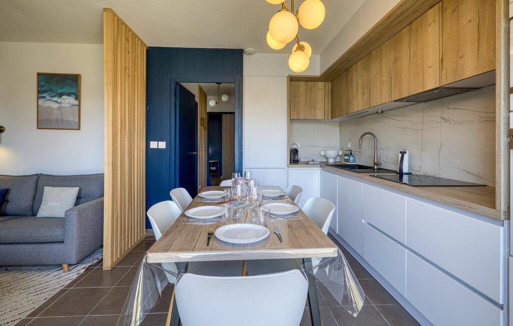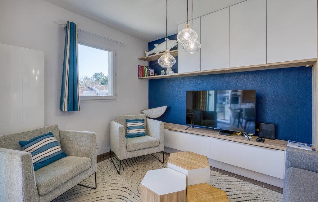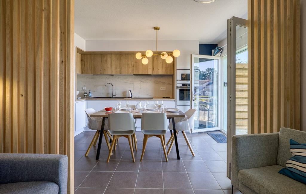 In idealer Lage für einen Urlaub mit der ganzen Familie empfängt Sie dieses einladende Haus. Hell und wohnlich mit maritimen Akzenten bildet es einen schönen Rahmen um die gemeinsame Zeit. Stärken Sie sich morgens mit einem Frühstück im Wohnzimmer mit geöffneter Terrassentür, bevor Sie an den Pool oder zu einem Ausflug aufbrechen. Freuen Sie sich auf gemütliche Abende auf dem Sofa und einladenden Sesseln.