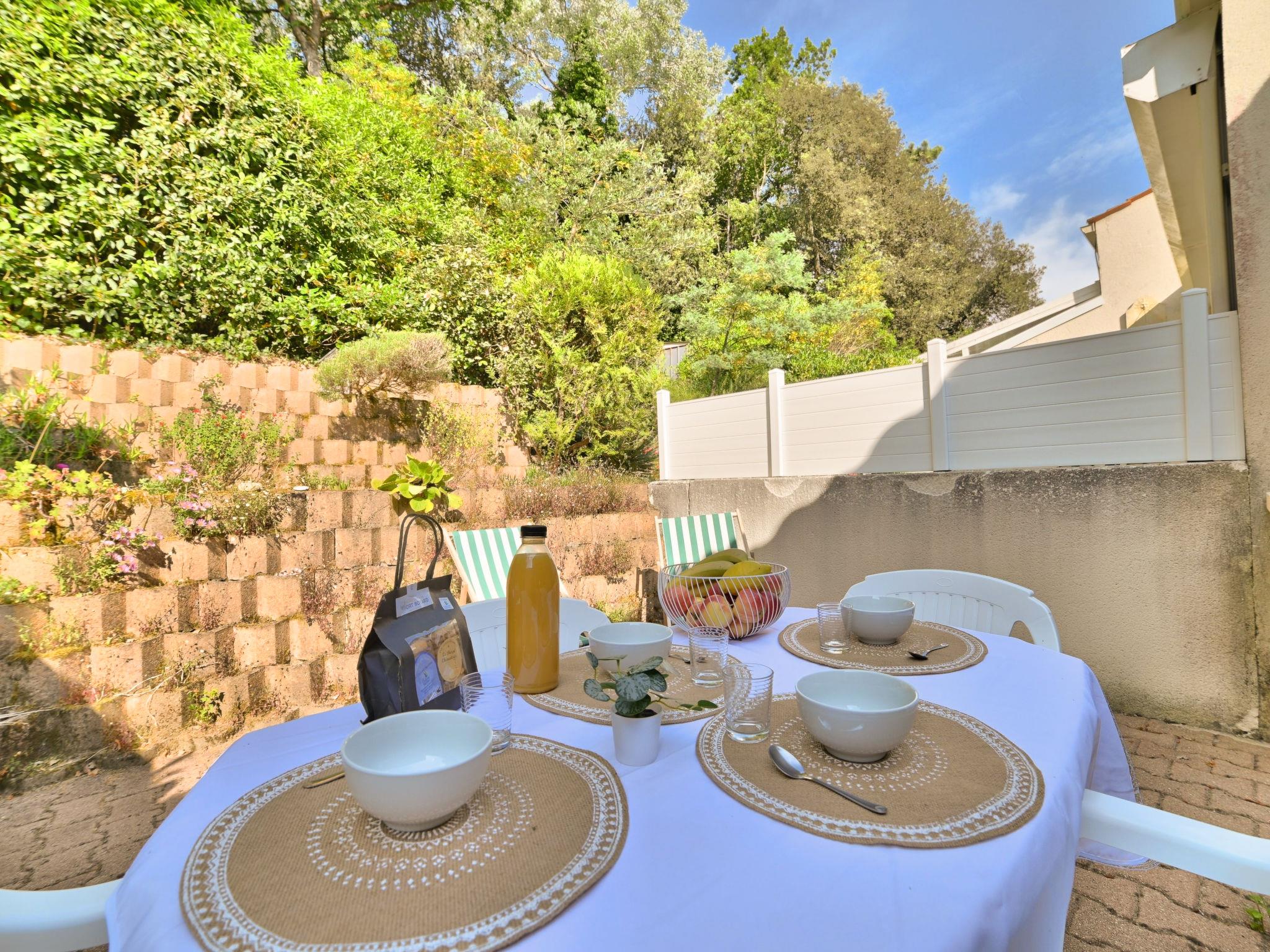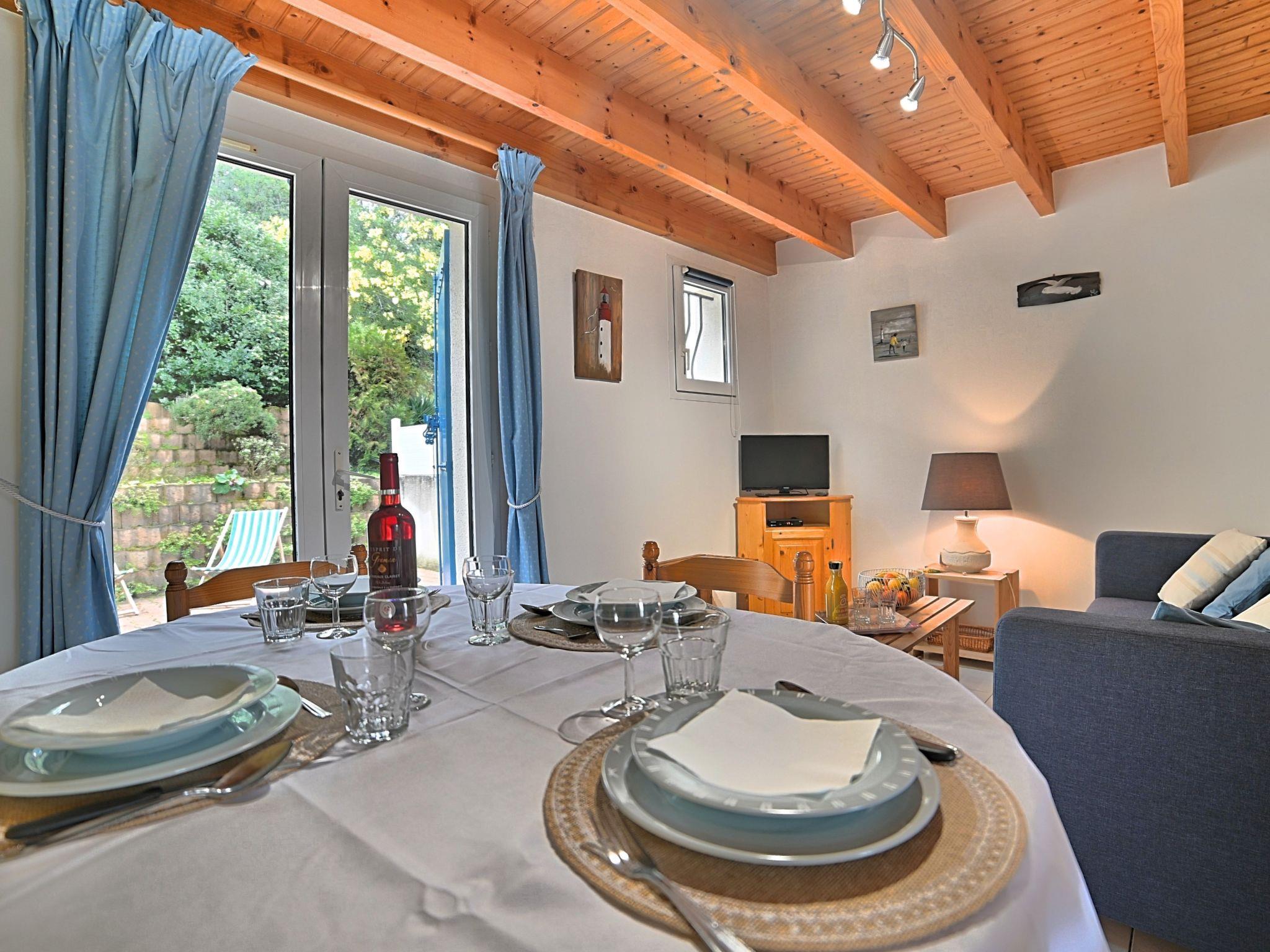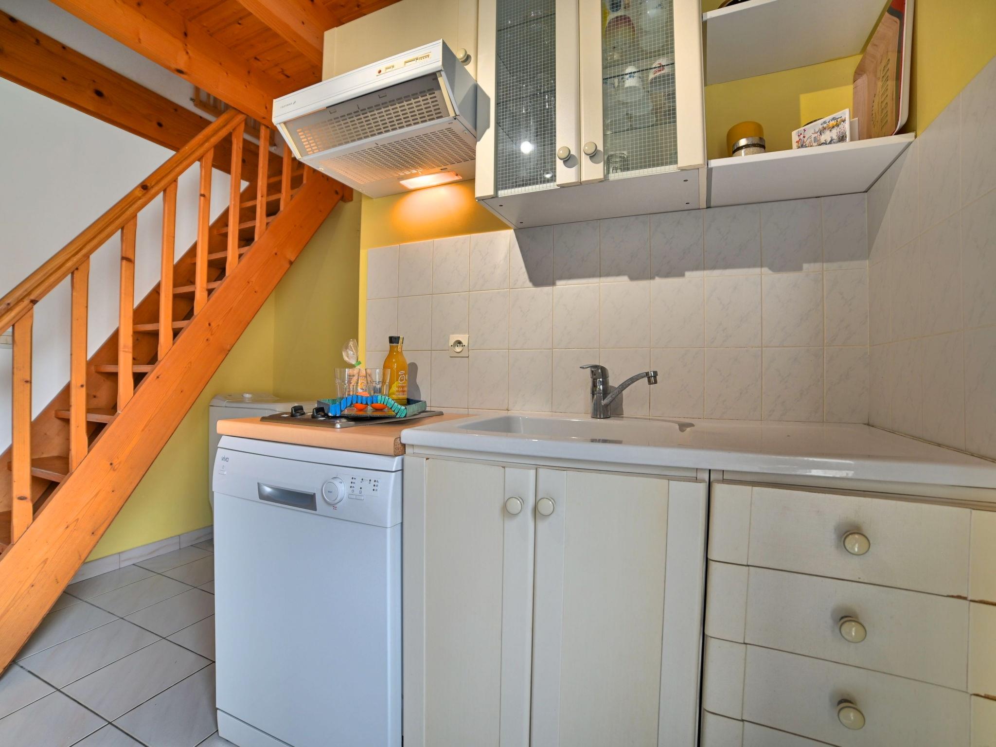 3-room terraced house 39 m2 on 2 levels. Living/dining room with TV and flat screen. Exit to the terrace. Kitchenette (2 hot plates, mini-oven, dishwasher, toaster, microwave, electric coffee machine). Shower, sep. WC. Electric heating. Upper floor: 1 room with 1 french bed (1 x 140 cm, length 190 cm). 1 room with sloping ceilings with 2 beds (90 cm, length 190 cm). Large terrace 30 m2. Terrace furniture, barbecue, deck chairs (3). Facilities: washing machine. Internet (WiFi, extra). Parking at the house. Please note: non-smokers only. Smoke alarm. Offer by a private individual according to Art. 155, IV of CGI. 171400003248C