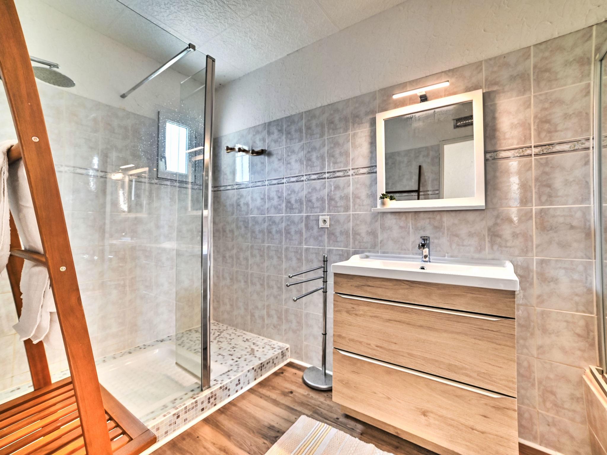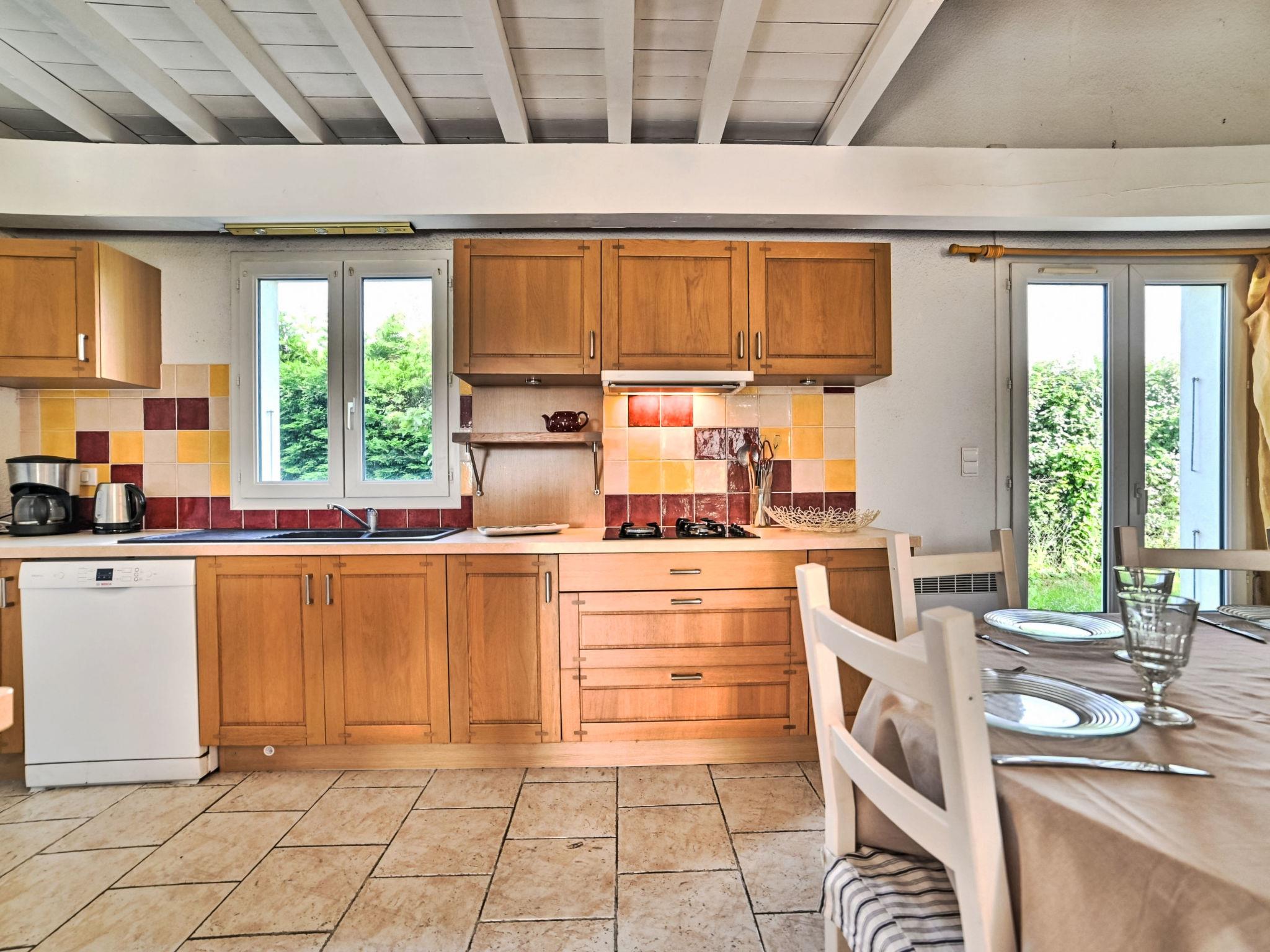 4-room house. Simple furnishings: large living/dining room with TV (flat screen). Exit to the garden, to the terrace. 1 room with 1 french bed (160 cm, length 190 cm). 1 room with 1 french bed (140 cm, length 190 cm). 1 room with 1 french bed (140 cm, length 190 cm). Open kitchen (4 hot plates, oven, dishwasher, toaster, kettle, microwave, electric coffee machine). 2 bathrooms, sep. WC. Electric heating. Garden. Terrace furniture, barbecue, deck chairs. Beautiful, of the garden. Facilities: washing machine, hair dryer. Internet (WiFi, free). Parking. Please note: non-smokers only. Smoke alarm. Offer by a private individual according to Art. 155, IV of CGI.