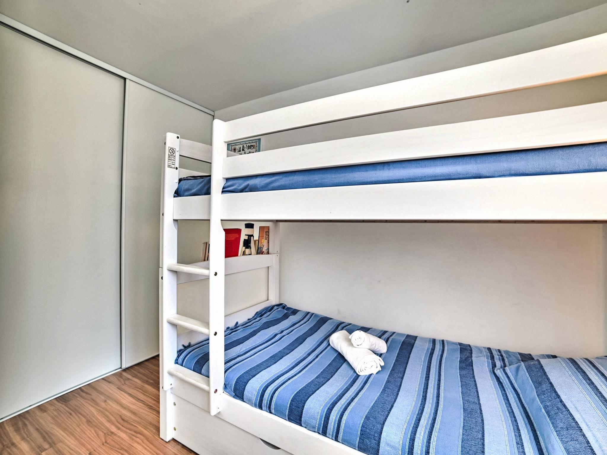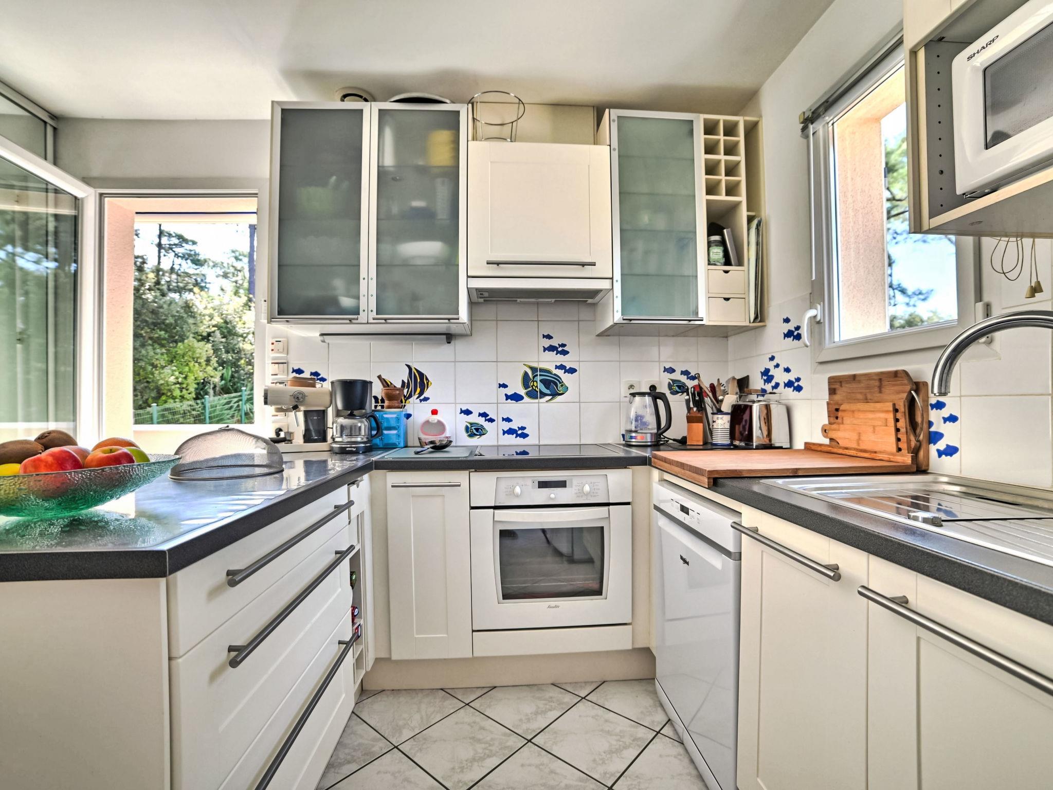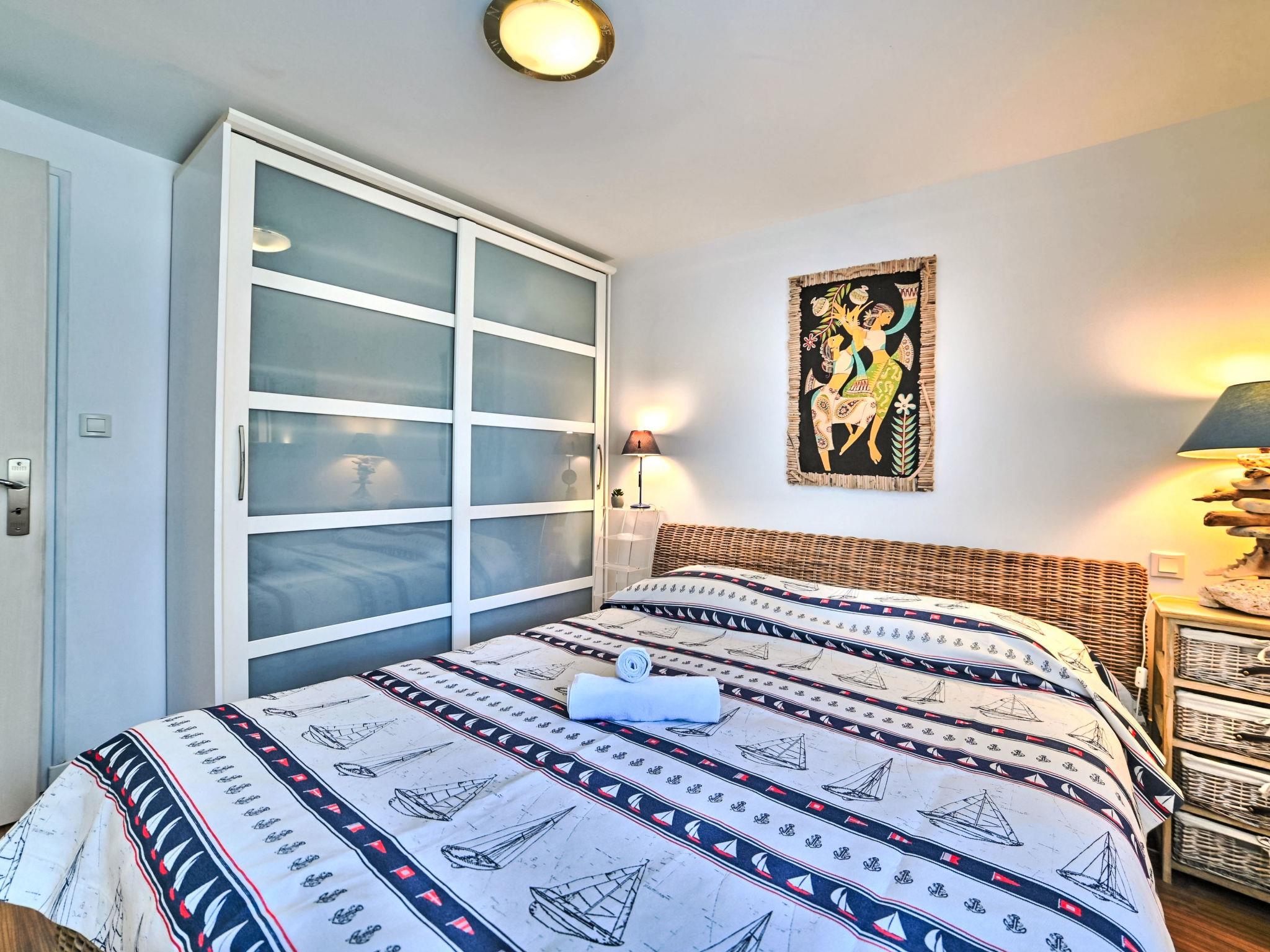 4-room terraced house 82 m2 on 2 levels. Comfortable and beautiful furnishings: living/dining room with satellite TV and air conditioning. Exit to the balcony. Open kitchen (oven, dishwasher, 4 induction hot plates, toaster, kettle, microwave, electric coffee machine). Exit to the balcony. Shower/WC. Electric heating. On the lower ground floor: 1 room with 1 x 2 bunk beds (90 cm, length 190 cm). 1 room with 1 french bed (1 x 160 cm, length 200 cm). 1 room with 1 french bed (160 cm, length 200 cm). Bathroom, sep. WC. Electric heating. Large terrace 20 m2. Terrace furniture, barbecue, deck chairs. Facilities: washing machine, iron, children's high chair, baby cot, hair dryer. Internet (WiFi, extra). Parking (fenced 2 cars). Please note: non-smoking house. Smoke alarm. Offer by a private individual according to Art. 155, IV of CGI. 173370003453C
