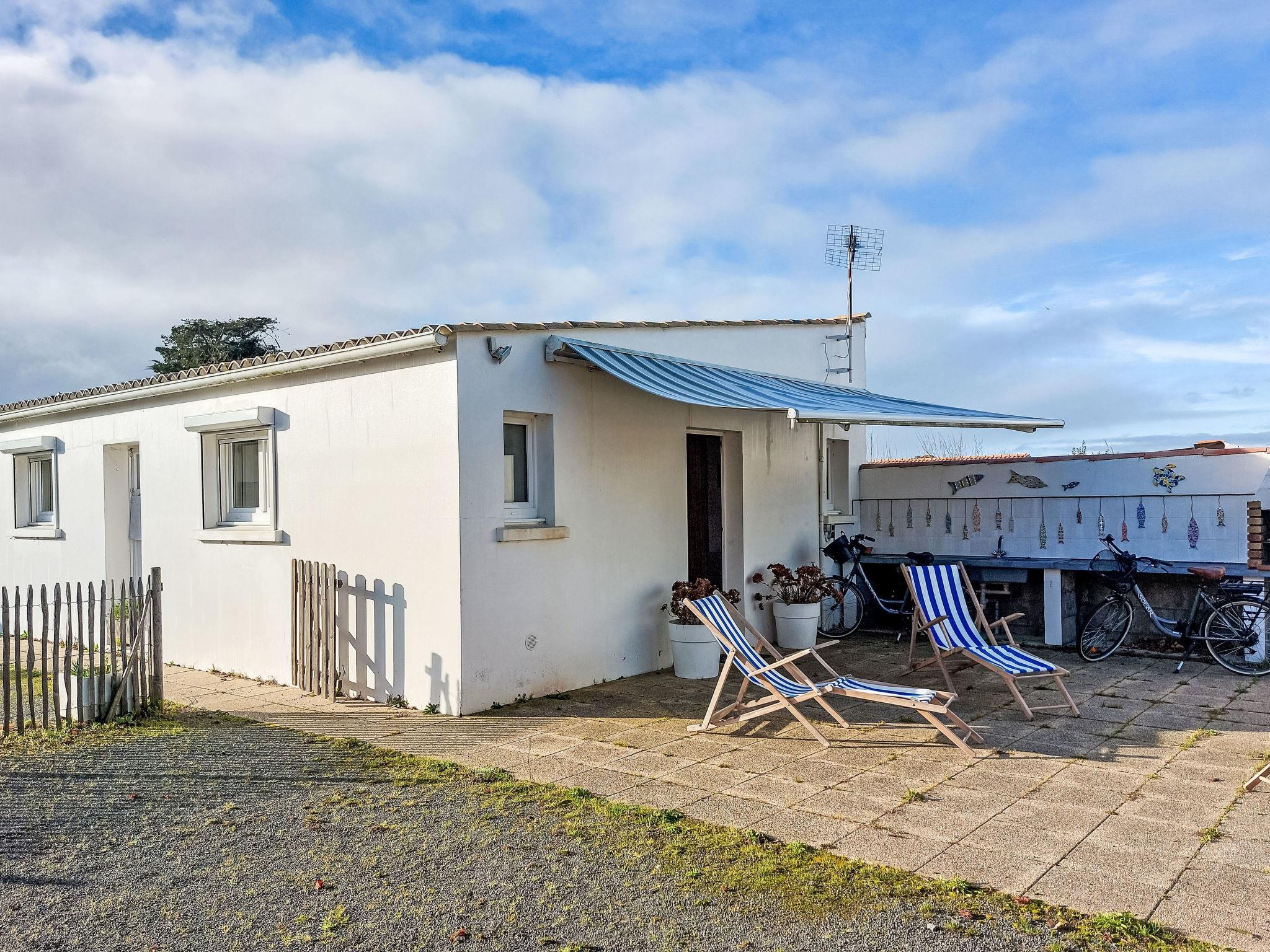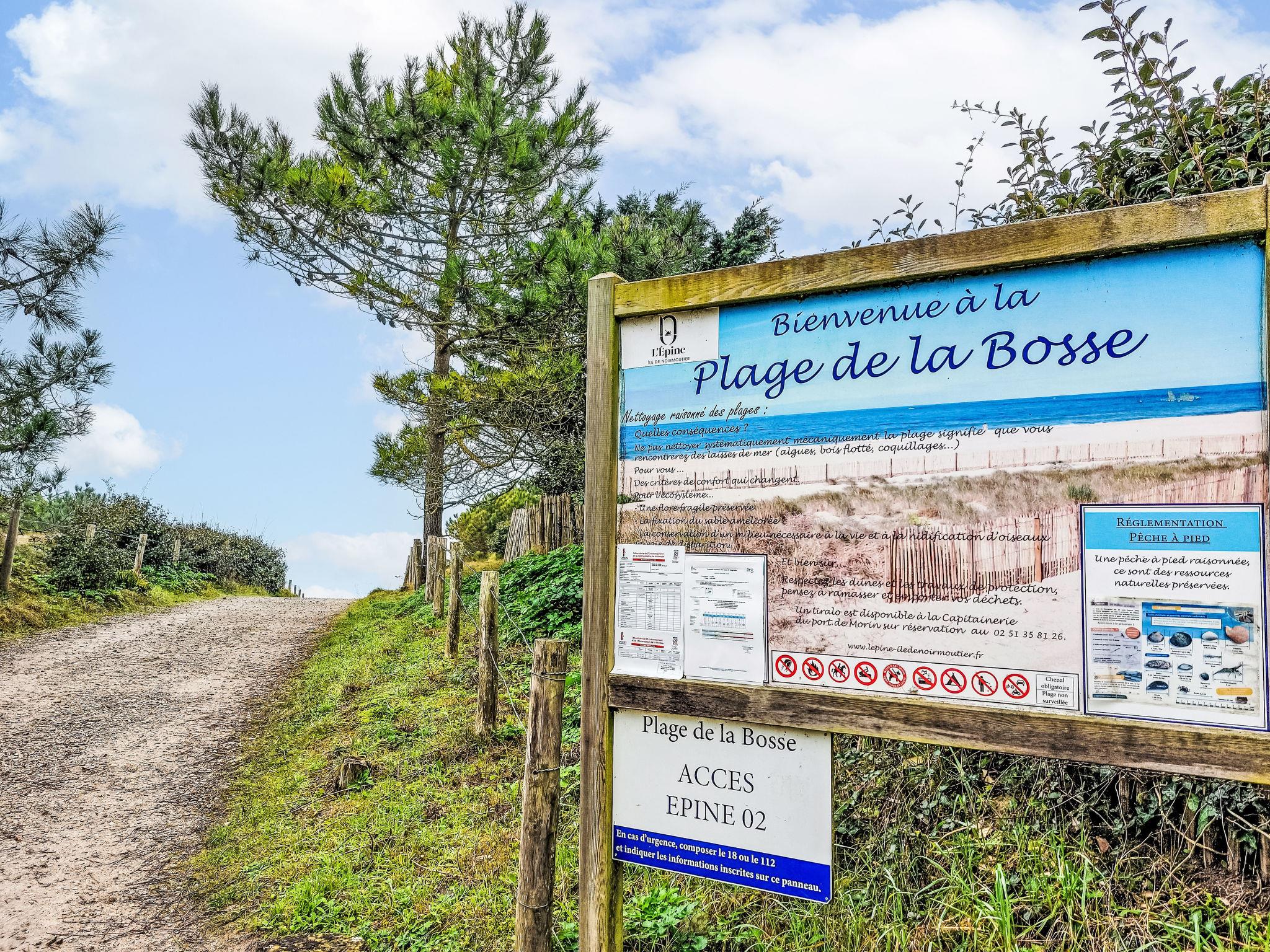 L'Epine-Noirmoutier: House "La Bosse (Villa + Dépendance)". 1.7 km from the centre of L'Epine, 5 km from the centre of Noirmoutier-en-L'Ile, 400 m from the edge of the forest, 630 m from the sea, 630 m from the beach, in a cul-de-sac. Private: property 870 m2 (fenced) with lawn, beautiful garden to relax. Terrace (60 m2), parking (for 3 cars). Shop 1.7 km, bar 200 m, bus stop "RP de l'Europe, La Guérinière" 4.8 km, sandy beach "de la Bosse" 630 m. Sports harbour, sailing school 800 m. Nearby attractions: Marais Salants de l'île de Noirmoutier 500 m, La Guérinière 5 km, Port de l'Herbaudière 6 km, Bois de la Chaize 8 km, Le Gois 13 km, Challans 40 km.