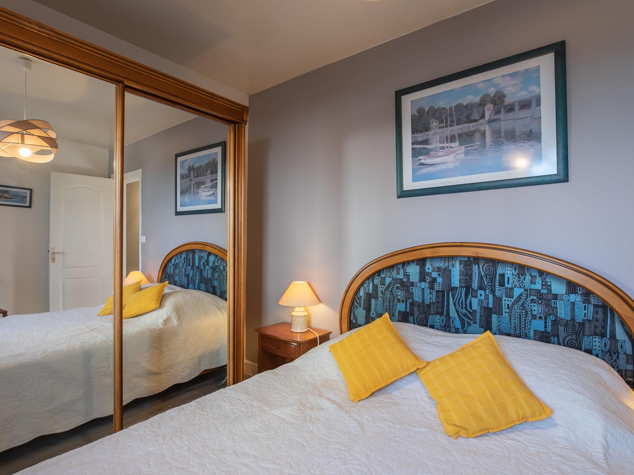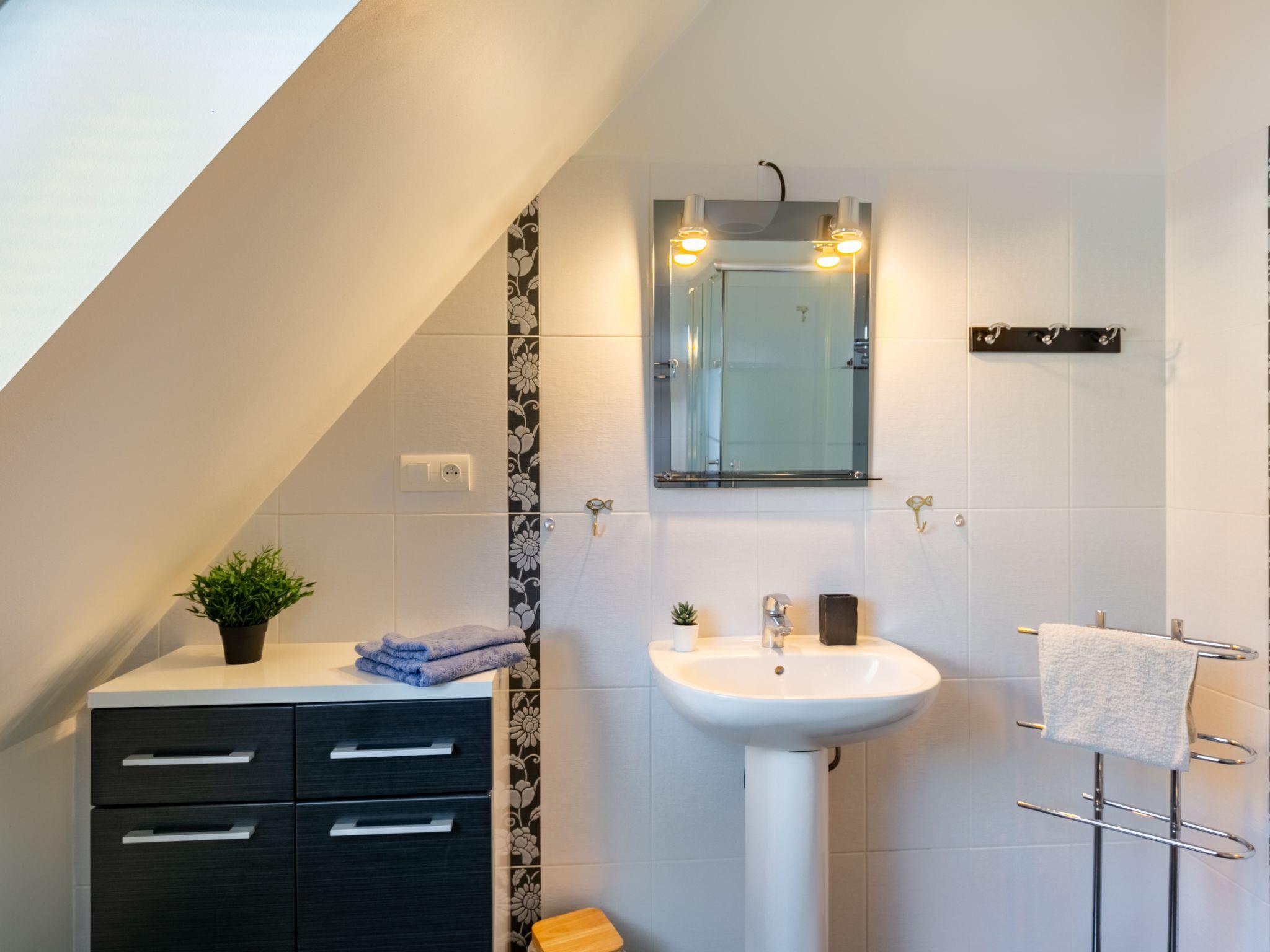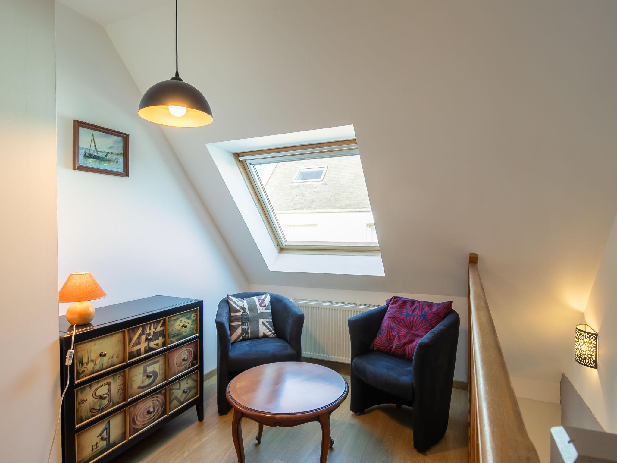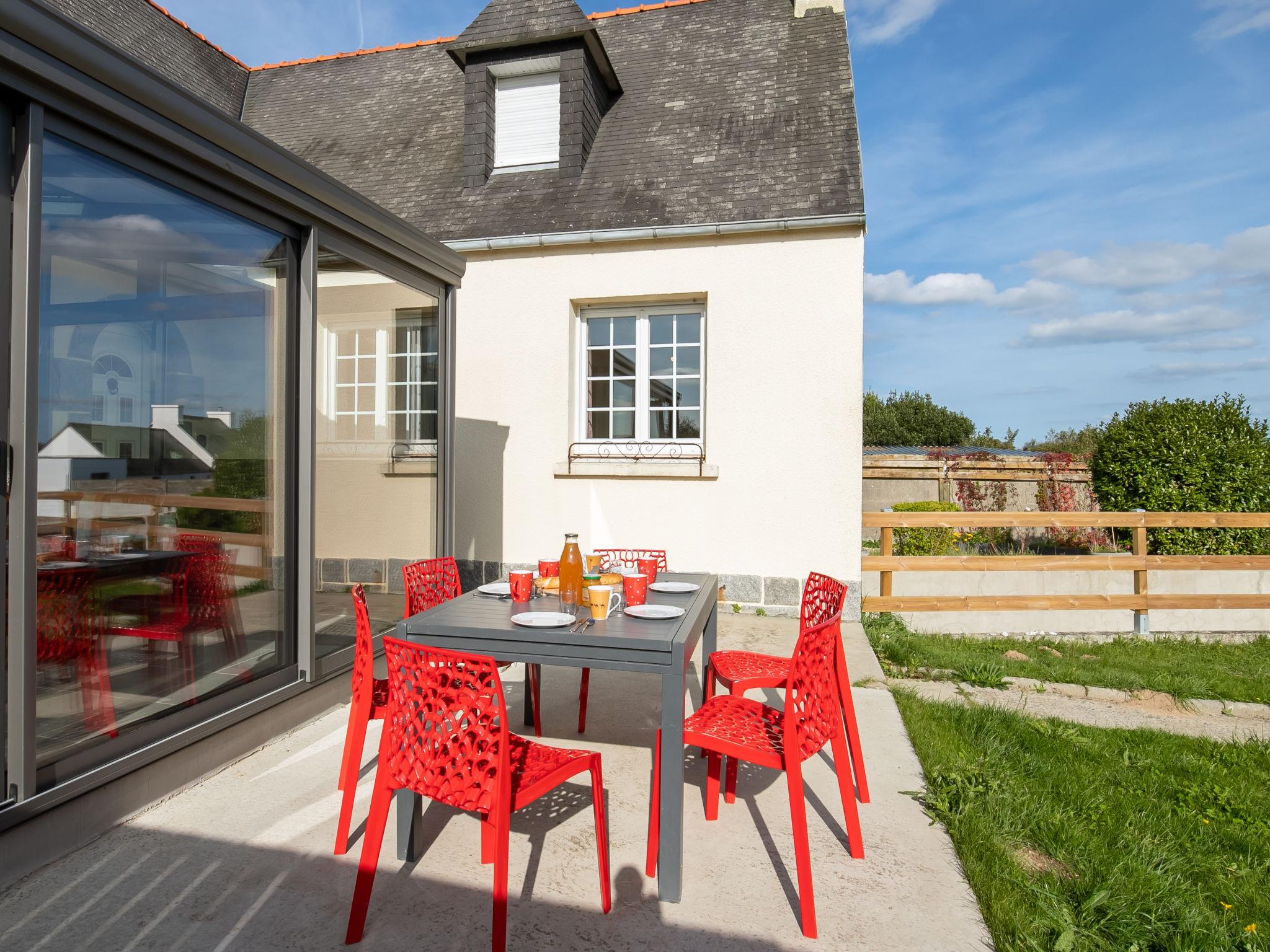 "Ty Louarn", 6-room house 145 m2 on 2 levels. Comfortable and tasteful furnishings: living/dining room with open-hearth fireplace, dining table, satellite TV, radio, hi-fi system and DVD. Exit to the veranda. 1 room with 1 double bed (160 cm, length 200 cm). 2 rooms, each room with 1 french bed (140 cm, length 190 cm). Kitchen (oven, dishwasher, 4 ceramic glass hob hotplates, toaster, kettle, microwave, freezer, electric coffee machine) with small dining table. Shower, sep. WC. Upper floor: open large living room with TV (flat screen). 1 room with sloping ceilings with 1 double bed (200 cm, length 200 cm). Shower, sep. WC. Oil heating. Parquet floors. Terrace, south facing position. Terrace furniture, barbecue (portable), deck chairs (4). Facilities: washing machine, dryer, iron, baby cot for up to 2 year olds. Internet (WiFi, free). Parking (2 cars). Please note: non-smoking house. Maximum 1 pet/ dog allowed. Smoke alarm. When there are less than the maximum number of guests staying at the property, not all of the bedrooms will be available for use.