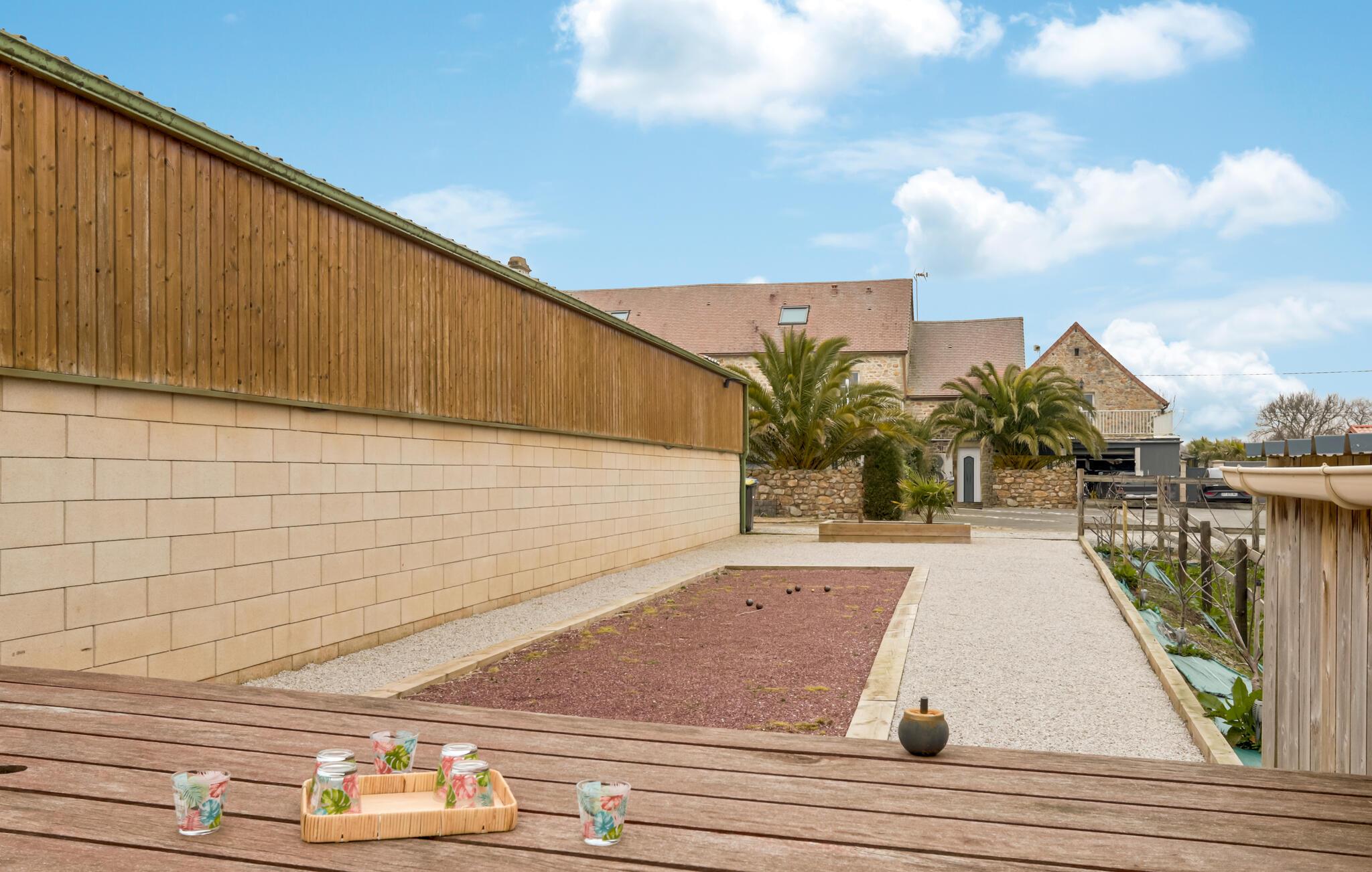 In diesem komfortablen und geräumigen Ferienhaus verleben Sie einen bezaubernden Urlaub inmitten einer idyllischen Landschaft. Die vielen Holzelemente tragen zu einer warmen Atmosphäre bei, während die luxuriös anmutende Einrichtung für eine angenehme Urlaubsstimmung sorgt. Das gemeinsame Familienfrühstück können Sie am gemütlichen Esstisch zu sich nehmen oder draußen auf einer der Terrassen. Dort spüren Sie die ländliche Idylle, und es steigt die Vorfreude auf einen schönen Urlaubstag. In Ihrem Ferienhaus laden mehrere gemütliche Sofaecken zu gemütlichen Stunden ein. Lesen Sie hier ein gutes Buch, schauen Sie einen lustigen Film oder nutzen Sie die Spielkonsole für spannende Spieleabende. Der große Swimmingpool verspricht Entspannung und Wasserspaß für die ganze Familie. Ermitteln Sie auf der Petanquebahn den Familienmeister in dieser urfranzösischen Disziplin.