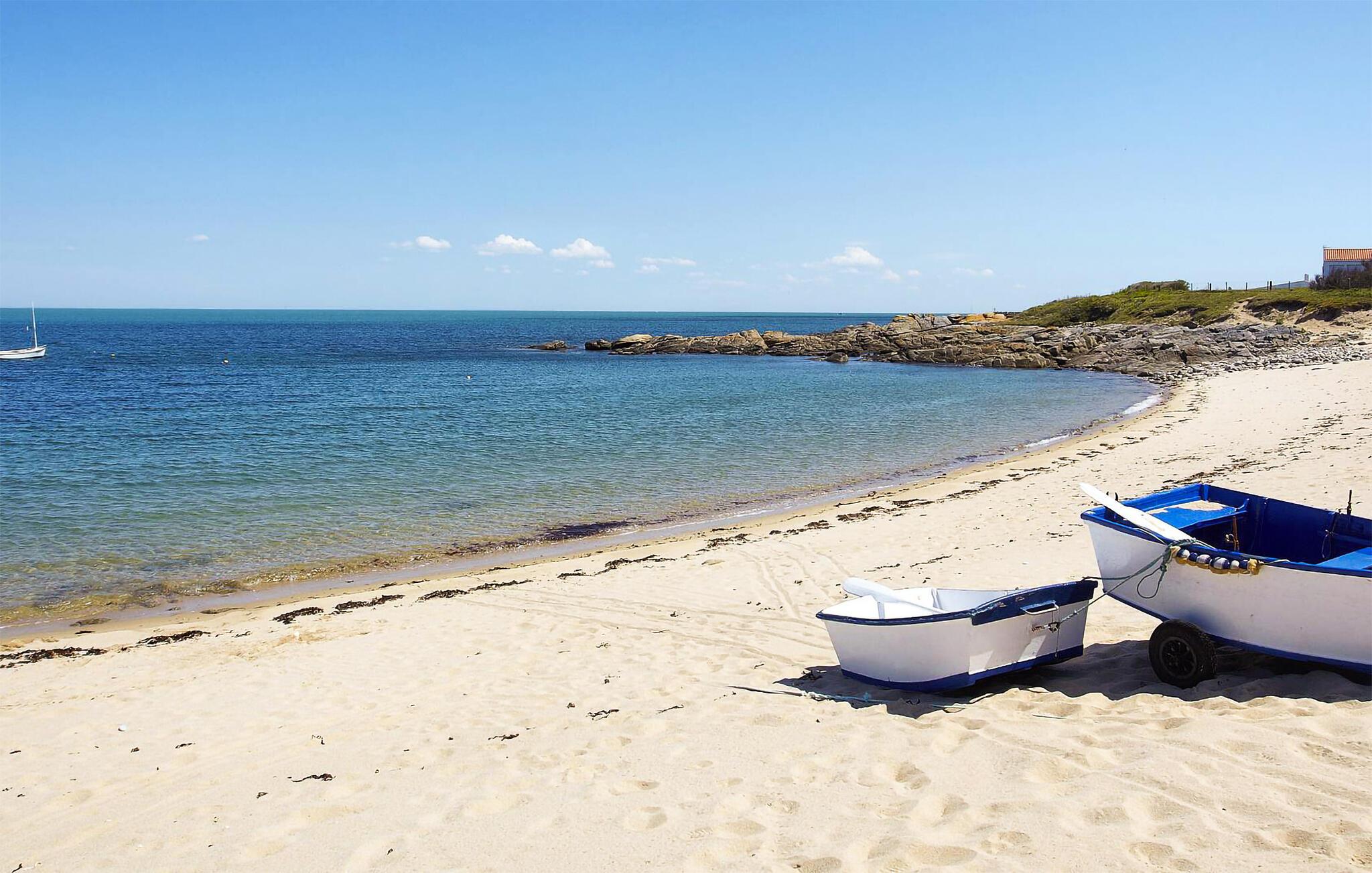 Nur ein paar Schritte bringen Sie zum Meer. Freuen Sie sich auf einen traumhaften Strand, das klare Wasser und die abwechslungsreiche Küstenlinie bieten außerdem ideale Bedingungen zum Segeln, Kajakfahren oder Stand-Up-Paddling. Erkunden Sie die geschützten Naturreservate der Insel, die Heimat zahlreicher Vogelarten und anderer Tiere sind, und erfahren Sie bei einem Besuch des Leuchtturms Phare de la Petite Foule mehr über die maritime Geschichte der Insel.