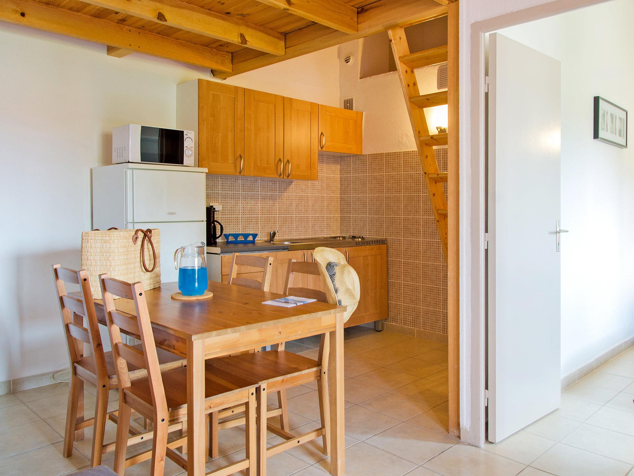 "Club Benista T2", 2-room apartment 33 m2. Practical furnishings: living/sleeping room with 2 sleeping facilities, dining table and TV. 1 room with 1 french bed (140 cm, length 190 cm). Kitchenette (2 hot plates, toaster, kettle, microwave, electric coffee machine). Shower/WC. Heating, air-conditioning. Balcony 6 m2 or terrace 6 m2. Terrace furniture, balcony furniture. Please note: non-smokers only. Maximum 1 pet/ dog allowed. Smoke alarm, fire extinguisher. The property is one of a type of property or apartment. Offer by a commercial proprietor according to Art. 155, IV, CGI