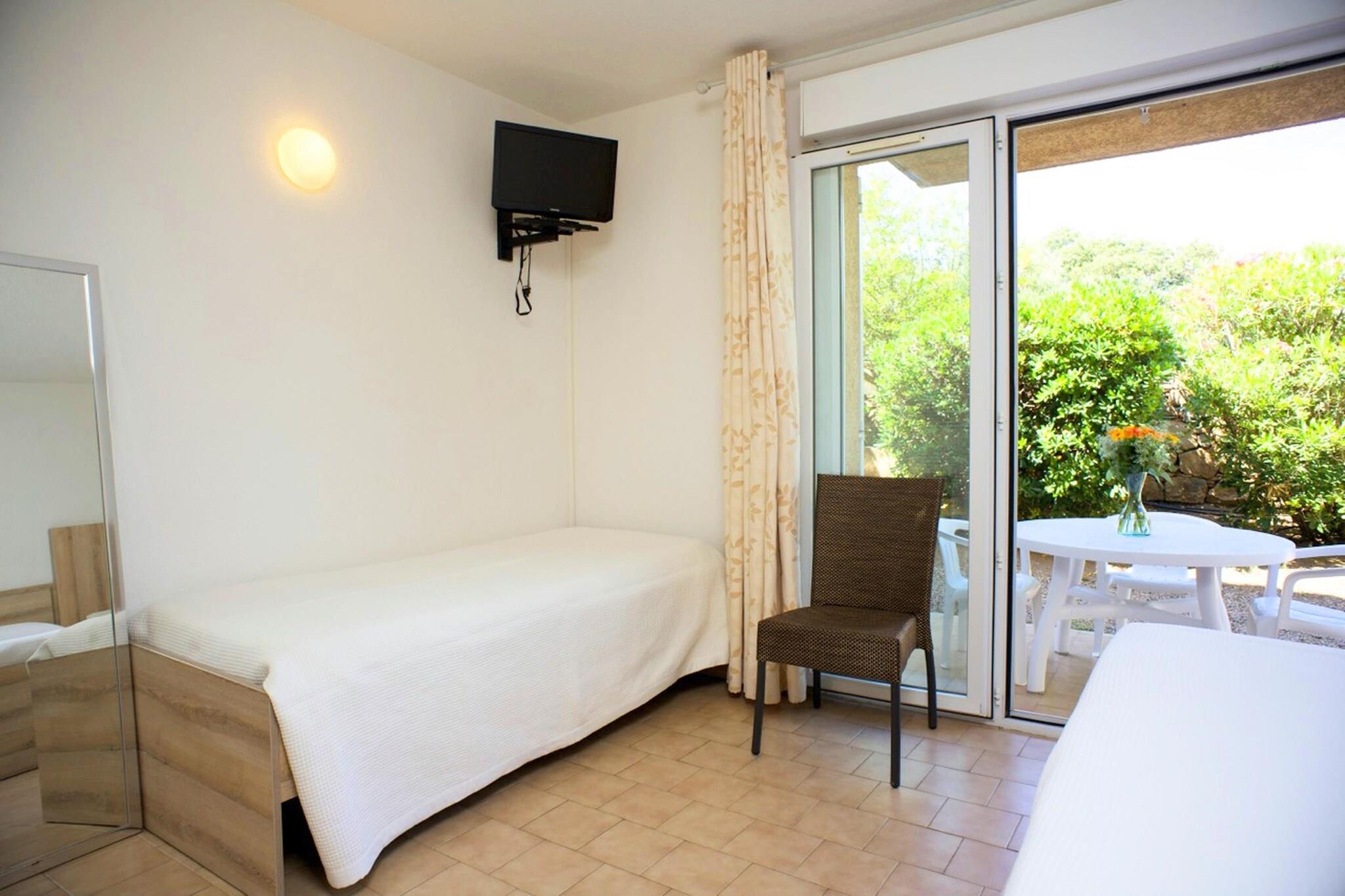 This cozy detached apartment offers a bright and functional retreat, perfect for up to 3 guests. Designed to maximize space and comfort, the unit is part of a pleasant resort setting that combines a social atmosphere with the privacy of a single-home feel. The living area is thoughtfully arranged to serve as both a relaxation space and sleeping quarters, featuring one double bed and one single bed. Modern essentials are well-integrated throughout, including air conditioning to keep the space cool during the warm Mediterranean afternoons, a TV for your entertainment, and high-speed internet access to keep you connected throughout your stay. One of the highlights of this studio is the private balcony, providing a lovely outdoor spot to enjoy your morning coffee or a glass of local wine in the evening. Inside, the kitchenette is equipped with practical appliances for holiday living, including a microwave, toaster, and electric kettle, making it easy to prepare light meals and snacks. The bathroom is clean and modern, featuring a convenient shower setup. Whether you are returning from a day of exploring the island or relaxing on-site, the functional layout and bright atmosphere ensure a comfortable home base for your vacation. Convenience is a priority at this property, which offers dedicated parking for guests, making it an ideal choice for those planning to explore the surrounding Corsican landscape by car. With its blend of essential amenities, private outdoor space, and a prime location in one of France's most beautiful regions, this studio is a fantastic choice for couples or small families looking for a practical and inviting holiday escape.