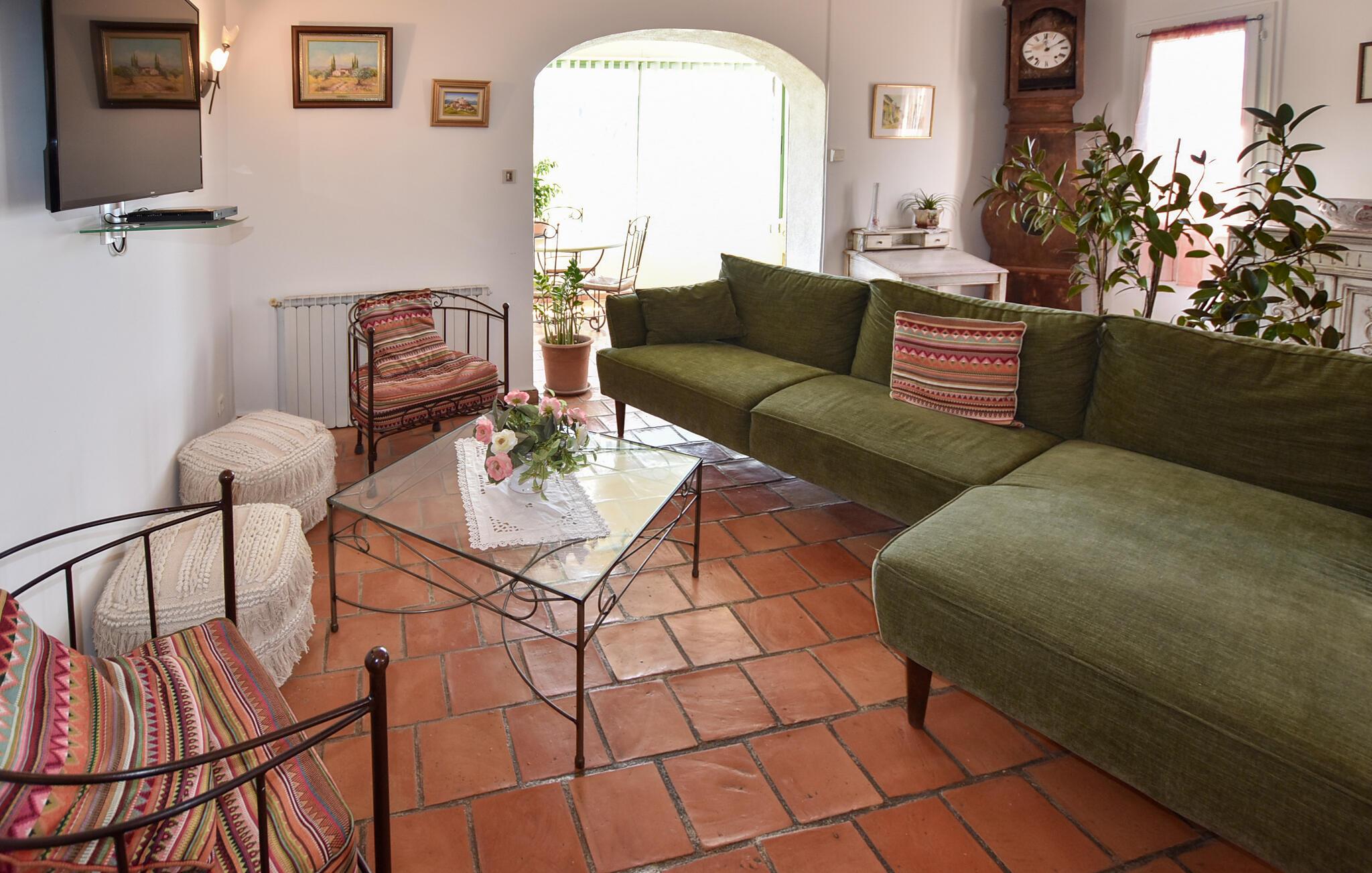 Willkommen in dem einladenden Haus, das Sie in idyllischer Lage im Herzen des Nationalparks Luberon empfängt. Es lädt mit gemütlich möblierten Räumen zu einer erholsamen Pause vom Alltag ein und eignet sich gut für einen Urlaub mit Ausflügen und Aktivitäten in der Natur. Legen Sie nach einem erlebnisreichen Tag auf bequemen Sofas die Beine hoch und lassen Sie die Höhepunkte des Tages noch einmal Revue passieren.