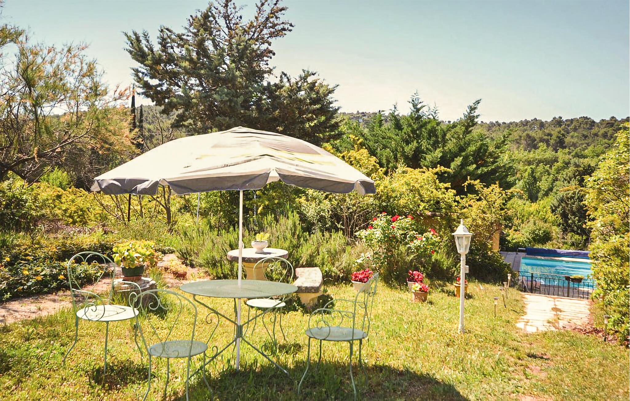 Das weitläufige Grundstück bietet herrlich viel Platz zum ungestörten Entspannen im Freien. Ob Sonnenbad im Liegestuhl am Pool, gemütliches Lesen im Schatten oder ein leckeres Abendessen vom Grill, hier können Sie die gemeinsame Zeit so richtig genießen.