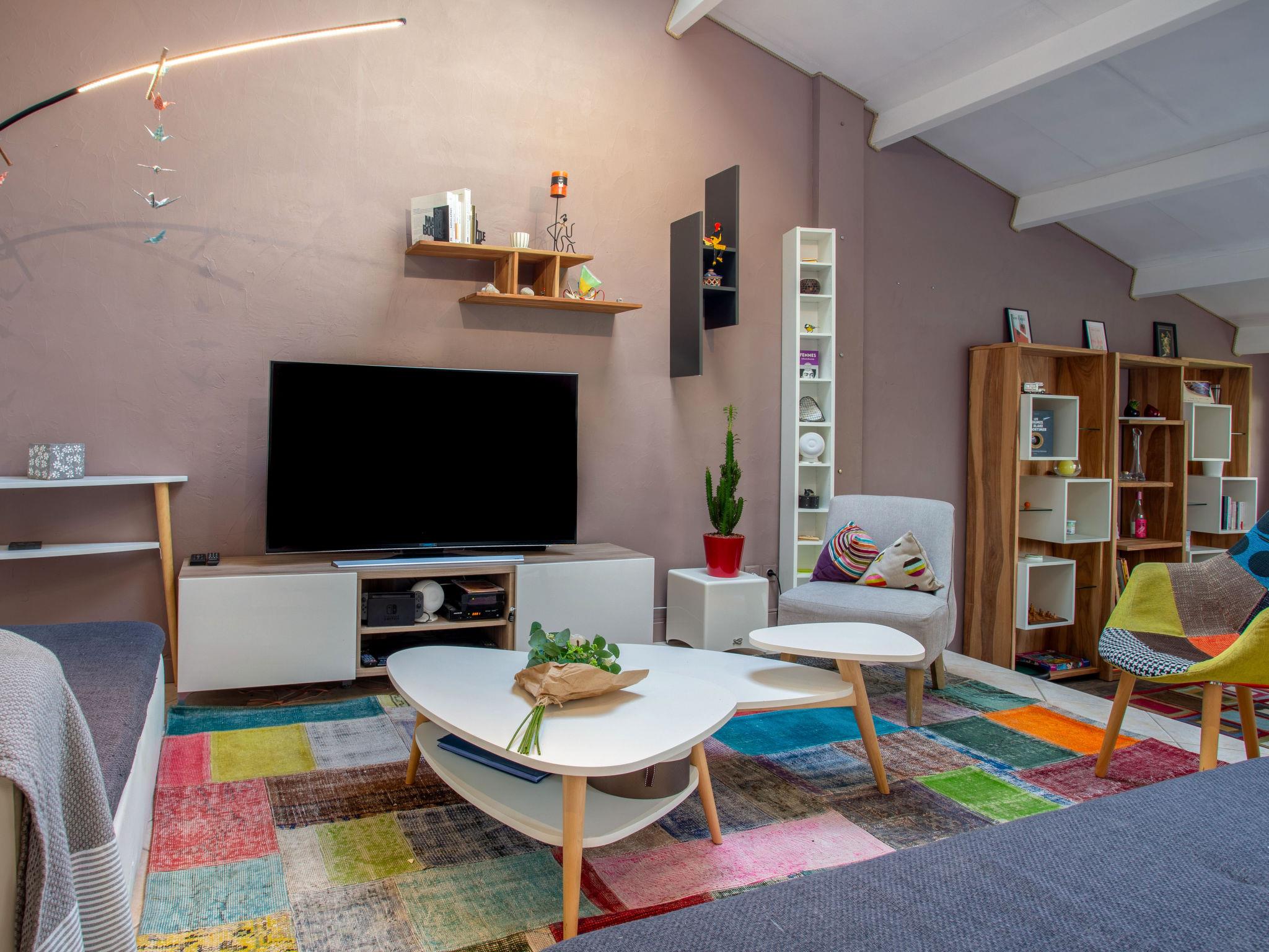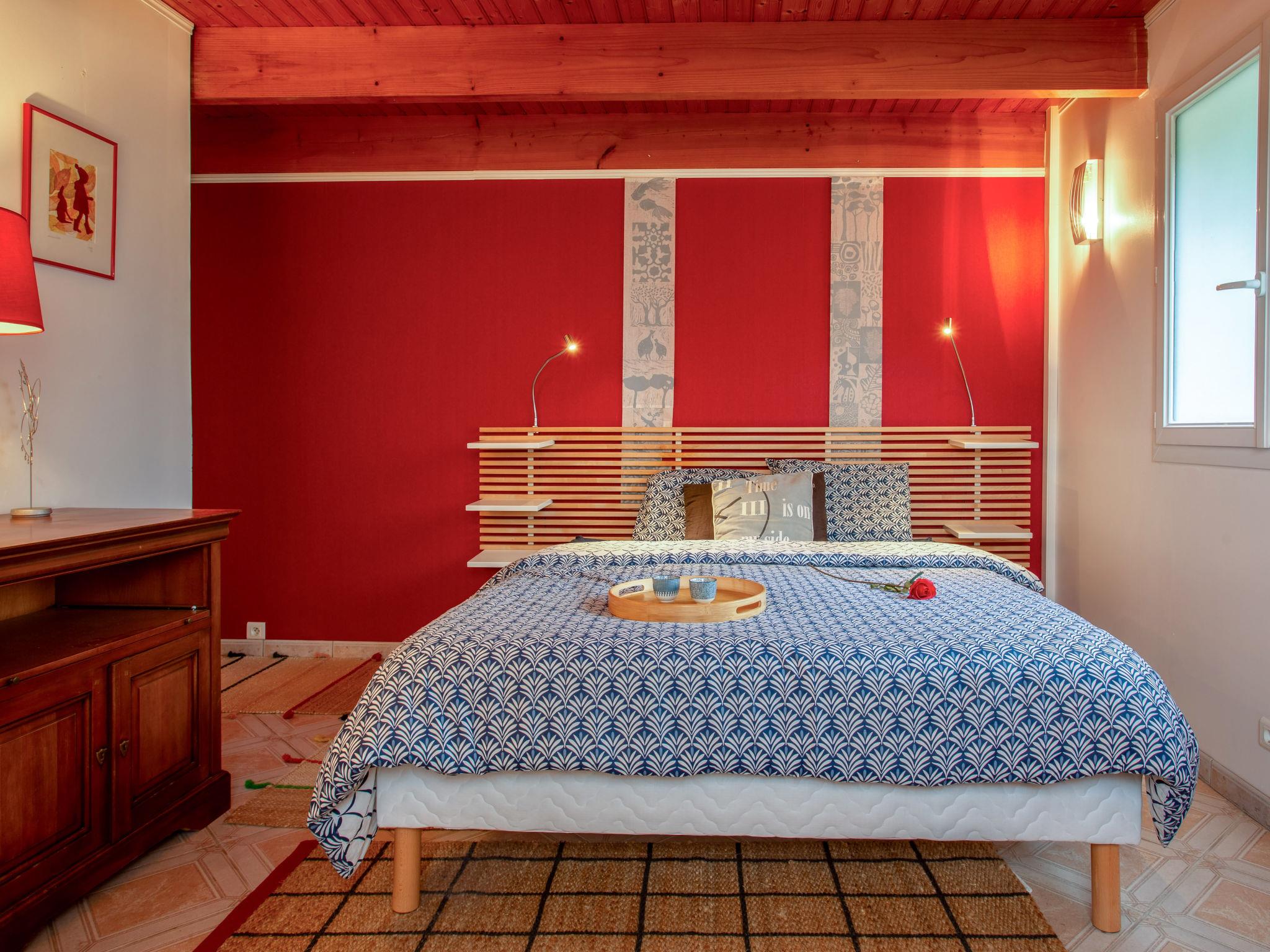 "Rive Droite", 5-room terraced house 150 m2 on 2 levels, south-east facing position. Comfortable furnishings: living room with panoramic window with open-hearth fireplace (only for decoration), library and TV (flat screen). Exit to the terrace. 1 large room with Dressing room with 1 french bed (1 x 180 cm, length 200 cm), shower and double hand-basin. Large kitchen (oven, dishwasher, 5 gas rings, toaster, kettle, microwave, electric coffee machine) with dining table. Exit to the terrace. Sep. WC. Upper floor: 1 room with sloping ceilings, on 2 levels with 3 beds (90 cm, length 190 cm). 1 room with sloping ceilings, on 2 levels with 1 bed (90 cm, length 190 cm), 1 french bed (1 x 160 cm, length 200 cm). 1 room with 1 french bed (1 x 160 cm, length 200 cm). Bath/WC. Electric heating. Terrace 55 m2, south facing position and, east facing position, garden 280 m2, south facing position and, east facing position. Terrace furniture, barbecue. Facilities: washing machine, iron, children's high chair, baby cot, hair dryer. Internet (WiFi, free). Please note: suitable for families. Non-smoking house. Smoke alarm. Bookings accepted for holiday purposes only. Offer by a commercial proprietor according to Art. 155, IV, CGI 44012000069KD