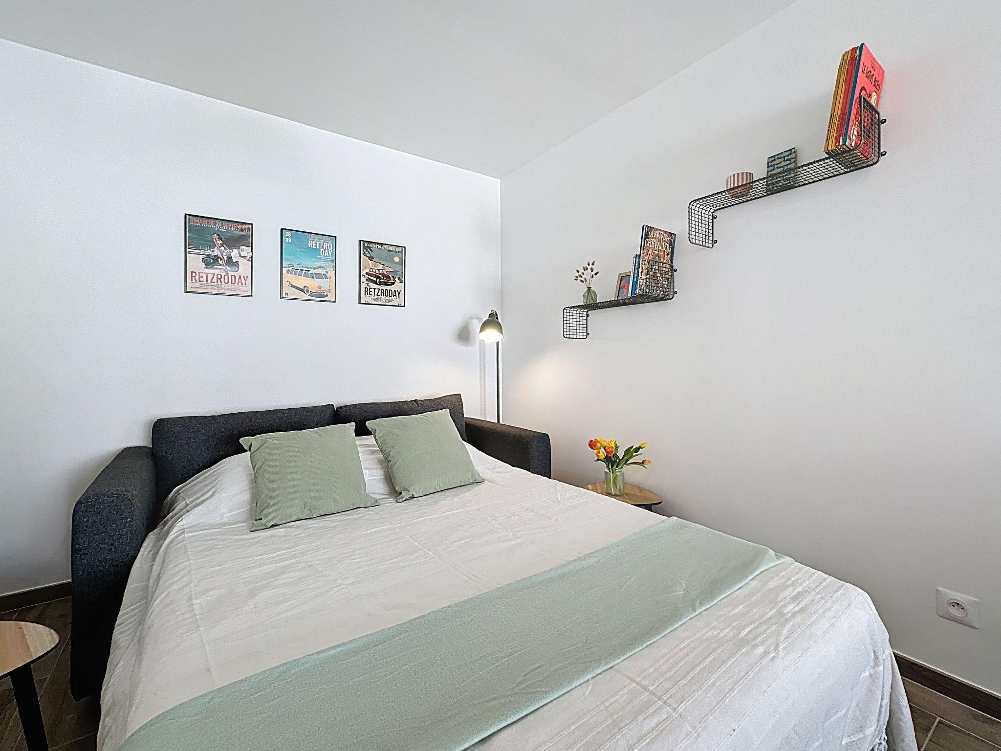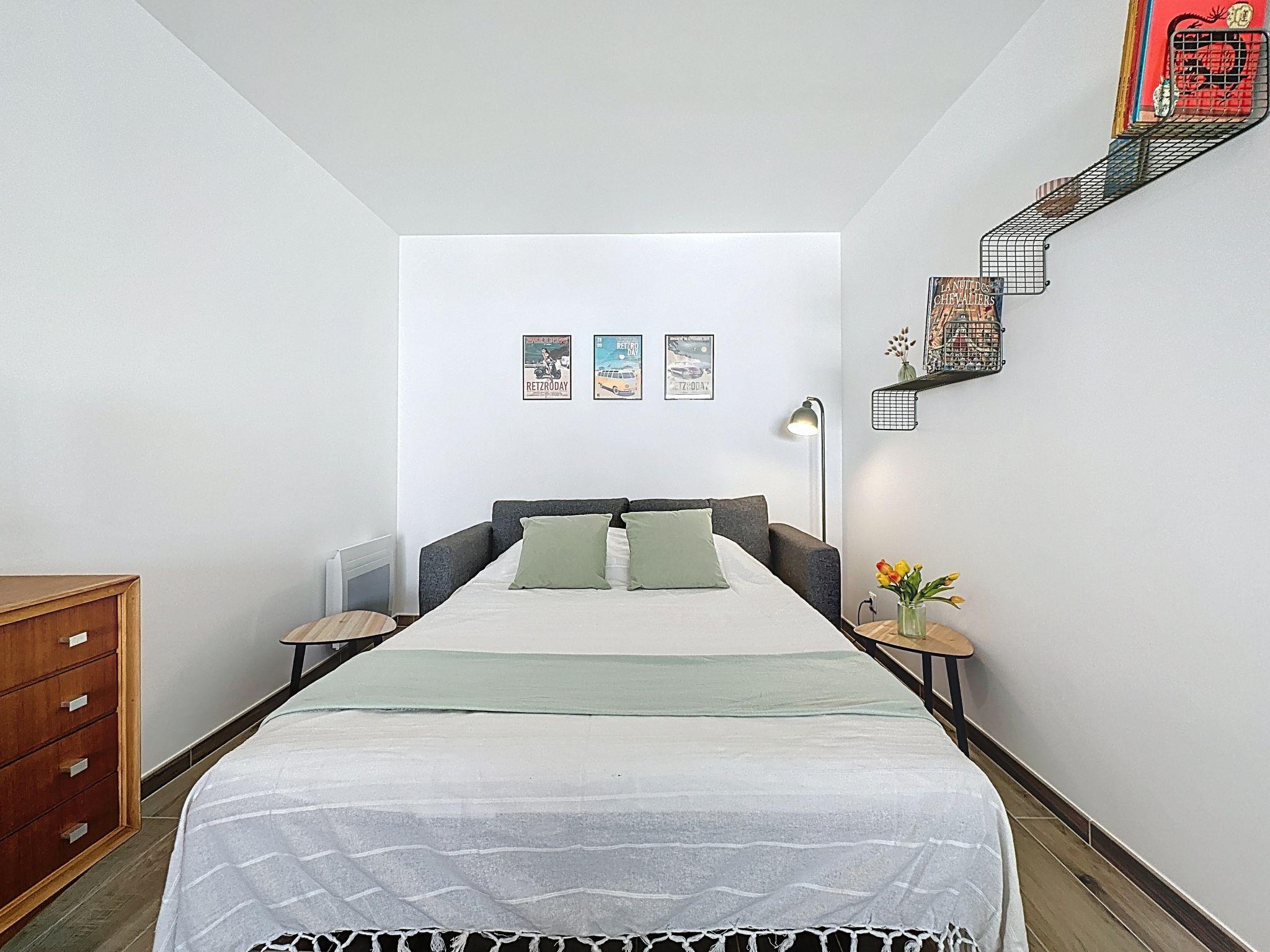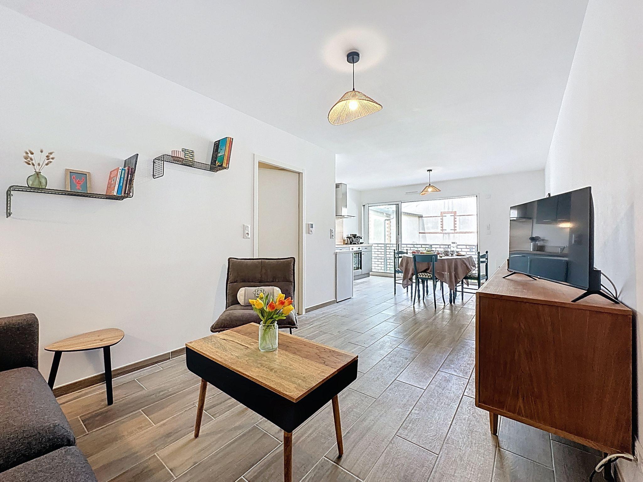 "Océanide", 2-room apartment 48 m2 on 1st floor. Living/dining room with 1 double sofabed (1 x 140 cm, length 200 cm), TV (flat screen). Exit to the balcony, north facing position. 1 room with 1 french bed (1 x 140 cm, length 200 cm). Exit to the balcony, north facing position. Open kitchen (oven, dishwasher, 3 induction hot plates, toaster, kettle, microwave, electric coffee machine, Capsules for coffee machine (Nespresso) extra). Shower, sep. WC. Gas heating. Balcony 4 m2, north facing position. Balcony furniture. Facilities: iron, children's high chair, baby cot for up to 2 year olds, hair dryer. Parking space n 4 (fenced 1 car). Please note: apartment street side. Fridge without freezer, non-smokers only. Smoke alarm, no lift. Offer by a private individual according to Art. 155, IV of CGI. 44012000363TM