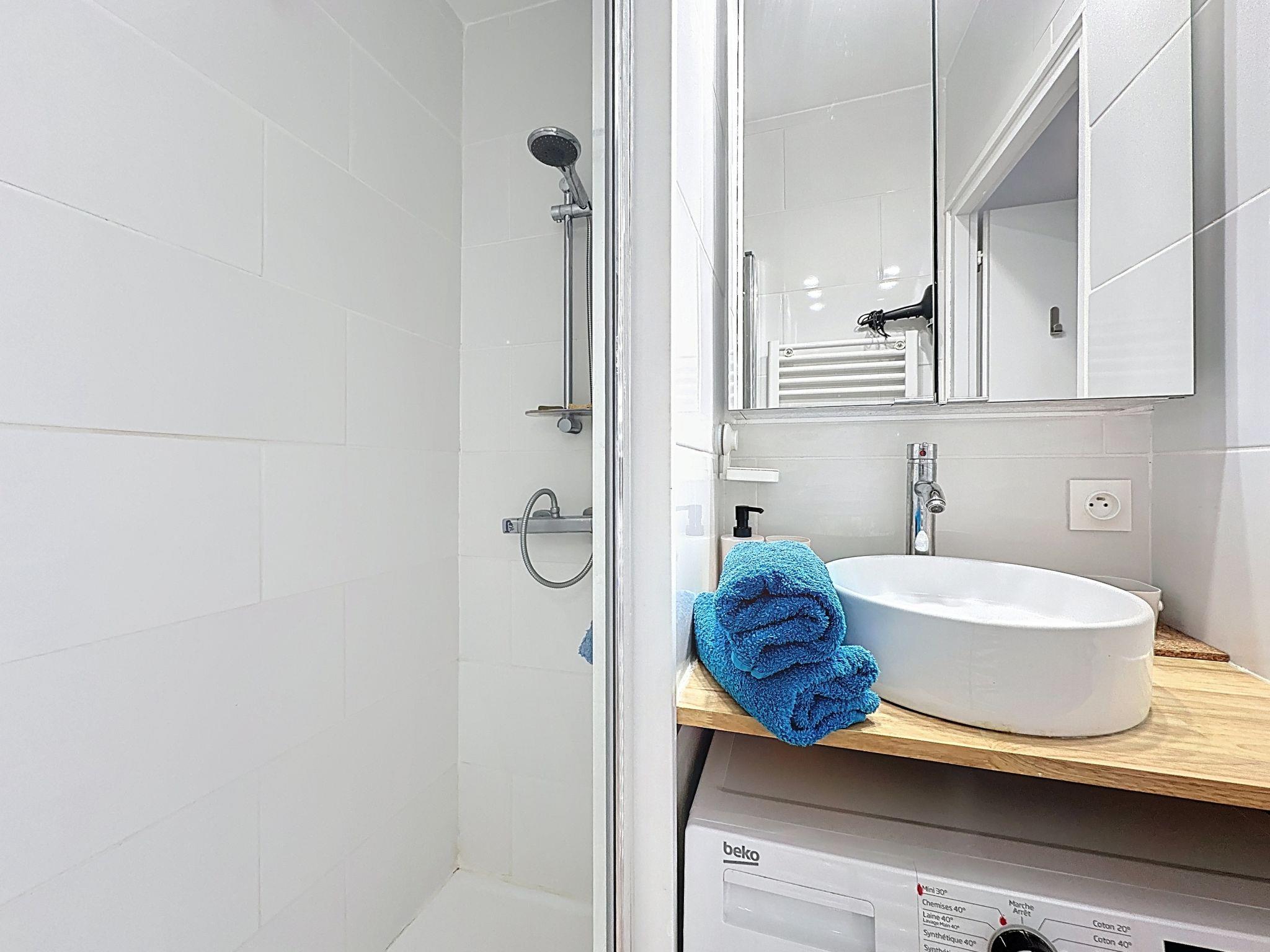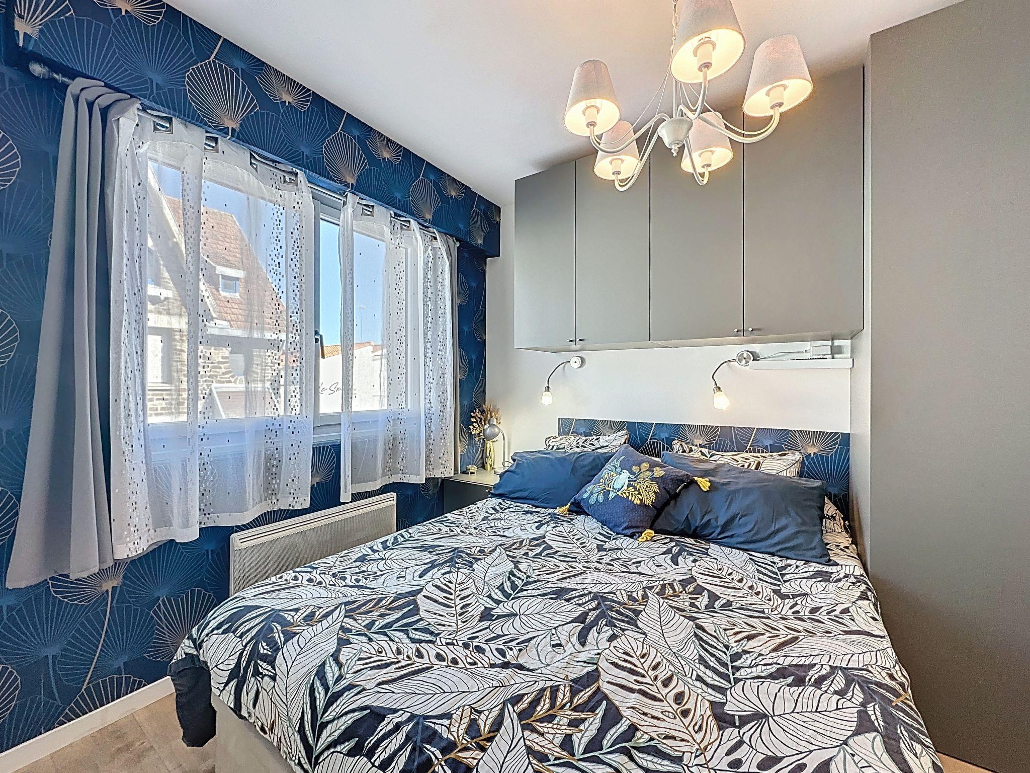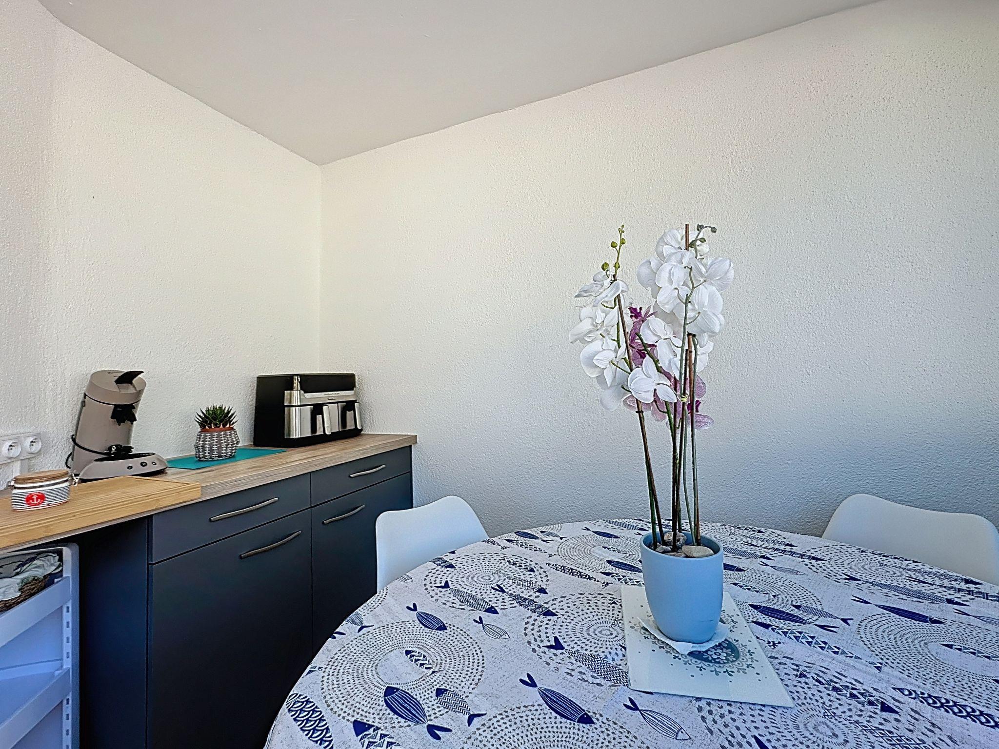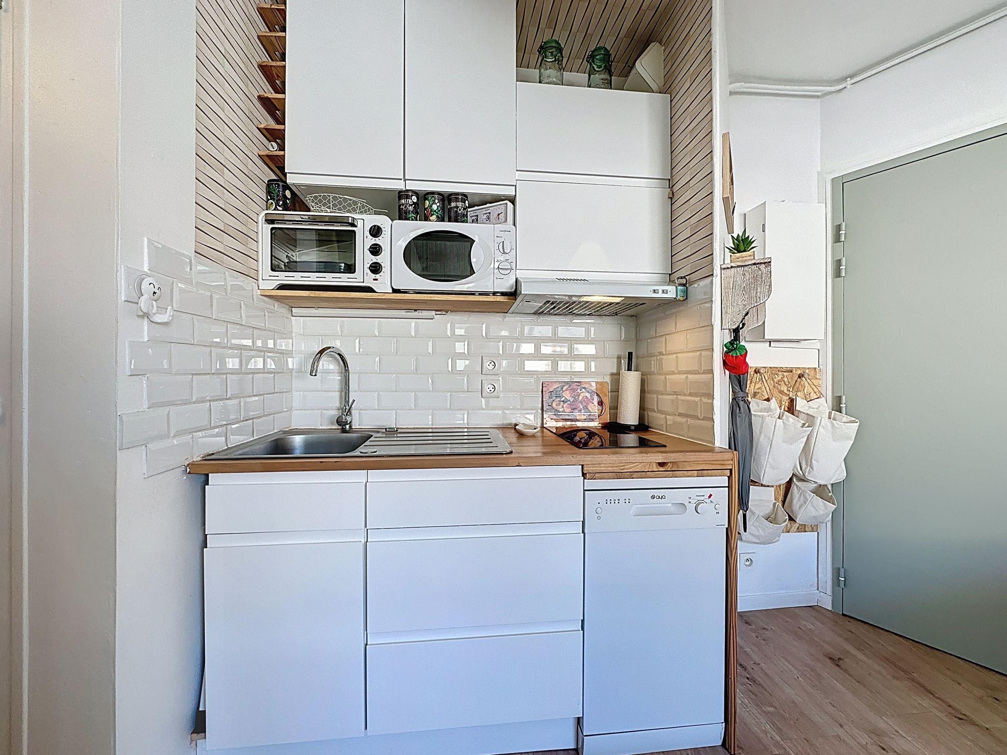 "Résidence de la Mer", 2-room apartment 43 m2 on 1st floor. Beautiful and tasteful furnishings: living/dining room with TV (flat screen). Exit to the loggia. 1 room with 1 french bed (1 x 160 cm, length 200 cm), TV (flat screen). Open kitchen (mini-oven, dishwasher, 2 induction hot plates, toaster, kettle, microwave, freezer, electric coffee machine, Capsules for coffee machine (Senseo) extra). Shower, sep. WC. Electric heating. Covered balcony. Facilities: washing machine, iron, baby cot for up to 2 year olds, hair dryer. Internet (WiFi, free). Parking space n 19 (roofed, fenced 1 car). Please note: non-smokers only. Smoke alarm. Offer by a private individual according to Art. 155, IV of CGI. 440120003954G