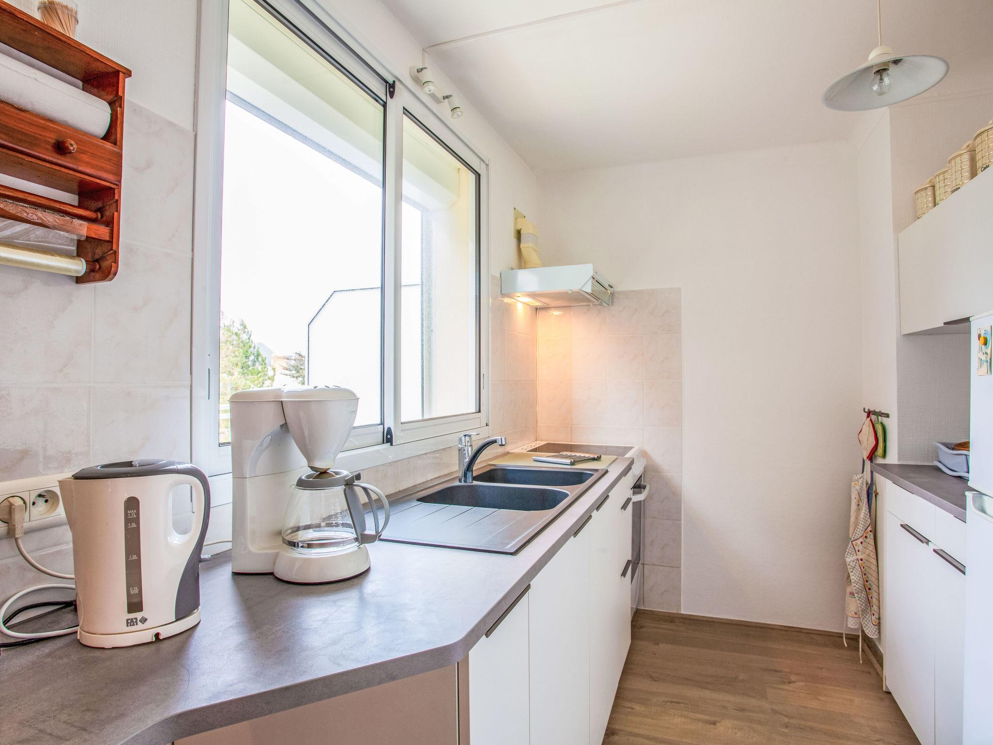 "Les Tilleuls 52", 2-room apartment 36 m2 on 2nd floor. Simple and practical furnishings: living/dining room with 1 x 2 bunk beds (90 cm, length 190 cm). Exit to the balcony, west facing position. Lounge with 1 sofabed (120 cm, length 190 cm), TV (flat screen). 1 room with 1 french bed (1 x 140 cm, length 190 cm). Open kitchen (oven, 4 ceramic glass hob hotplates, toaster, kettle, microwave, electric coffee machine). Shower, sep. WC. Electric heating. Balcony 10 m2, west facing position. Balcony furniture. View of the sea. Facilities: washing machine, iron, hair dryer. Internet (WiFi, extra). Parking space n 52 (1 car). Please note: non-smokers only. Smoke alarm, no lift. Offer by a private individual according to Art. 155, IV of CGI. 440120000365L