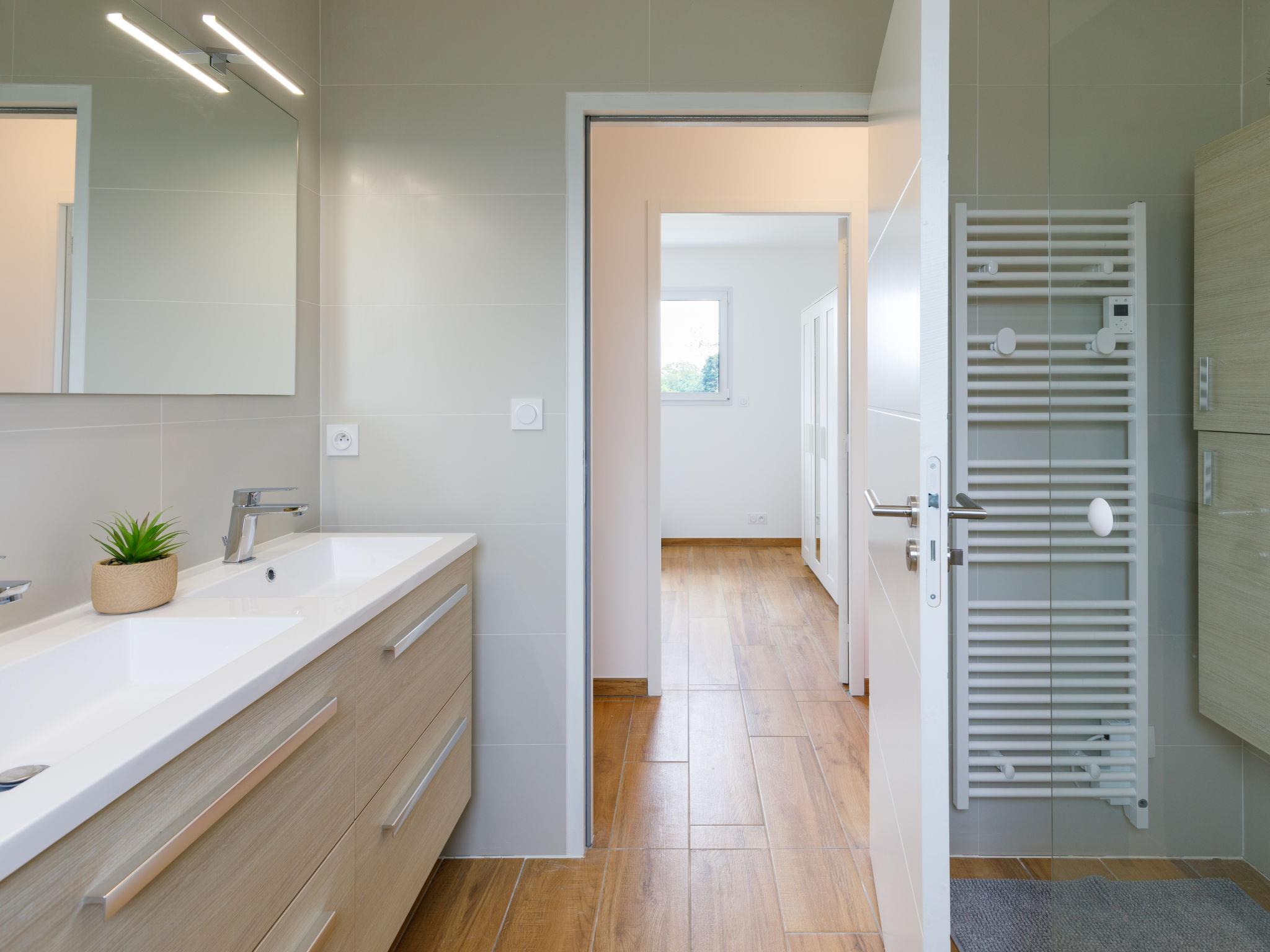 Beautiful single-family house "Le Pré Tarin", 2 storeys, built in 2024. Above La Bernerie en Retz, in a secluded, quiet position in the residential district, 3 km from the sea, 3 km from the beach, south-east facing position. Private: property 500 m2 (fenced), swimming pool (3 x 6 m, depth 100 - 150 cm, seasonal availability: 15.May. - 15.Sep.). Terrace (35 m2), garden furniture, barbecue, parking (for 2 cars). Supermarket 2.5 km, restaurant 2.5 km, bakery 2.5 km, 30 minute walk to the centre, bus stop "Bourg (Navette Estivale)" 2.5 km, railway station "La Bernerie en Retz" 2 km, sandy beach "Grande Plage" 3 km, thermal baths "Alliance Pornic Thalasso & Spa" 8 km. Golf course (18 hole) 11 km, tennis 2.7 km, minigolf 11 km. Nearby attractions: Marché de la Bernerie en Retz 2.5 km, Pornic 9 km, Port du Collet 10 km, Les Machines de l'Ile de Nantes 43 km, La Baule 50 km, Noirmoutier 52 km. Well-known lakes can easily be reached: Lac de Saint Viaud 23 km. The keys‘ handover takes place by the agency Interhome in Pornic, 7 km.