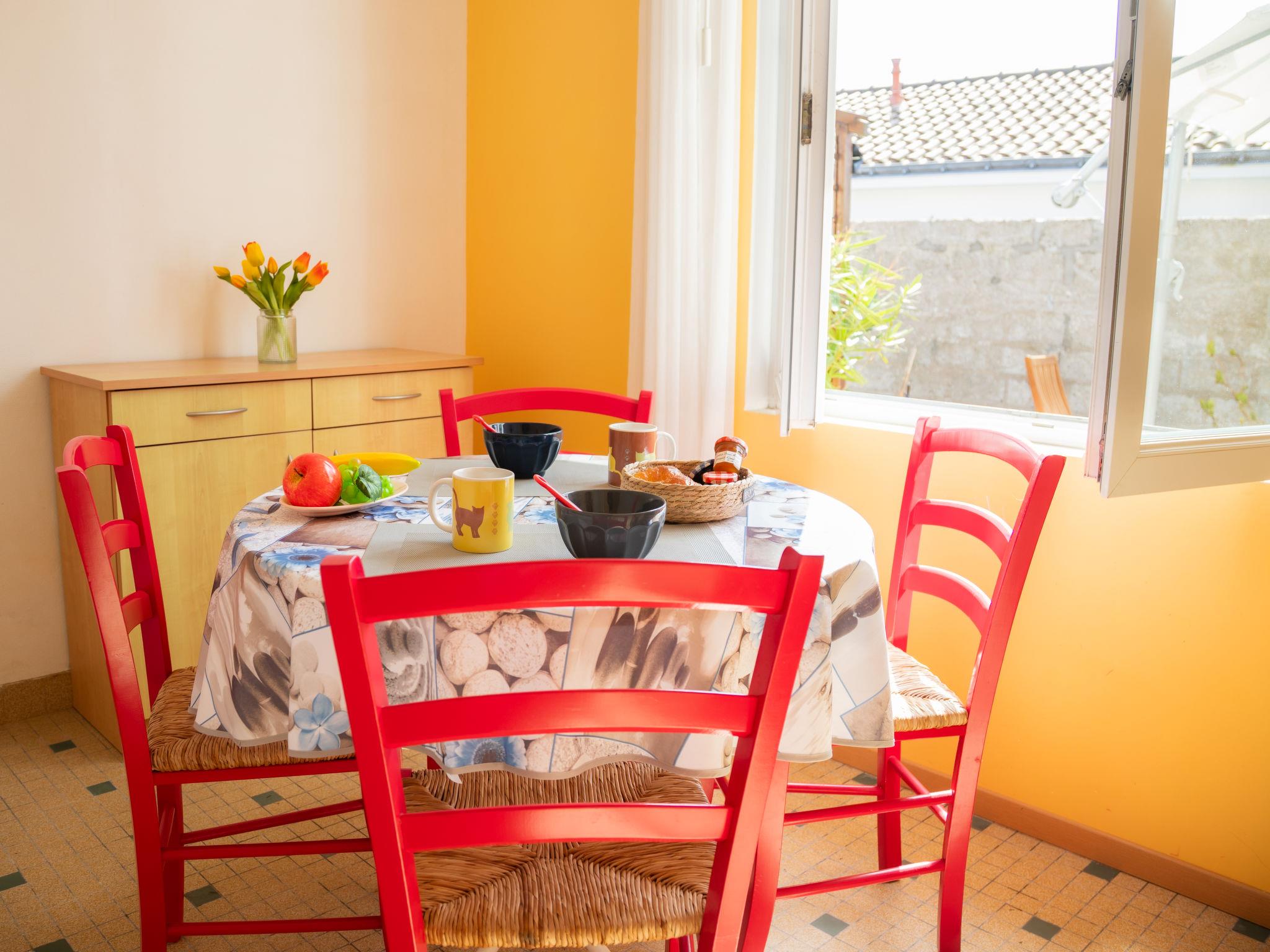 "Le Cocon", 1-room studio 25 m2, south facing position. Simple furnishings: living/sleeping room with 1 french bed (1 x 140 cm, length 190 cm), TV (flat screen). Small kitchen in the entrance (oven, 4 gas rings, toaster, kettle, microwave, electric coffee machine). Shower/WC. Electric heating. Small patio 35 m2, roofed, south facing position. Terrace furniture, barbecue. Facilities: iron, hair dryer. Internet (WiFi, free). Please note: non-smoking house, no parking. Maximum 1 small pet/ dog allowed. Smoke alarm. Offer by a private individual according to Art. 155, IV of CGI. 44012000100Q0