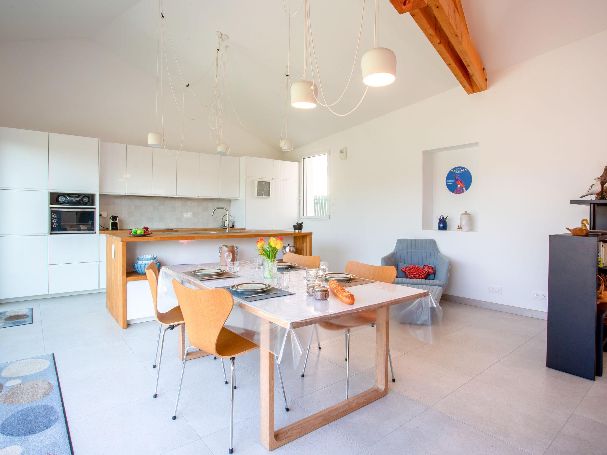"Le Paradou", 3-room house 70 m2, south-west facing position. Modern and stylish furnishings: living/dining room with TV (flat screen). Exit to the terrace, west facing position. 2 rooms, each room with 1 french bed (1 x 140 cm, length 190 cm). Open kitchen (oven, dishwasher, 4 induction hot plates, toaster, kettle, electric coffee machine, Capsules for coffee machine (Nespresso) extra) with bar. Shower, sep. WC. Facilities: washing machine, iron, hair dryer. Internet (WiFi, free). Parking at the house. Please note: non-smoking house. 1 small pet/ dog allowed. Smoke alarm. Offer by a private individual according to Art. 155, IV of CGI. 44012000192DP