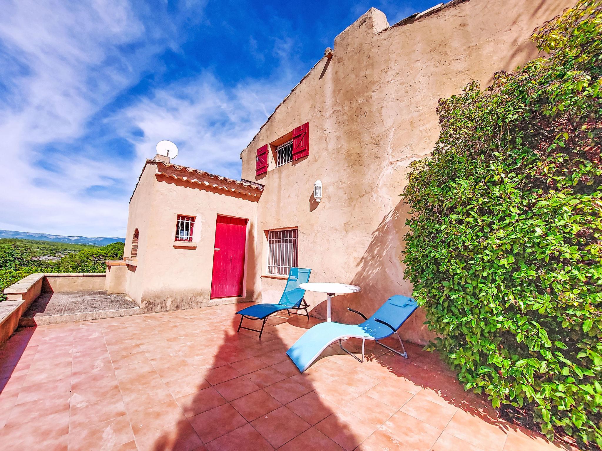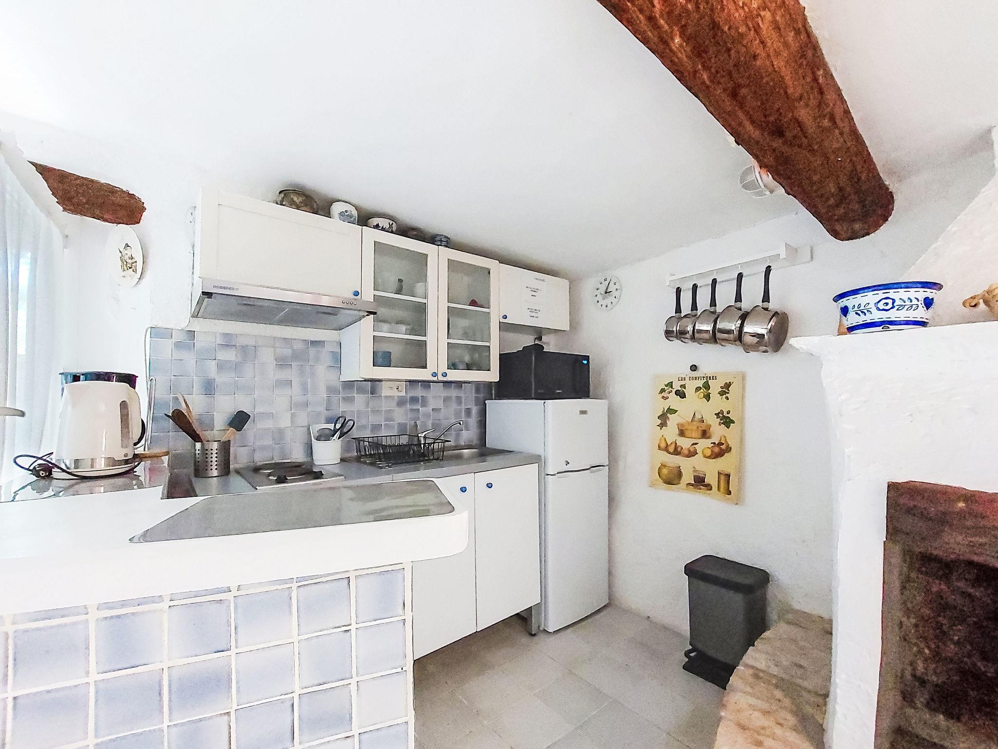 3-room house 70 m2 on 2 levels. Antique furnishings: living/dining room with TV, radio, CD-player and DVD. Small, open kitchen (2 hot plates, mini-oven, toaster, kettle, microwave, freezer, electric coffee machine). Upper floor: (open staircase), 1 room with 1 french bed (140 cm, length 190 cm). 1 room with 1 french bed (140 cm, length 190 cm). Shower/WC. Electric heating. Terrace 30 m2, south-west facing position. Terrace furniture, electric barbecue. Marvellous panoramic view of the sea and the countryside. Facilities: iron. Internet (WiFi, extra). Please note: maximum 1 small pet/ dog allowed. TV only FR. Smoke alarm.