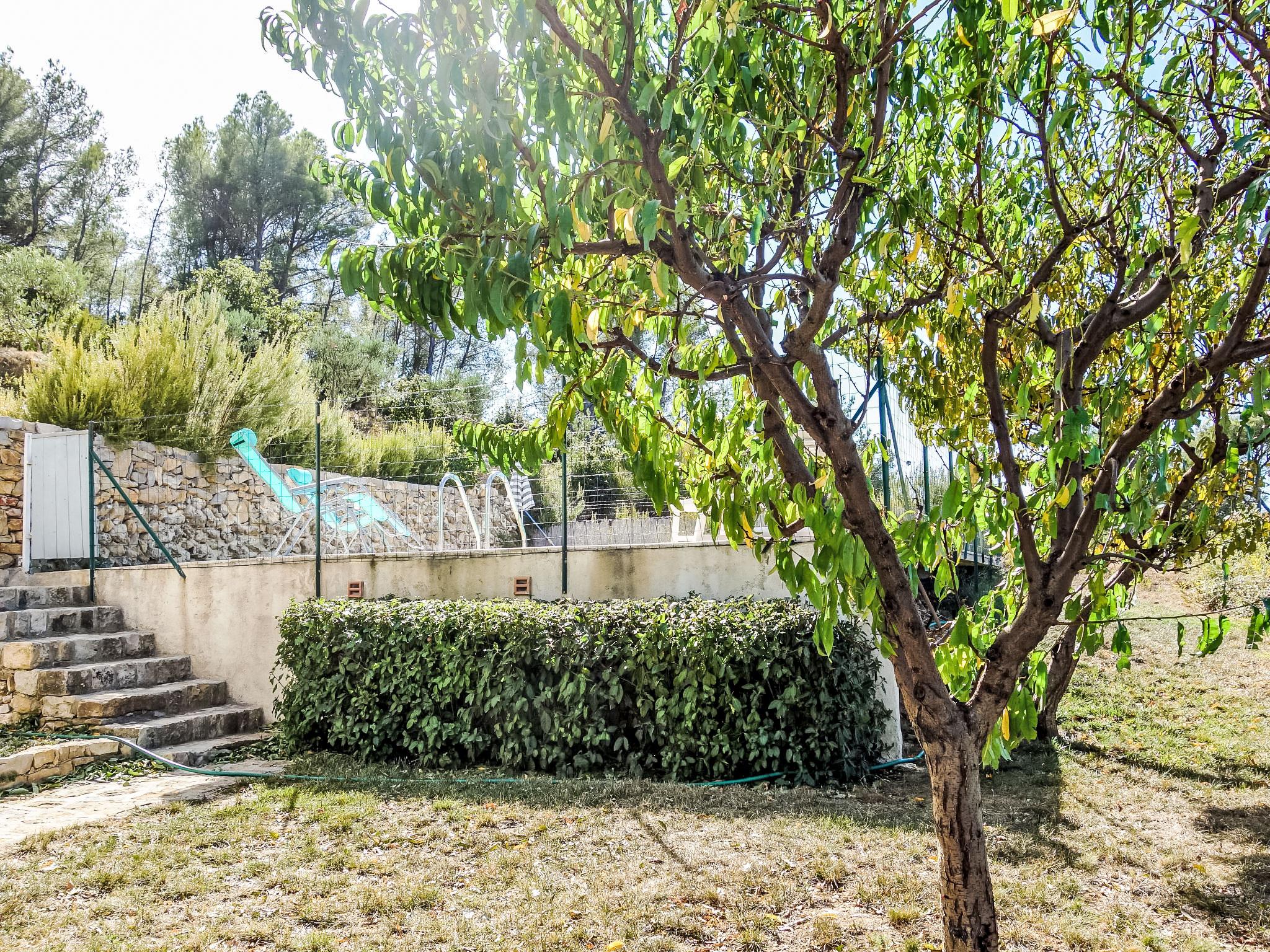 La Cadière d'Azur: Beautiful single-family house "La Campagne", built in 2013, surrounded by fields and vineyards. Outside the resort La Cadière d'Azur, in an elevated position on a slope, 7 km from the sea. Private: natural state property 4'000 m2, swimming pool fenced (4 x 6 m, seasonal availability: 15.May. - 15.Oct.). In the house: burglar alarm system. 20 m long steep motor access to the house (150 m via unmade road). Parking (for 2 cars) at the house. Shop 4 km, grocery 4 km, bus stop "chemin des Baumes" 2.9 km, railway station "Saint Cyr les Lecques-La Cadière" 4.4 km, sandy beach "Plage des Lecques" 7 km. Golf course (18 hole) 5 km. Nearby attractions: Aqualand. Hiking paths: Sainte Baume, Sainte Victoire, Calanques Port-Cros, Porquerolles, Ile verte, Embiez, Figuerolles, Cassis. Please note: car recommended. Access to the pool is via 8 steps. Access to housing is via 12 steps.