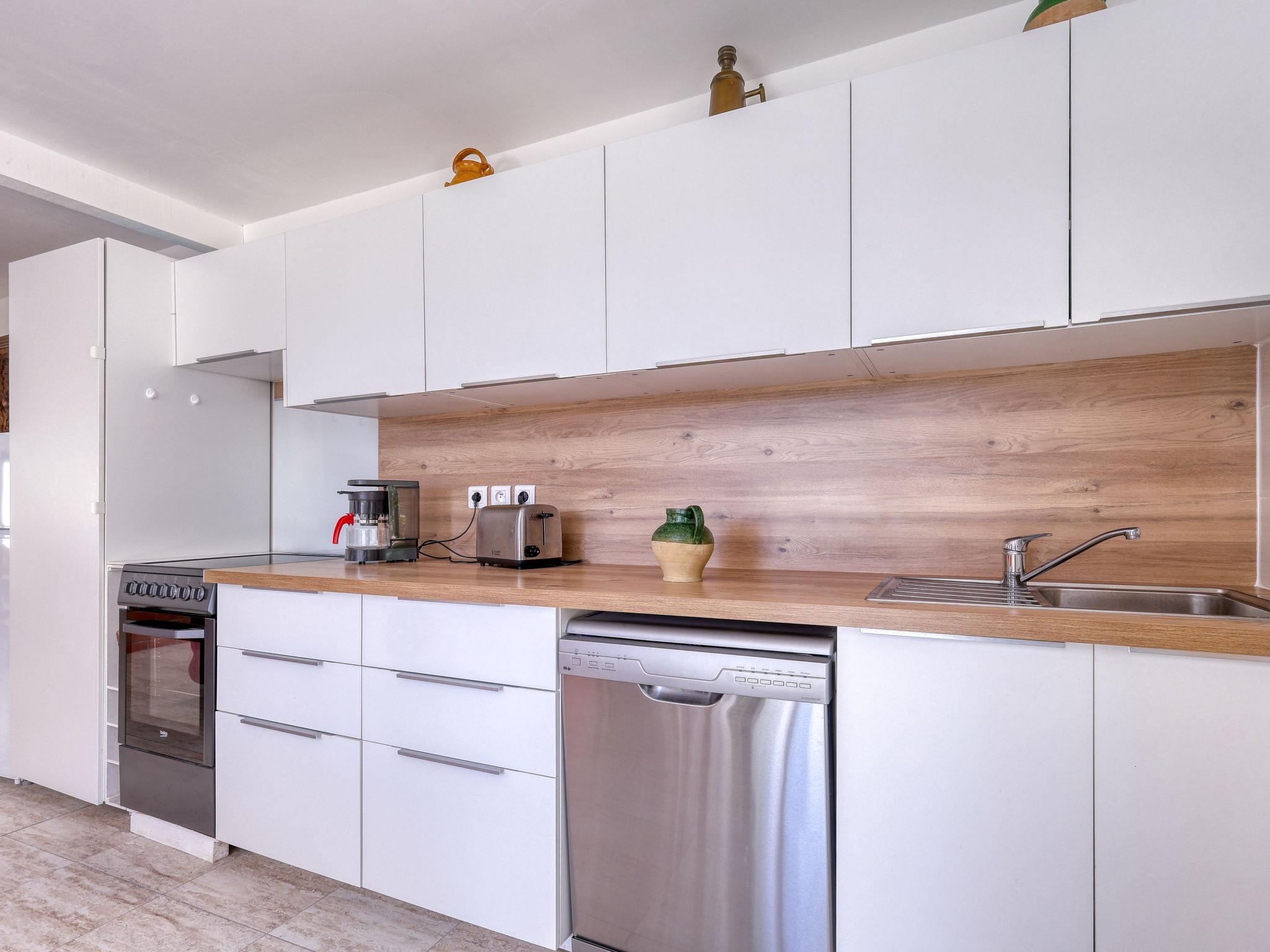 3-room house 80 m2. Comfortable and beautiful furnishings: living/dining room with dining table and TV (flat screen). Exit to the terrace. 2 rooms, each room with 2 beds (90 cm, length 200 cm). Open kitchen (oven, dishwasher, 4 ceramic glass hob hotplates, toaster, kettle, microwave, freezer, electric coffee machine). Shower, sep. WC. Electric heating. Large terrace 20 m2, south facing position. Terrace furniture. Distant view of the sea and the valley. Facilities: washing machine, baby cot for up to 2 year olds. Internet (WiFi, free). Parking (2 cars). Please note: TV only FR. Smoke alarm. Offer by a private individual according to Art. 155, IV of CGI.