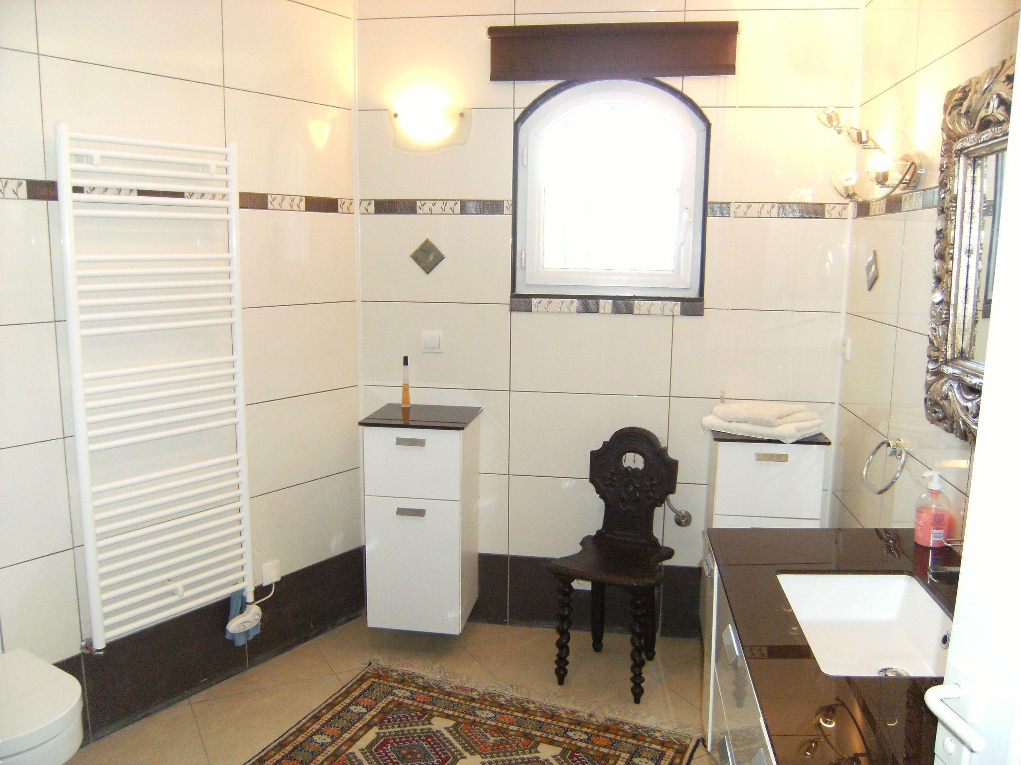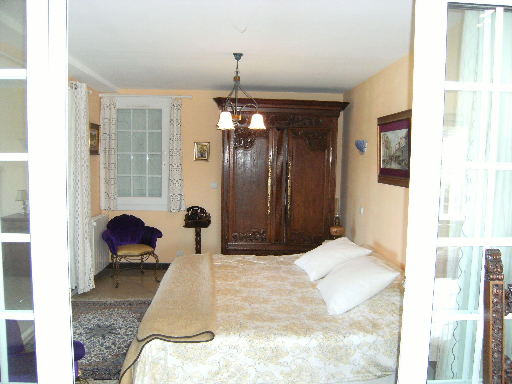 Two bedrooms, one with Louis XVI furniture, bed 140 x 190. One bedroom with double bed 200x220. Large bathroom with shower and WC.