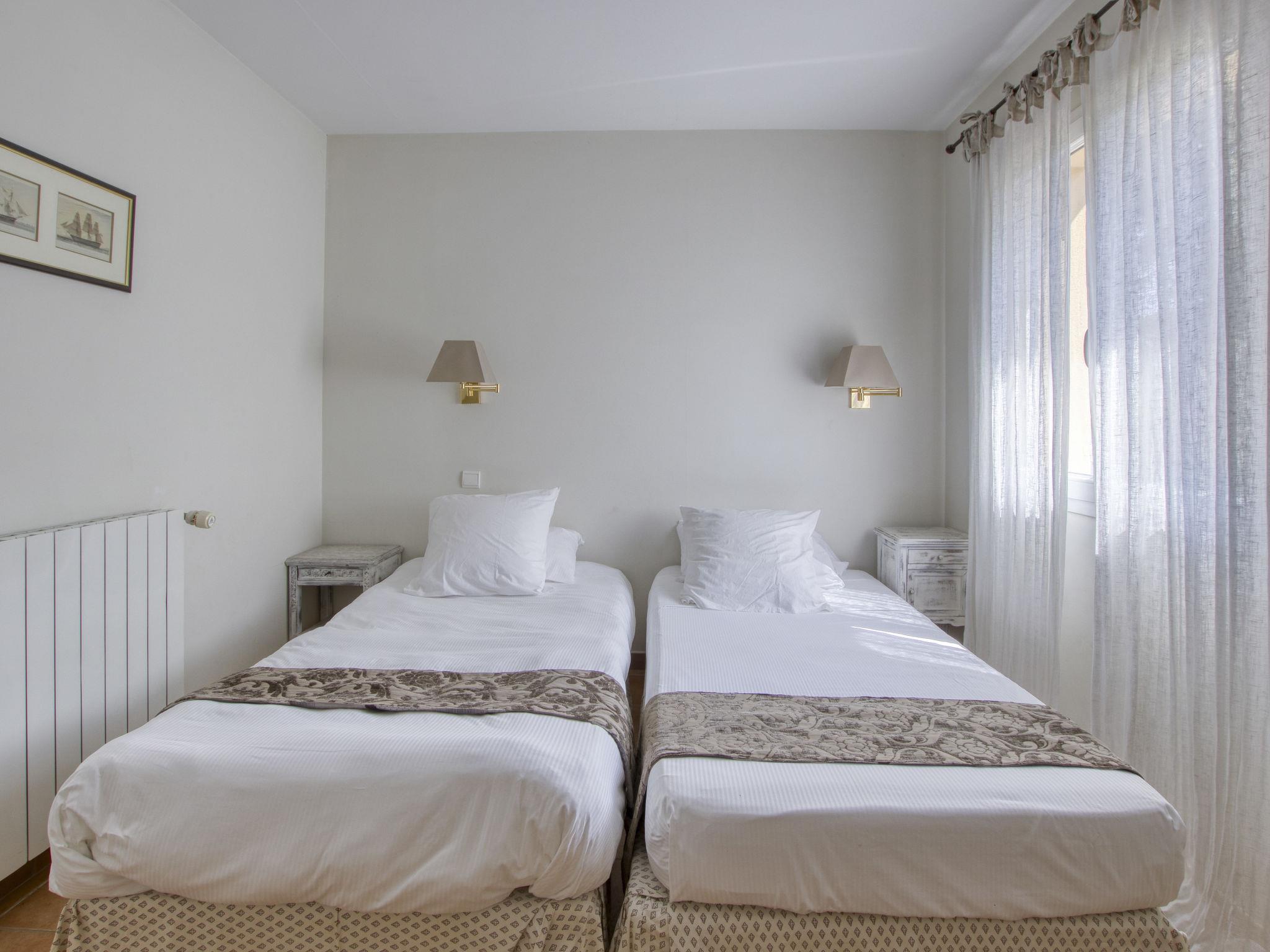 "Le Puit des Oliviers 2", 4-room house 125 m2 on 2 levels. Bright, tasteful furnishings: living/dining room with open-hearth fireplace, dining table and satellite TV. Exit to the terrace. 1 room with 2 beds and bathroom. Kitchen (oven, dishwasher, 4 ceramic glass hob hotplates, toaster, kettle, microwave, freezer, electric coffee machine). Exit to the terrace. Sep. WC. Upper floor: 1 room with 1 french bed (160 cm), shower. Exit to the terrace. 1 room with 2 beds and bathroom. Exit to the terrace. Sep. WC. Gas heating, air-conditioning. Terrace partly roofed, terrace 10 m2, south facing position. Terrace furniture, electric barbecue, deck chairs (6). Facilities: washing machine, children's high chair, baby cot. Internet (WiFi, free). Please note: smoke alarm. When there are less than the maximum number of guests staying at the property, not all of the bedrooms will be available for use.