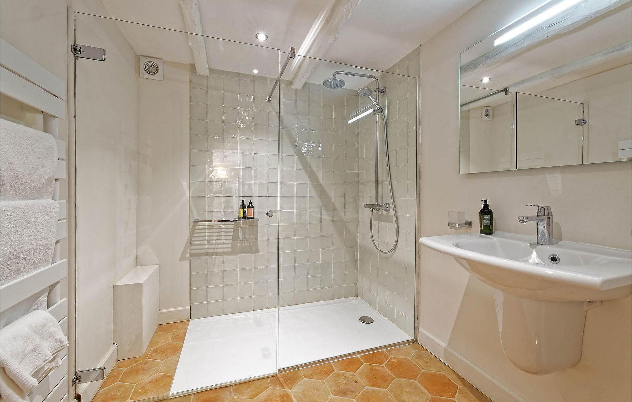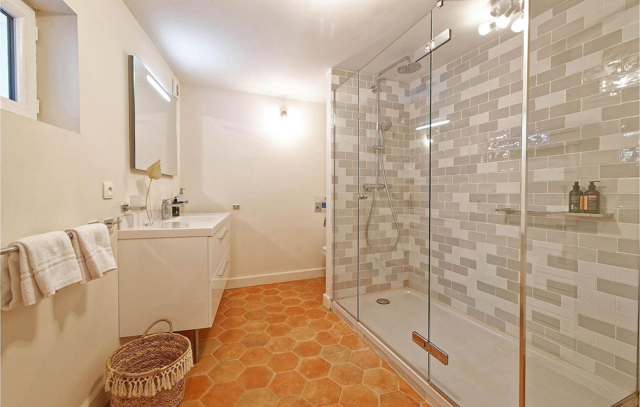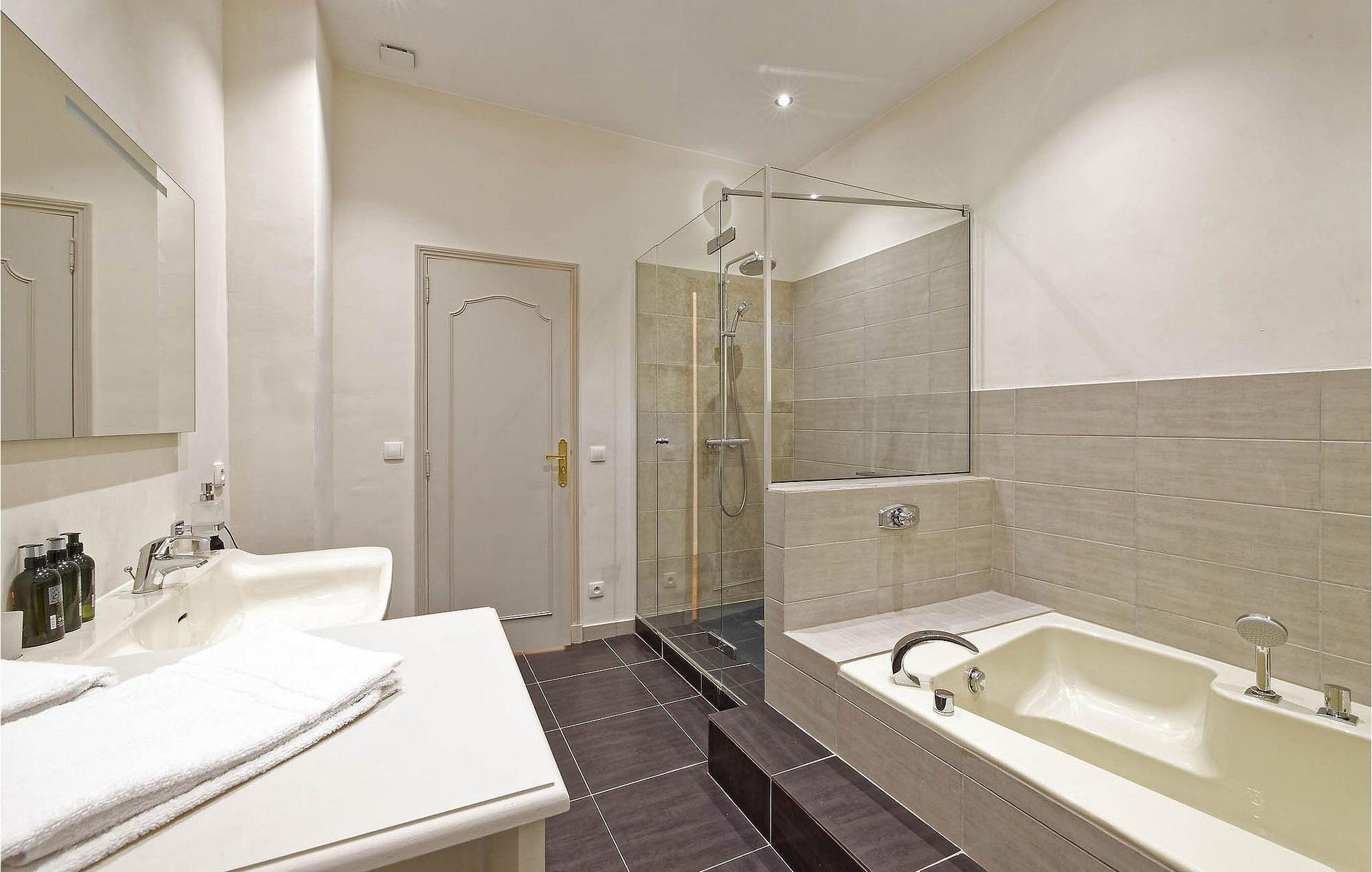 - WC mit warmem und kaltem Wasser, Dusche und Badewanne