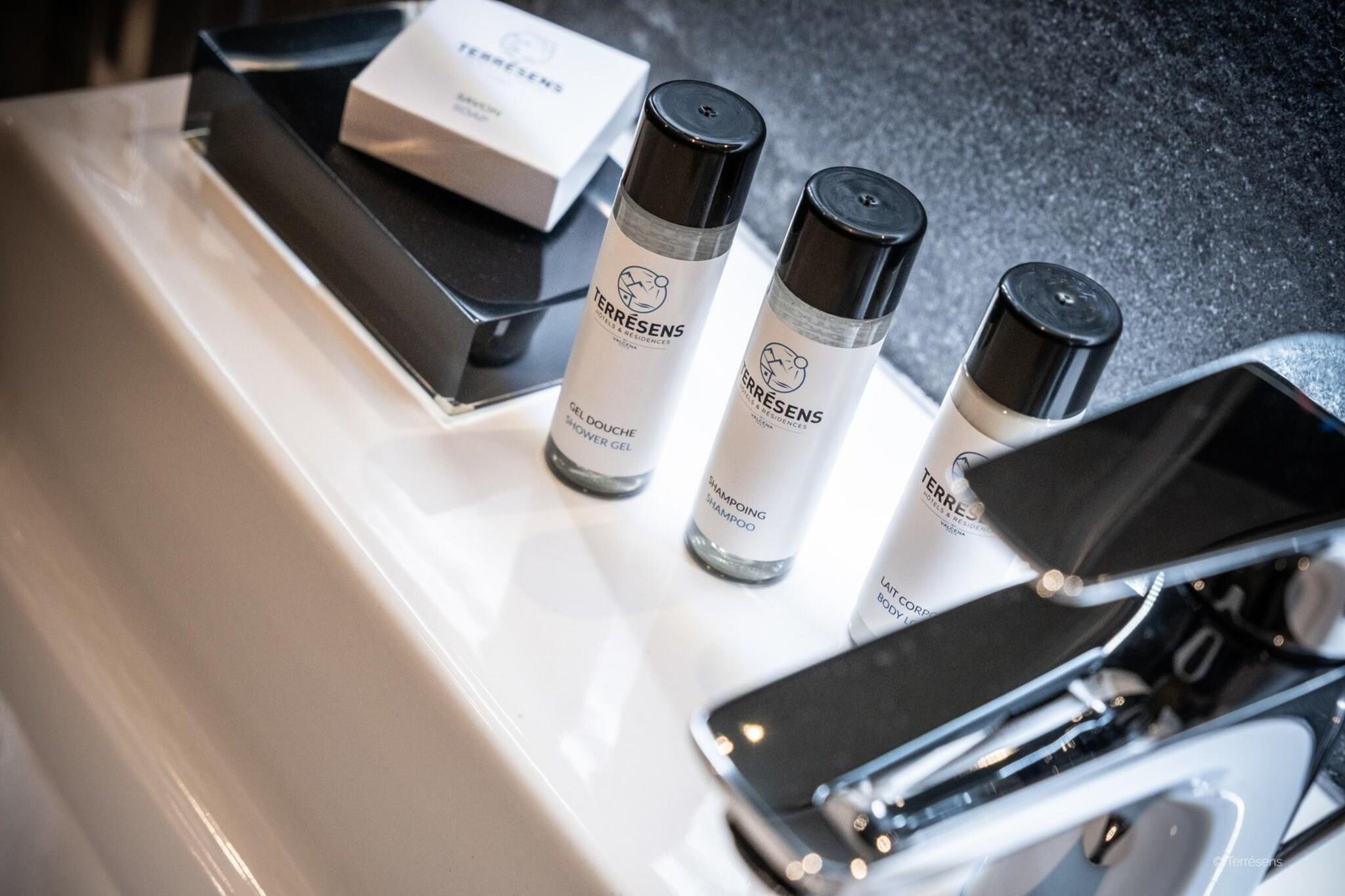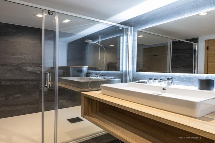 Living room(double sofa bed(140 x 200 cm), TV(flatscreen, satellite), seating area), open kitchen(hob(ceramic), electric kettle, toaster, coffee machine, oven, microwave, dishwasher, fridge, dishes and cutlery), bedroom(double bed(160 x 200 cm)), bedroom(single bed(80 x 200 cm), single bed(80 x 200 cm)), Cabin(bunk bed(80 x 200 cm)), bathroom(bathtub or shower), bathroom(bathtub or shower), toilet(toilet), toilet, Internet access, Parking, balcony or terrace