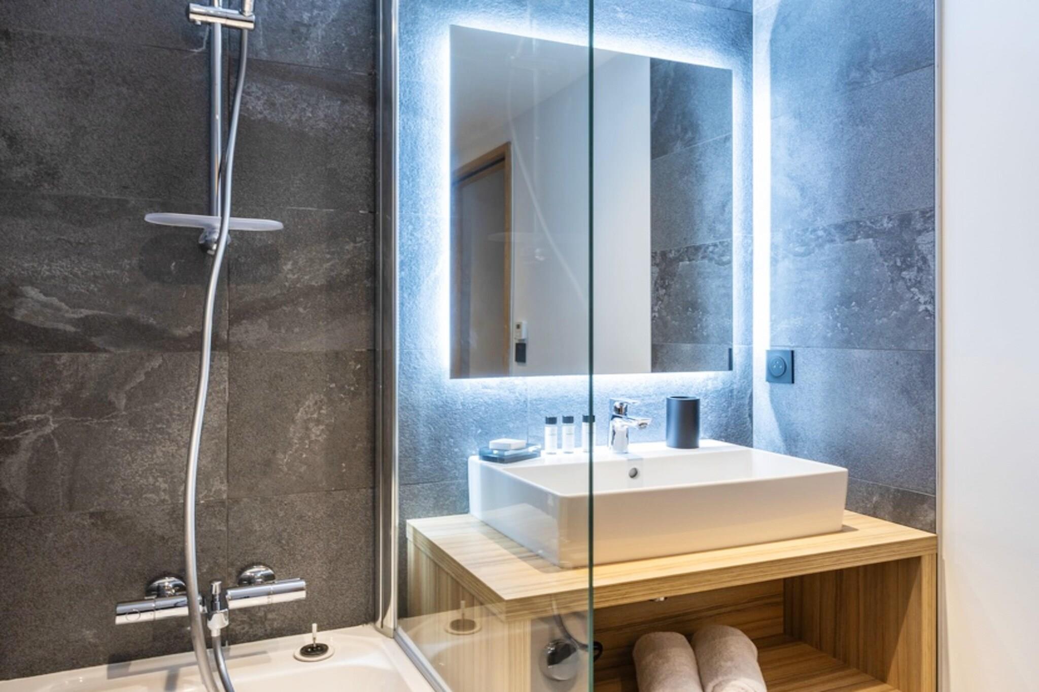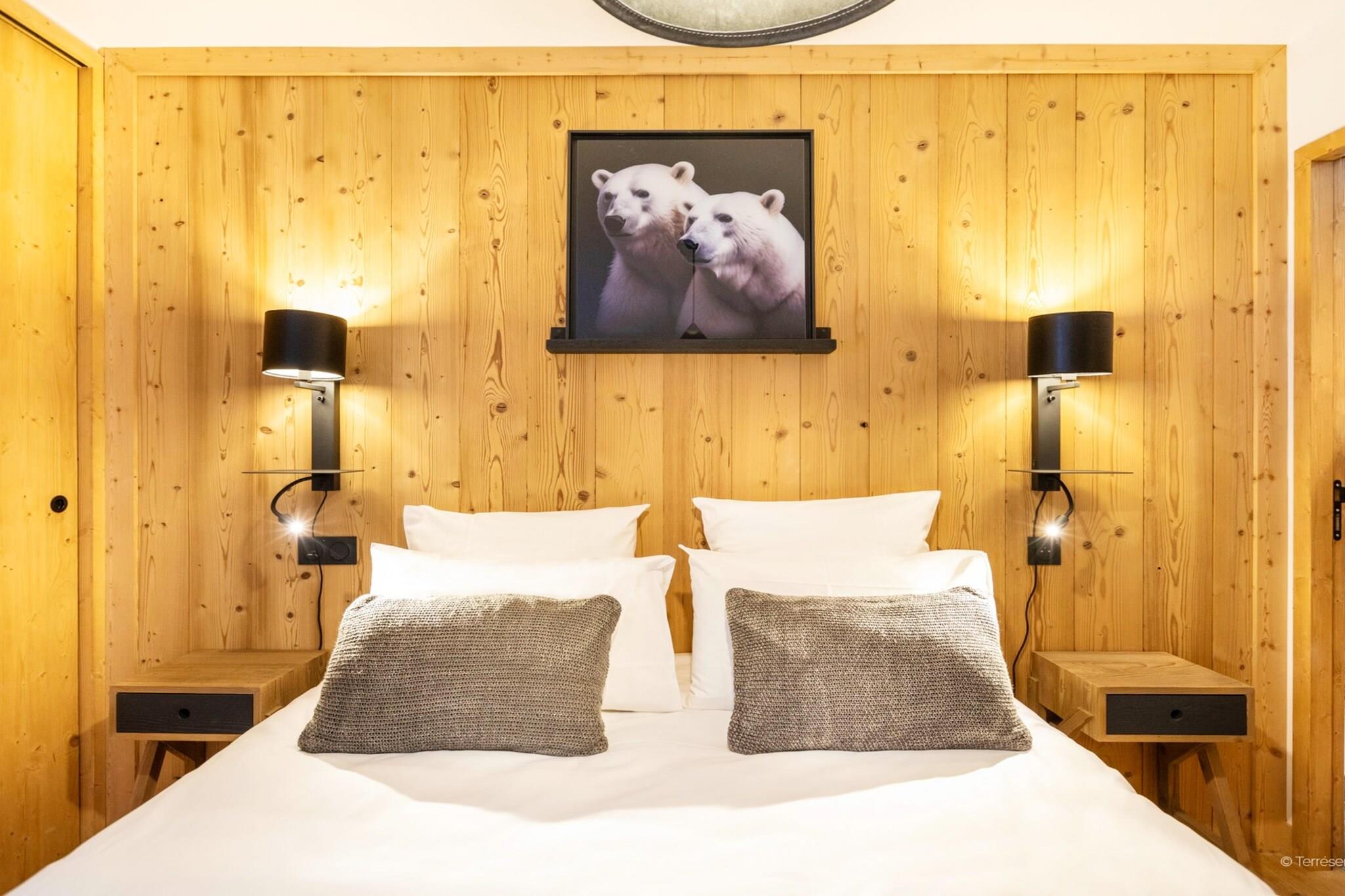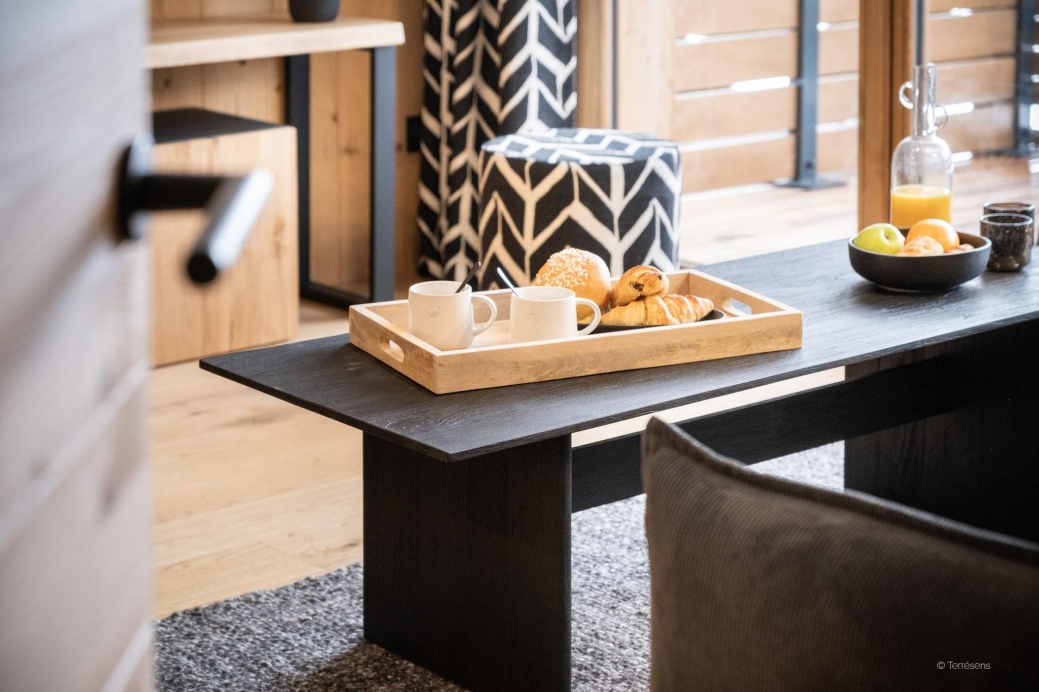 Living room(double sofa bed(140 x 200 cm), TV(flatscreen, satellite), seating area), open kitchen(hob(ceramic), electric kettle, toaster, coffee machine, oven, microwave, dishwasher, fridge, dishes and cutlery), bedroom(double bed(160 x 200 cm)), bedroom(single bed(80 x 200 cm), single bed(80 x 200 cm)), Cabin(bunk bed(80 x 200 cm)), bathroom(bathtub or shower), bathroom(bathtub or shower), toilet(toilet), toilet, Internet access, Parking, balcony or terrace, Mountain view
