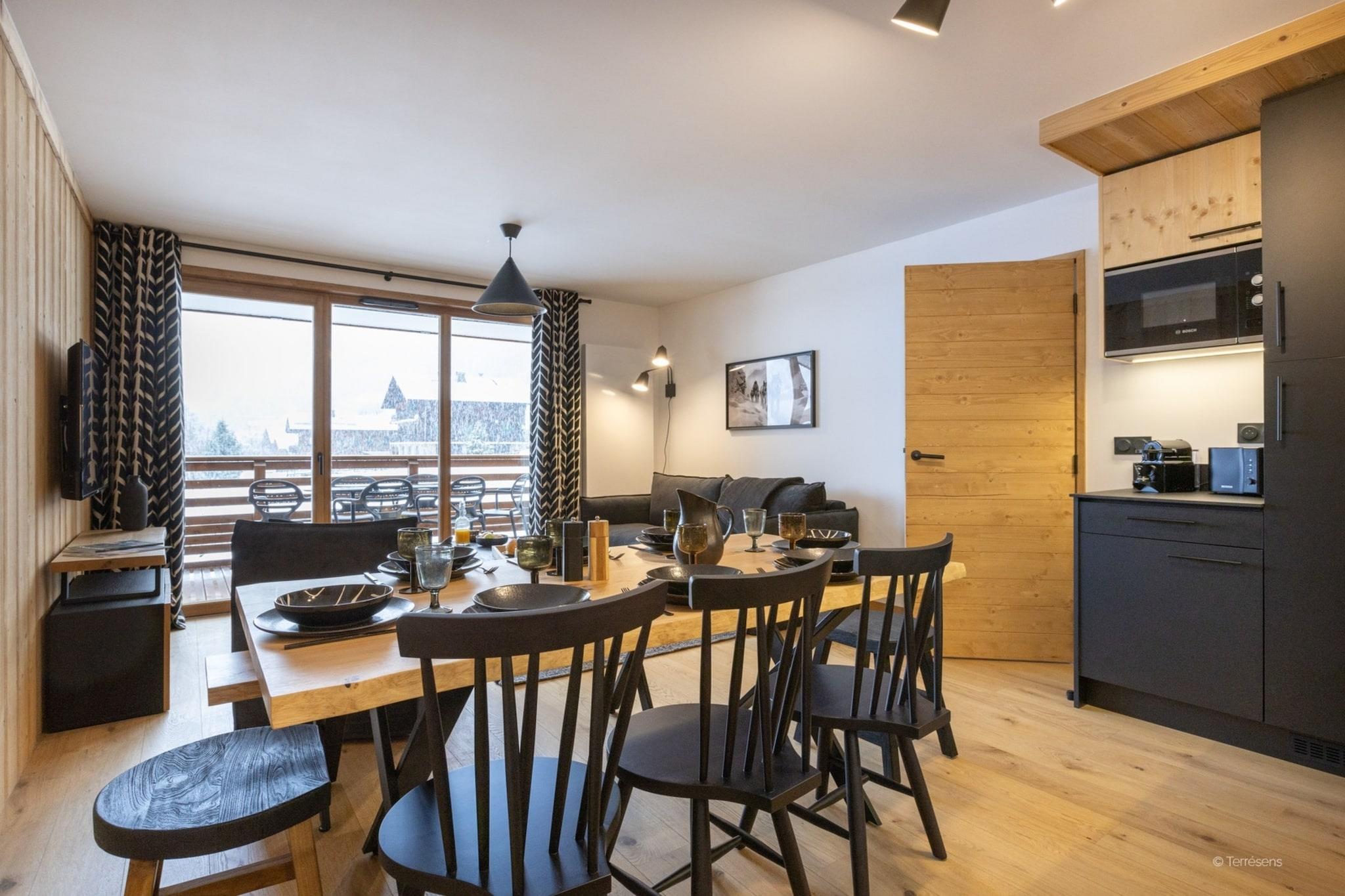 This spacious apartment in La Chapelle d'Abondance comfortably accommodates up to eight guests, making it a perfect choice for large families. The versatile layout includes two bedrooms—one with a double bed and one with twins—plus a separate cabin area with bunk beds and a double sofa bed in the living room. Unlike more basic rentals, this residence keeps you connected with high-speed internet and a flat-screen satellite TV. After a day of exploring the Haute-Savoie region, guests can unwind on the private balcony or terrace and take in the stunning mountain views. The open kitchen is designed for easy group catering, featuring a ceramic hob, oven, microwave, and a dishwasher to handle the cleanup. Every essential, from a coffee machine to a toaster and electric kettle, is provided to ensure a seamless stay. With two modern bathrooms and two separate toilets, the morning routine is quick and easy for large groups. The residence also includes the convenience of on-site parking, providing a stress-free experience for those arriving by car to immerse themselves in the authentic alpine lifestyle and beautiful natural scenery. Ideally located in the heart of the village, the apartment offers direct access to the Crêt-Béni chairlift, allowing you to ski right from the residence. A free shuttle service also connects you to the expansive Les Portes du Soleil ski area for world-class winter sports. Beyond the slopes, you are just a short walk from local shops and restaurants, perfect for experiencing the charm of the Val d'Abondance.
