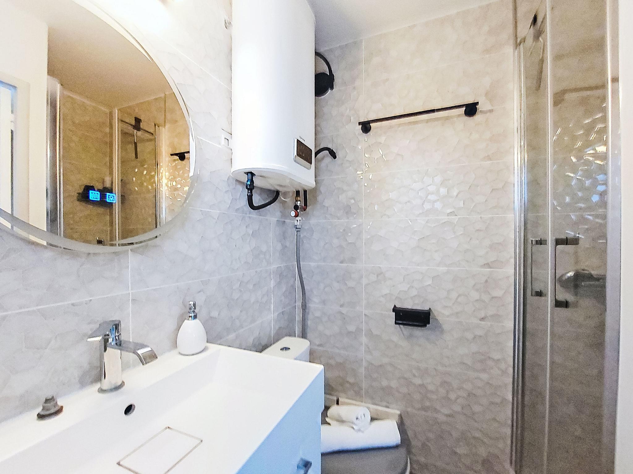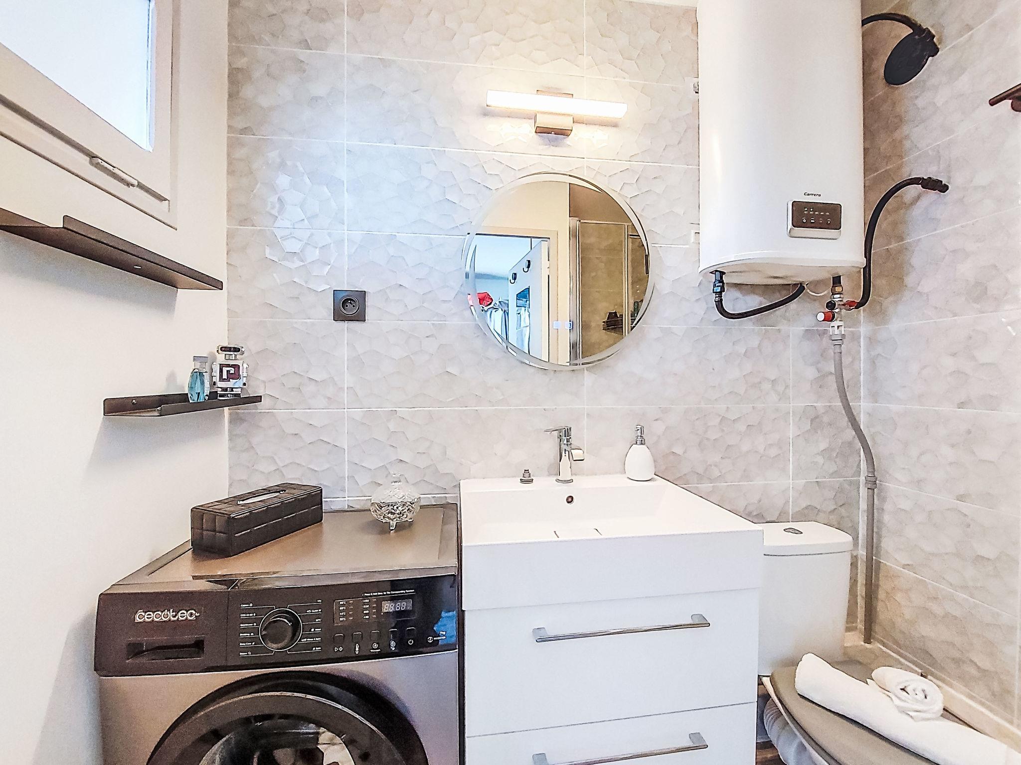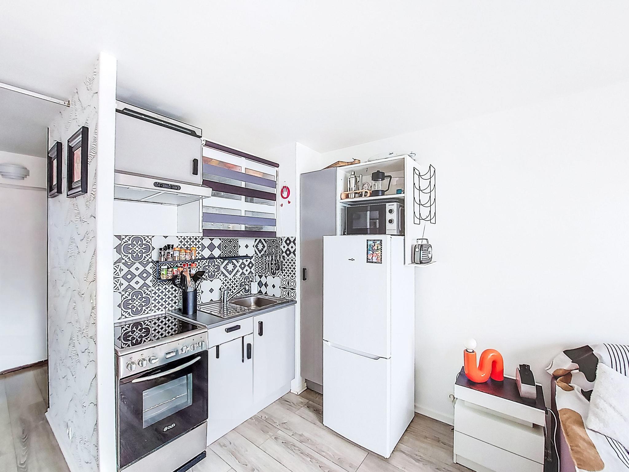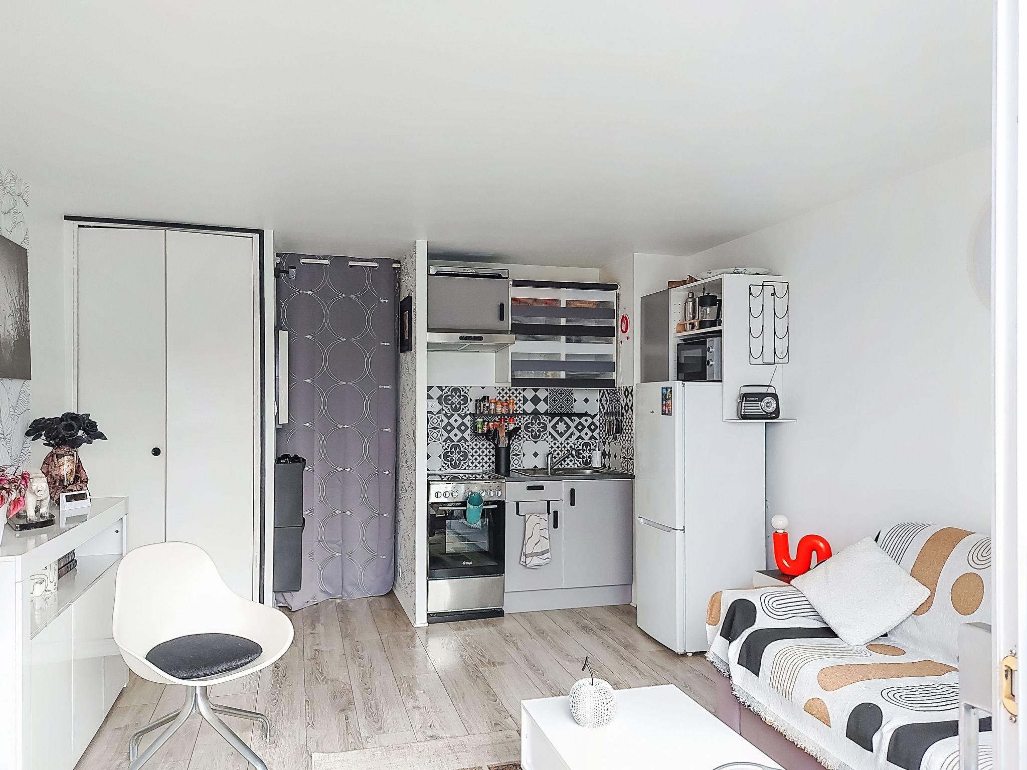 1-room studio 26 m2 on 3rd floor. Comfortable and beautiful furnishings: living/dining room with 1 double sofabed (160 cm, length 190 cm), TV (flat screen), air conditioning. Exit to the terrace. Kitchenette (oven, 4 ceramic glass hob hotplates, toaster, microwave, electric coffee machine). Shower/WC. Forced-air heating. Terrace 7 m2. Terrace furniture. View of the sea. Facilities: washing machine. Internet (WiFi, extra). Parking space n 694. Please note: TV only FR. Smoke alarm. Offer by a private individual according to Art. 155, IV of CGI. 13028003367OB