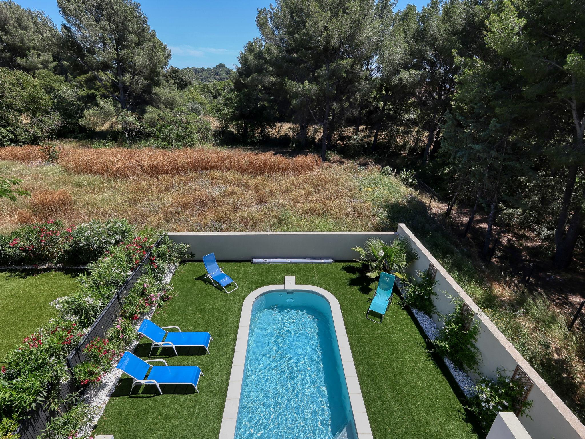 La Ciotat: Modern, beautiful, comfortable house "Villas Indigo", 2 storeys, terraced, built in 2022. 4.2 km from the centre of de la Ciotat, in a quiet position in the residential district, 2.2 km from the sea. Private: property (fenced), well-kept garden 150 m2, swimming pool angular (3 x 6 m, depth 120 - 160 cm, seasonal availability: 02.May. - 01.Oct.) with internal staircase and alarm system. Terrace (20 m2), garden furniture, parking (for 2 cars). Supermarket 1.2 km, restaurant 2.3 km, bus stop "Maurelle Nord" 600 m, railway station "La Ciotat - Ceyreste" 2.2 km, sandy beach "La Ciotat" 2.2 km, park "Du Domaine de la Tour" 2 km. Sports harbour 4.3 km, golf course (18 hole) 14 km, tennis 2.1 km. Nearby attractions: Aqualand à St Cyr sur mer 9 km, Zoa à Bandol 26 km, Bowling à Bandol 26 km, OK Corral à Cuges les Pins 18 km. Hiking paths: Sainte Baume, Sainte Victoire, Calanques Port-Cros, Porquerolles, Ile verte, Embiez, Figuerolles, Cassis. The owner does not accept any youth groups. The keys‘ handover takes place by the agency INTERHOME in St Cyr sur mer, 11 km.
