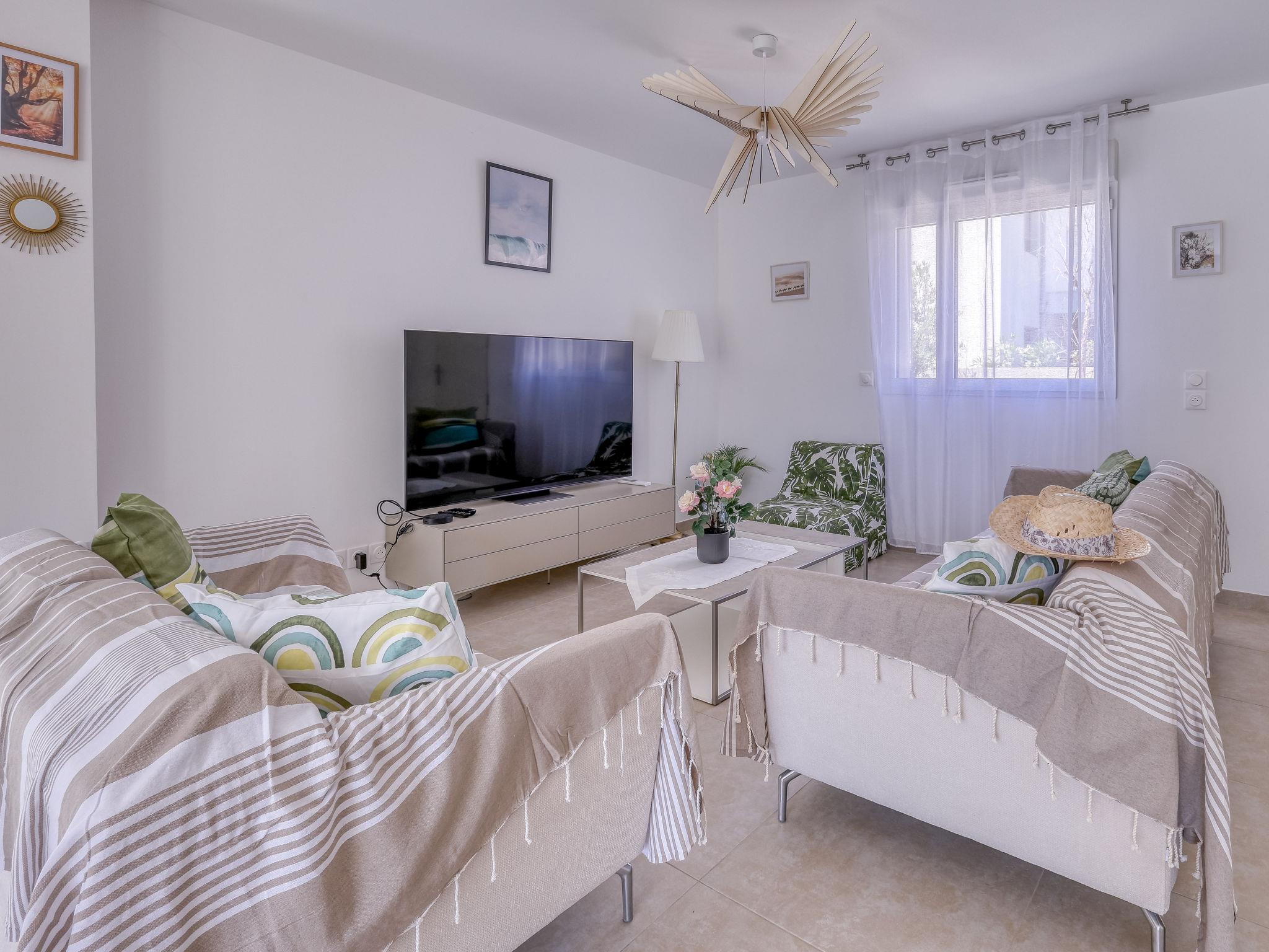 4-room terraced house 120 m2 on 2 levels. Spacious and bright, comfortable and modern furnishings: large living/dining room 35 m2 with dining table and TV (flat screen). Exit to the garden, to the terrace. Open kitchen (oven, dishwasher, 4 induction hot plates, microwave, freezer, electric coffee machine, Capsules for coffee machine (Vertuo + filtre) extra) with bar. Exit to the terrace. Shower/bidet/WC. Air-conditioning, forced-air heating. Upper floor: 1 room with 1 french bed (160 cm, length 200 cm), shower and air conditioning. 1 room with 1 french bed (160 cm, length 200 cm), air conditioning. 1 room with 2 beds (90 cm, length 190 cm), air conditioning. Shower, sep. WC. Air-conditioning, forced-air heating. Terrace 20 m2, large terrace 60 m2. Facilities: washing machine, iron. Internet (WiFi, free). Parking (2 cars). Please note: non-smoking house. TV only FR. Smoke alarm. The large 60m2 terrace is located on the roof of the 1st floor. It is unfurnished (no terrace furniture). Offer by a private individual according to Art. 155, IV of CGI. 13028002495H4