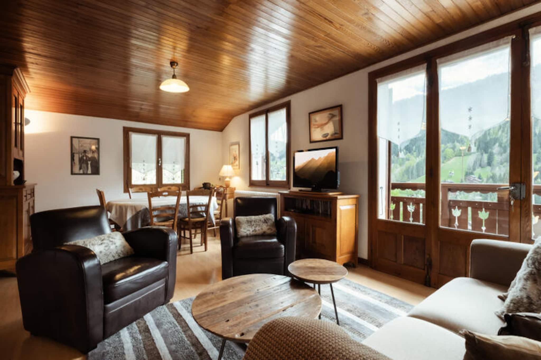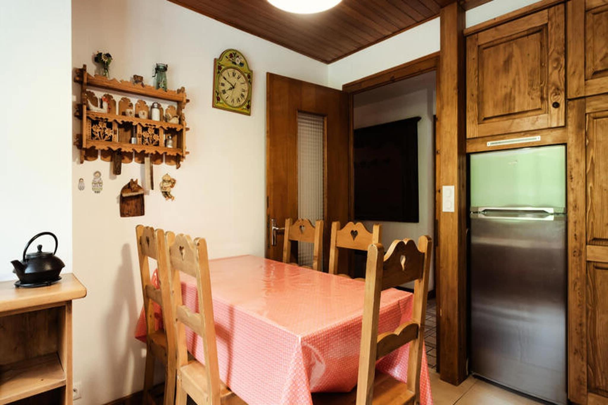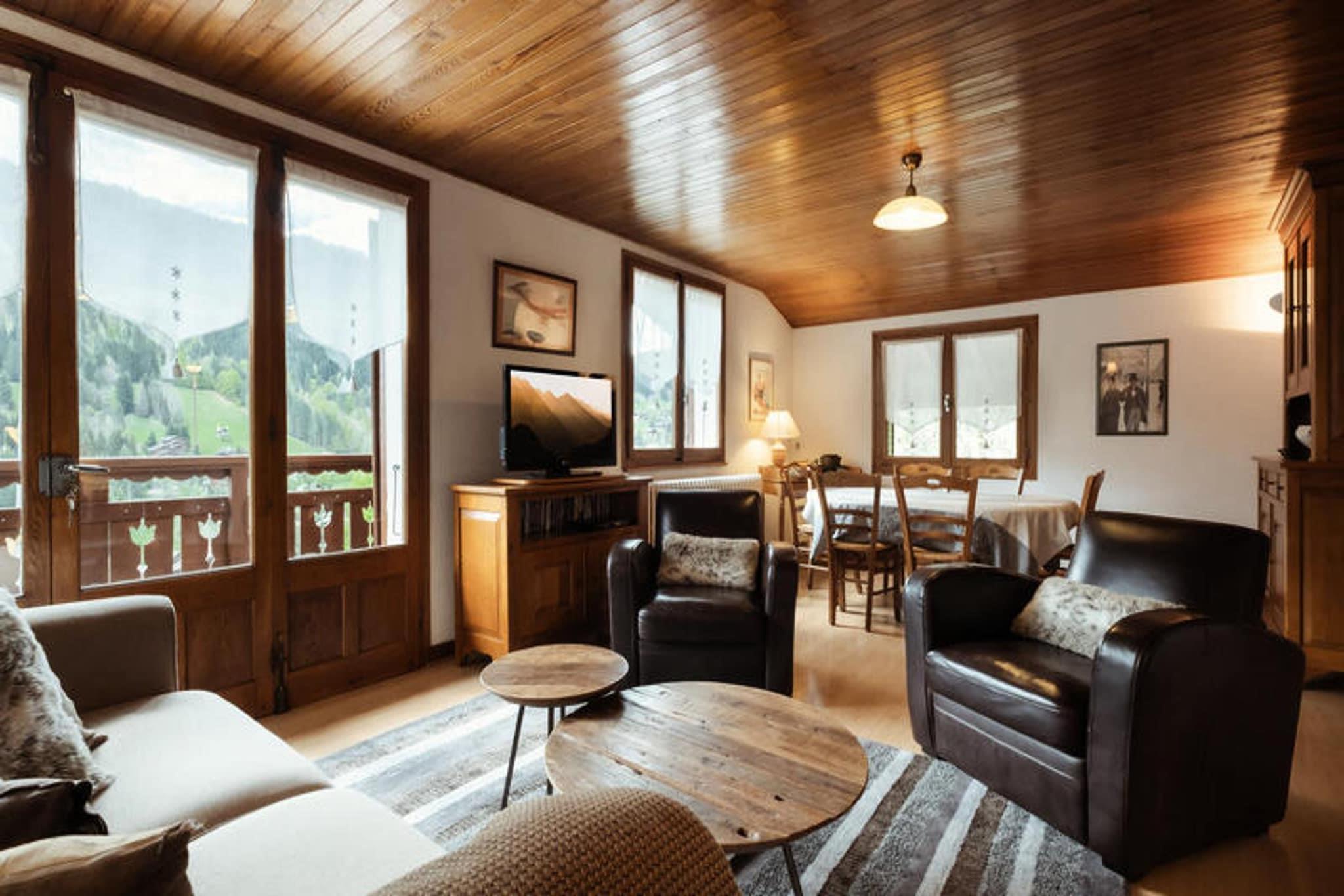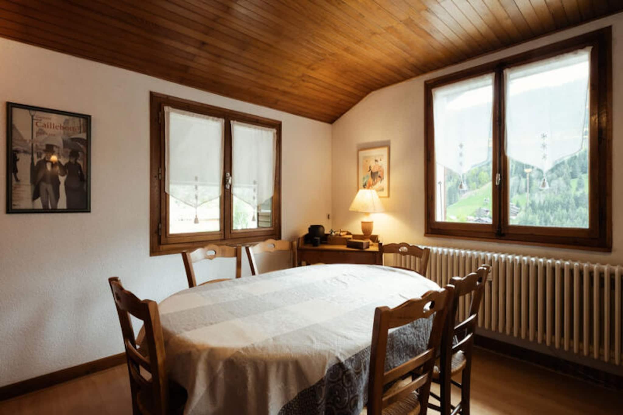 This spacious 80 m² apartment in the heart of the Aravis Valley offers a perfect retreat for up to 6 travelers. Located on the 1st floor of a residence built in 1963, the apartment features a west-facing balcony with beautiful views of the Col des Aravis road and surrounding mountains. The accommodation includes two cozy bedrooms: one with a double bed and a sink, and the other with two sets of bunk beds (please note, upper beds are not suitable for children under 6). The living room is generously sized, with a dining area, lounge area, and flat-screen TV, creating a comfortable space to relax after a day of outdoor adventures. Located just 500 meters from the Ruade ski slopes and a short shuttle ride to the village center (1.8 km), this apartment is perfect for winter sports enthusiasts. In the warmer months, enjoy hiking and exploring the stunning alpine landscape. The charming village of La Clusaz, only a short distance away, offers local shops, restaurants, and a variety of recreational activities. The fully equipped kitchen includes a refrigerator, glass ceramic stove, oven, microwave, dishwasher, and a Nespresso machine, making it ideal for preparing meals. The apartment also features a shower room with a towel dryer radiator and a separate WC. Guests can take advantage of convenient amenities such as a washing machine, ski and bike storage, and internet access. Parking is available on-site for added convenience.