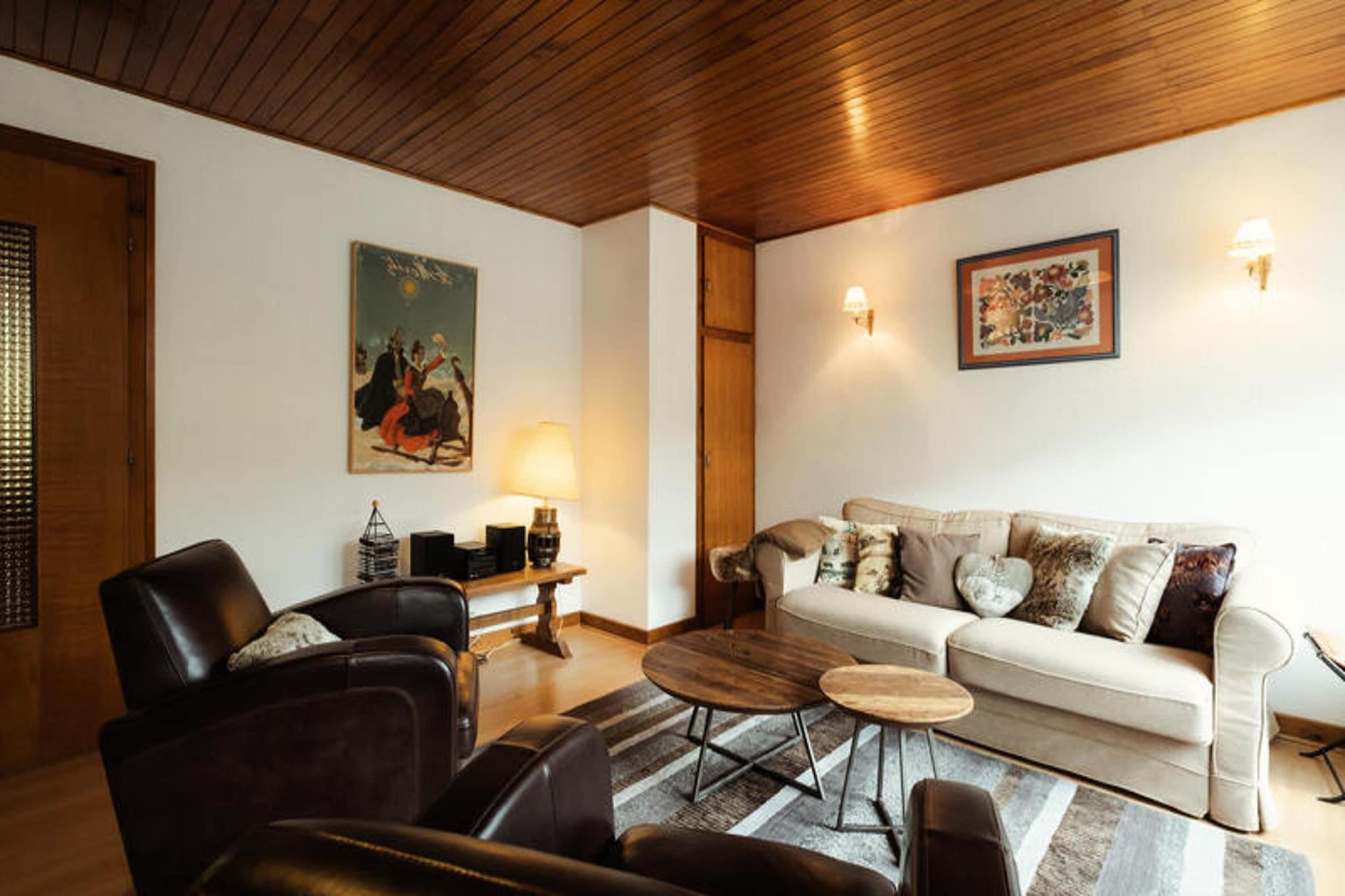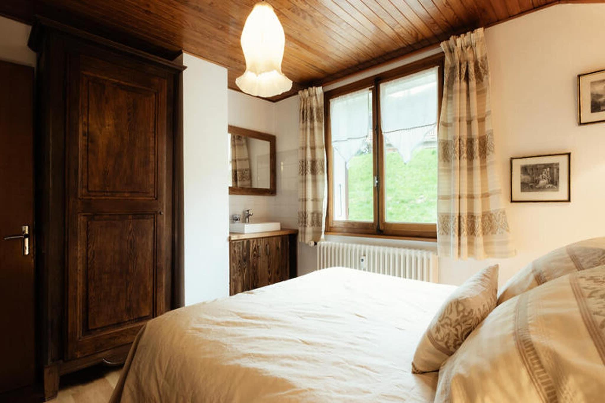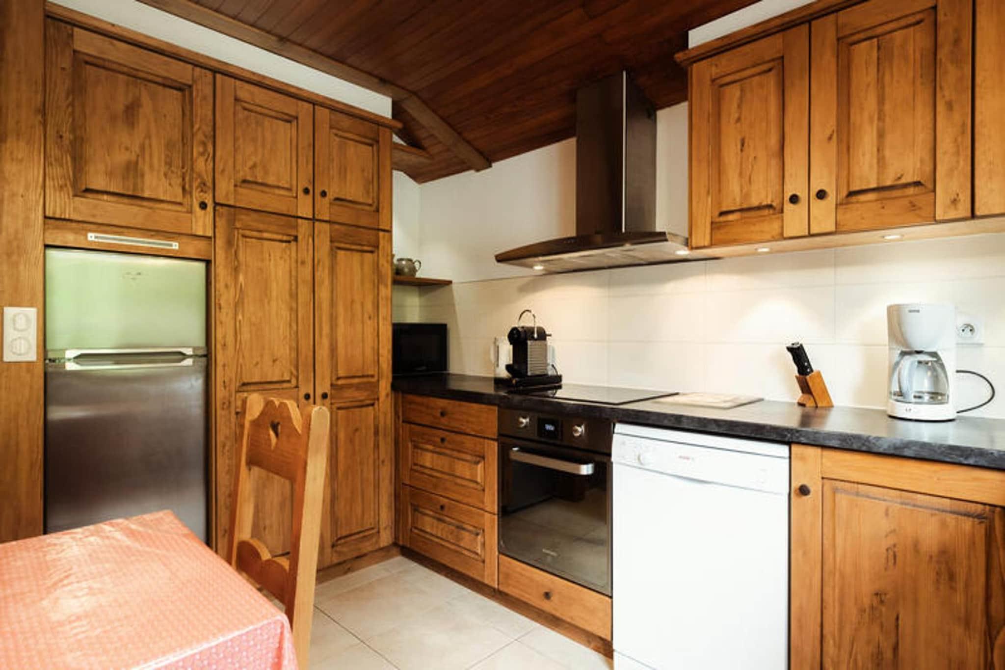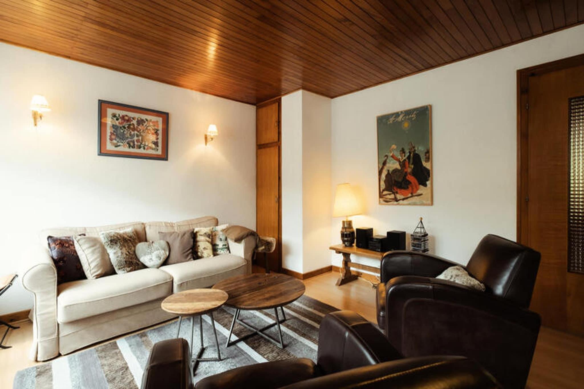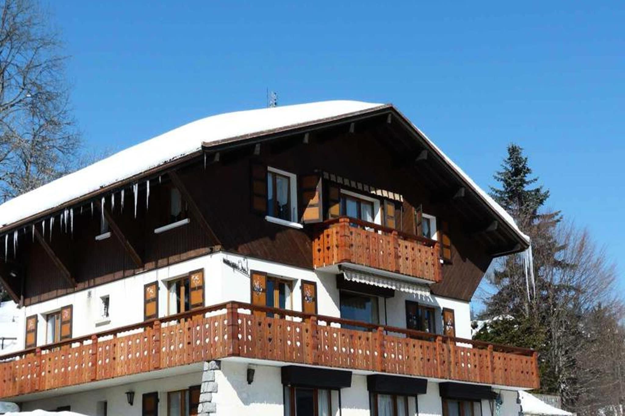 This spacious 80 m² apartment in the heart of the Aravis Valley offers a perfect retreat for up to 6 travelers. Located on the 1st floor of a residence built in 1963, the apartment features a west-facing balcony with beautiful views of the Col des Aravis road and surrounding mountains. The accommodation includes two cozy bedrooms: one with a double bed and a sink, and the other with two sets of bunk beds (please note, upper beds are not suitable for children under 6). The living room is generously sized, with a dining area, lounge area, and flat-screen TV, creating a comfortable space to relax after a day of outdoor adventures. Located just 500 meters from the Ruade ski slopes and a short shuttle ride to the village center (1.8 km), this apartment is perfect for winter sports enthusiasts. In the warmer months, enjoy hiking and exploring the stunning alpine landscape. The charming village of La Clusaz, only a short distance away, offers local shops, restaurants, and a variety of recreational activities. The fully equipped kitchen includes a refrigerator, glass ceramic stove, oven, microwave, dishwasher, and a Nespresso machine, making it ideal for preparing meals. The apartment also features a shower room with a towel dryer radiator and a separate WC. Guests can take advantage of convenient amenities such as a washing machine, ski and bike storage, and internet access. Parking is available on-site for added convenience.