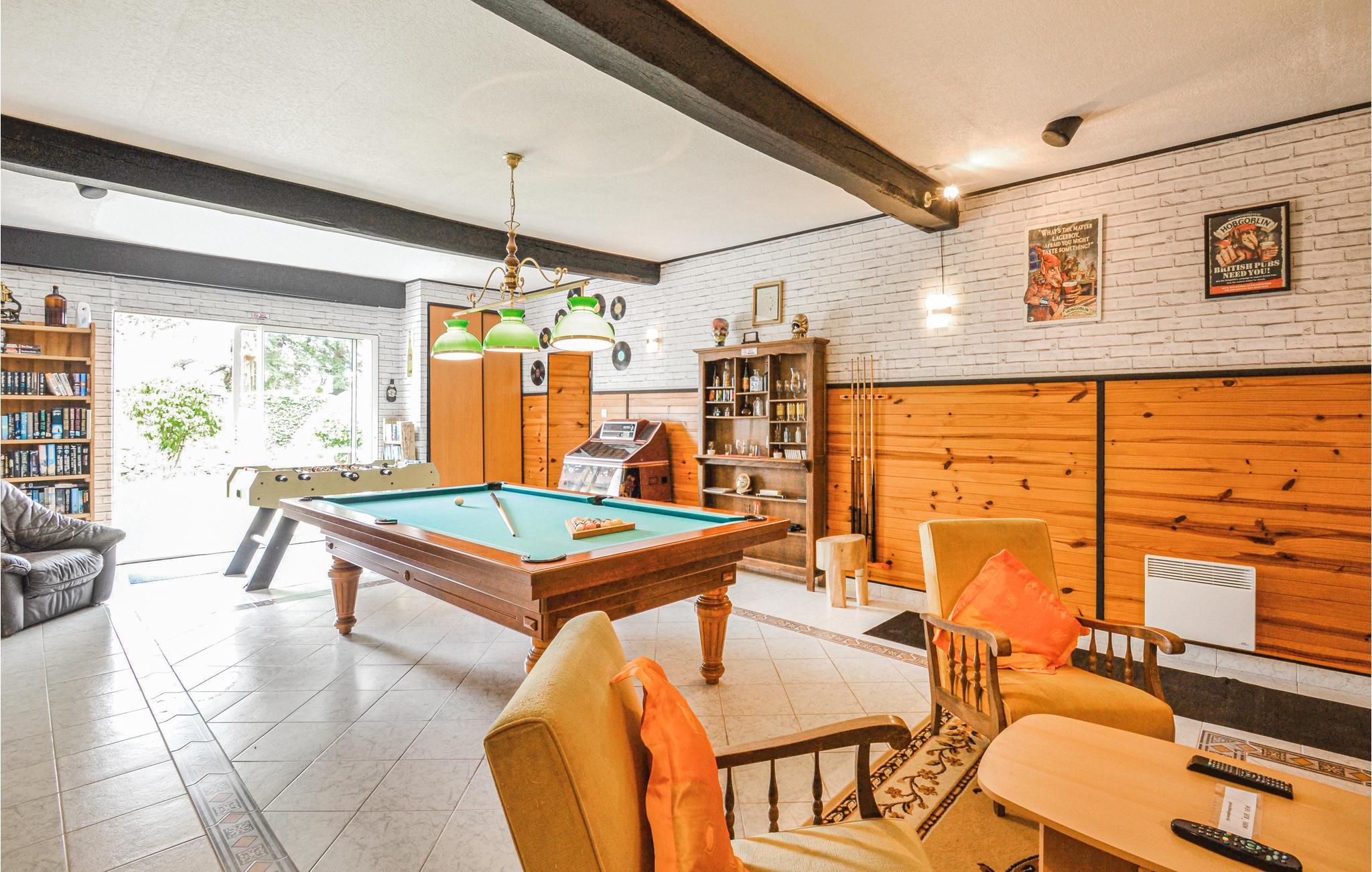 Ihre Ferienwohnung bietet viel Platz und ist daher für Familien geeignet. Machen Sie es sich im Wohnbereich gemütlich, der mit Sofa, Sesseln und Fernseher ausgestattet ist. Nutzen Sie die schöne Küche mit Esstisch, die praktisch eingerichtet ist, und bereiten Sie Ihre Mahlzeiten in geselliger Atmosphäre zu. Entdecken Sie die beiden großen Aktivitätsräume im Erdgeschoss. Spielen Sie Billard, Tischtennis, Tischfußball oder Darts und stöbern Sie in der Sammlung von Büchern, CDs und DVDs. Verbringen Sie abwechslungsreiche Stunden unabhängig vom Wetter und gestalten Sie Ihre Freizeit aktiv.