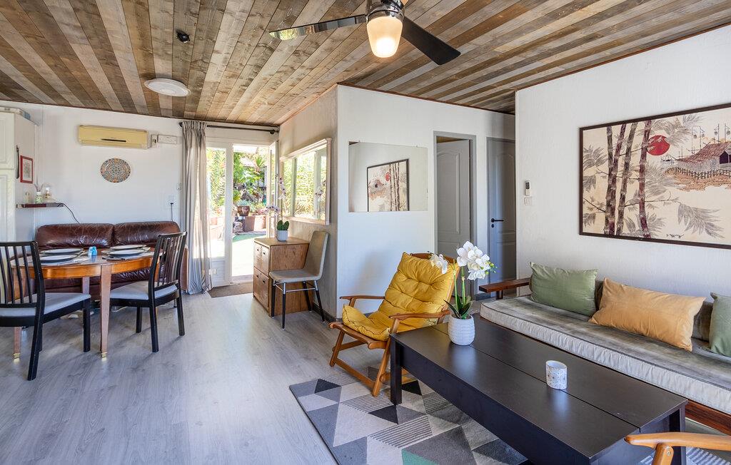 Wohnen Sie in diesem gelben Ferienhaus etwas außerhalb der Stadt La Crau und tanken Sie neue Energie! Das Haus ist gemütlich eingerichtet und bietet alles, was Sie für einen Erholungsurlaub brauchen. Genießen Sie ein Gläschen Wein und plaudern Sie über die besten Erlebnisse des Tages, während Sie gemeinsam in der großen Küche leckeres Essen für den Genussabend auf der offenen Terrasse vorbereiten. Hier können Sie sich tagsüber auch sonnen und sich unter dem Sonnenschirm bei kalten Getränken in Uno gegenseitig herausfordern. Im gemeinsamen Pool können Sie zusammen mit Ihren Kindern fröhlich planschen, schwimmen und vielleicht auch tauchen. Brauchen Sie ein bisschen Schatten, legen Sie sich einfach unter dem Strohsonnenschirm.