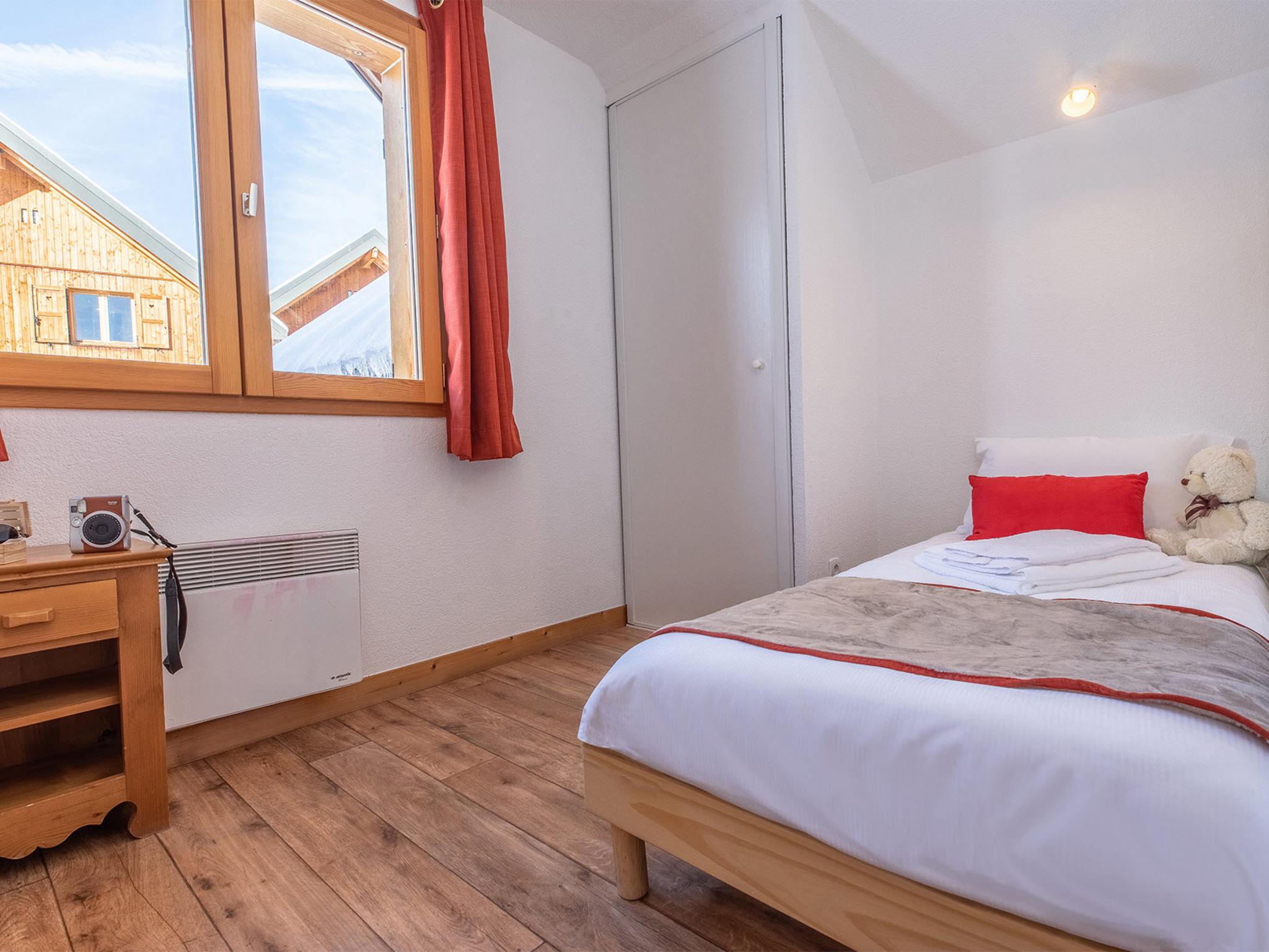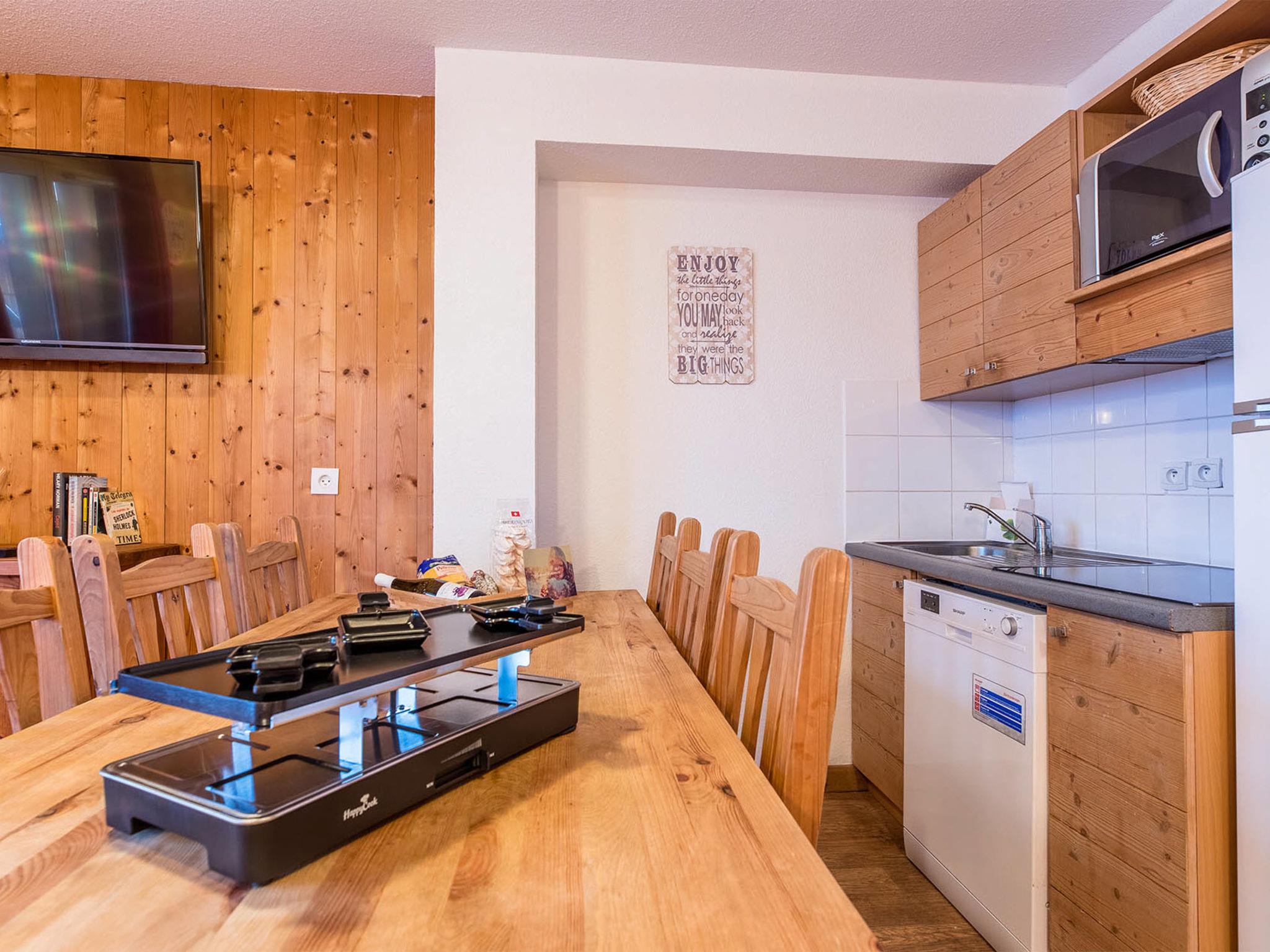 "Les Chalets du Berger", 3-room apartment 42 m2 on 2 levels. Beautiful and cosy furnishings: living/sleeping room with 1 pull-out bed (2 pers.), dining table and TV. Open kitchen (2 hot plates, dishwasher, toaster, kettle, microwave, electric coffee machine). Sep. WC. Upper floor: 1 room with 1 french bed. 1 room with 2 beds. Bath/WC or shower/WC. Balcony or terrace. Facilities: hair dryer. Internet (WiFi, free). Please note: non-smokers only. Maximum 2 pets/ dogs allowed.