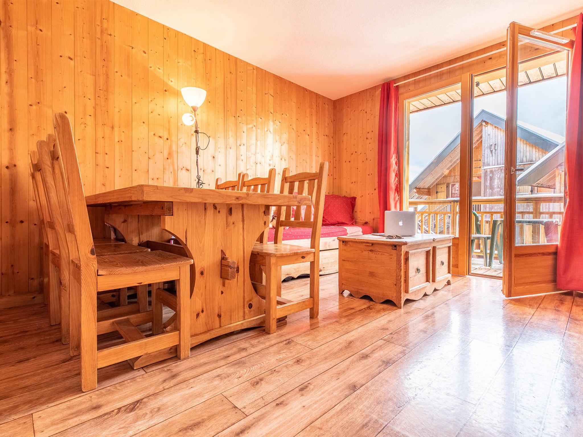 "Les Chalets du Berger", 3-room apartment 56 m2 on 2 levels. Beautiful and cosy furnishings: living/sleeping room with 1 pull-out bed (2 pers.), dining table and TV. Open kitchen (2 hot plates, dishwasher, toaster, kettle, microwave, electric coffee machine). Shower, sep. WC. Upper floor: 1 room with 1 french bed. 1 room with 2 beds. Alcove with 1 x 2 bunk beds. Bath/WC or shower/WC. Balcony or terrace. Facilities: hair dryer. Internet (WiFi, free). Please note: non-smokers only. Maximum 2 pets/ dogs allowed. Instead of an enclosed bedroom, some sleeping areas are located in an open-plan area (gallery, alcove, etc.).