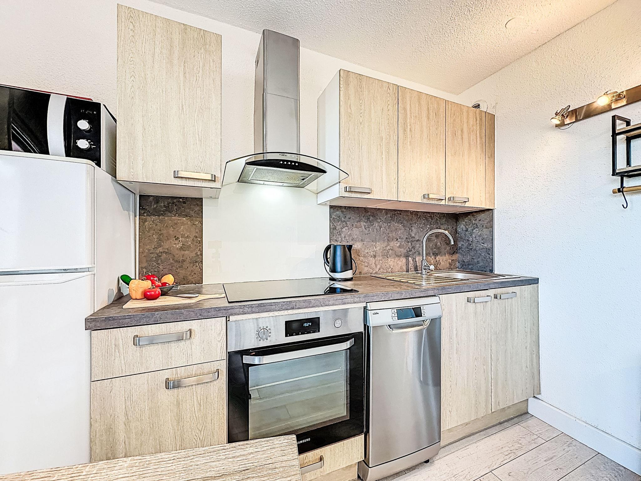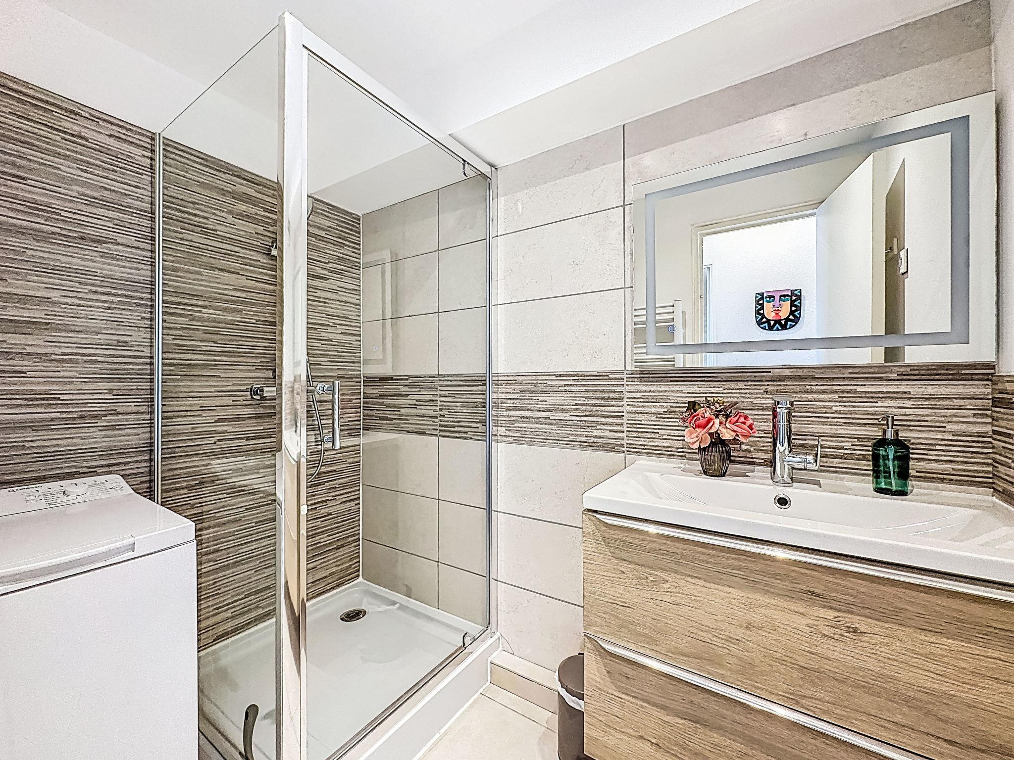 "Les Grenadines", 2-room apartment 34 m2 on 3rd floor. Living/dining room with TV (flat screen). Exit to the terrace. 1 room with 1 french bed (1 x 140 cm, length 190 cm). Kitchenette (oven, dishwasher, 1 ceramic glass hob hotplate, toaster, kettle, microwave, electric coffee machine). Shower, sep. WC. Air-conditioning. Terrace 10 m2. Terrace furniture. View of the sea. Facilities: washing machine. Internet (WiFi, extra). Parking space n 3. Please note: non-smokers only. Smoke alarm. Offer by a private individual according to Art. 155, IV of CGI.
