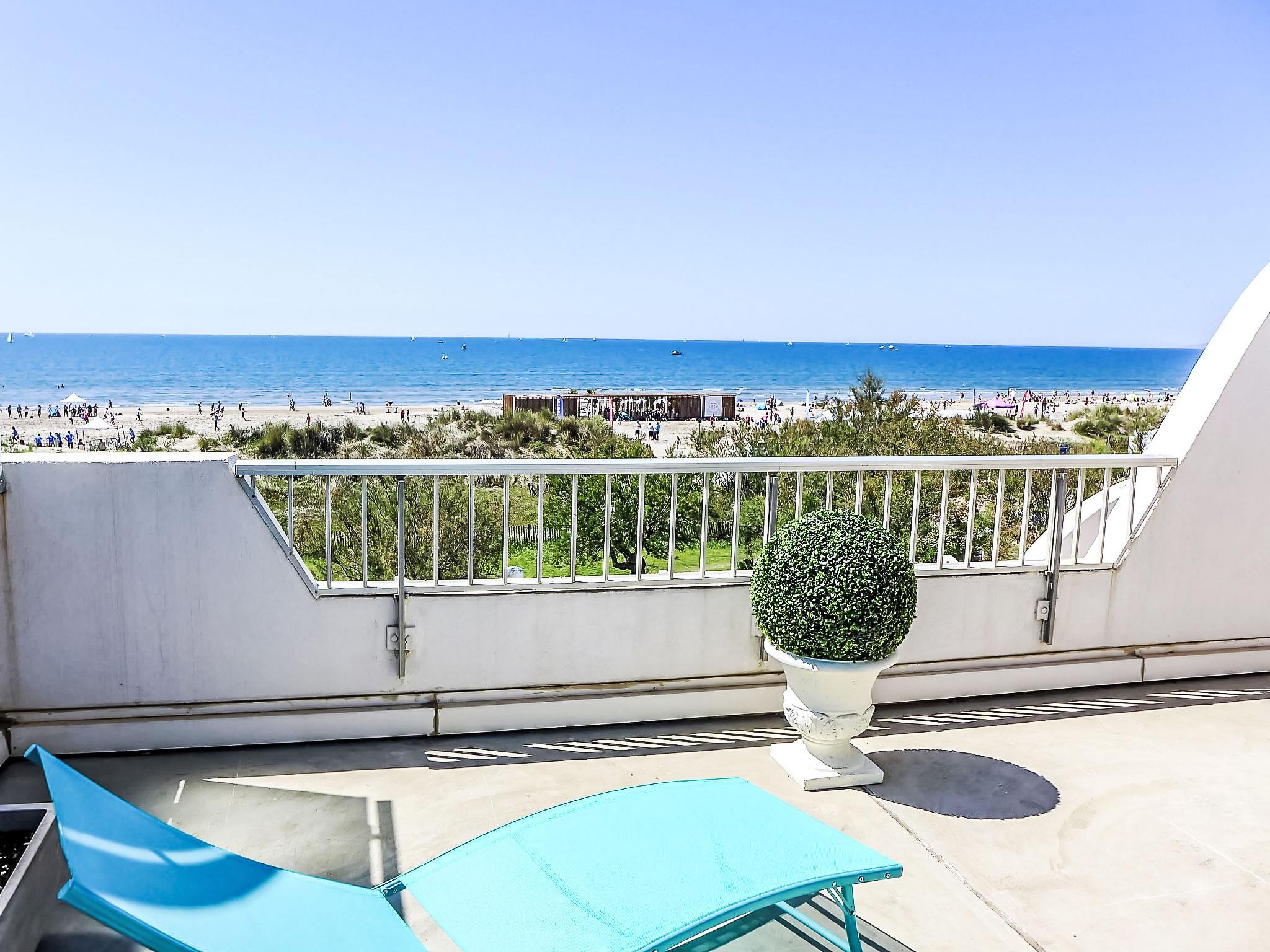 Residence "La Calypso", 4 storeys. In the district of La Motte du Couchant, 1 km from the centre, 50 m from the sea, 40 m from the beach, direct access to the beach. For shared use: swimming pool (seasonal availability: 22.Jun. - 30.Aug. pool opening hours: 15:00-20:00). Shopping centre 150 m, restaurant, bus stop 400 m, railway station "Montpellier" 25 km, sandy beach 20 m, indoor swimming pool 3 km, thermal baths "Thalasso Spa" 2.5 km. Sports harbour 900 m, golf course (18 hole) 3.5 km, sailing school 500 m, tennis 3 km, riding stable 2 km. Nearby attractions: Le Seaquarium du Grau Du Roi 10 km, Les Remparts d'Aigues Mortes 12 km, Les Saintes Maries de la Mer 40 km. Please note: no lift. Airfield close by 20 km from the property. Additional accommodations can be booked.
