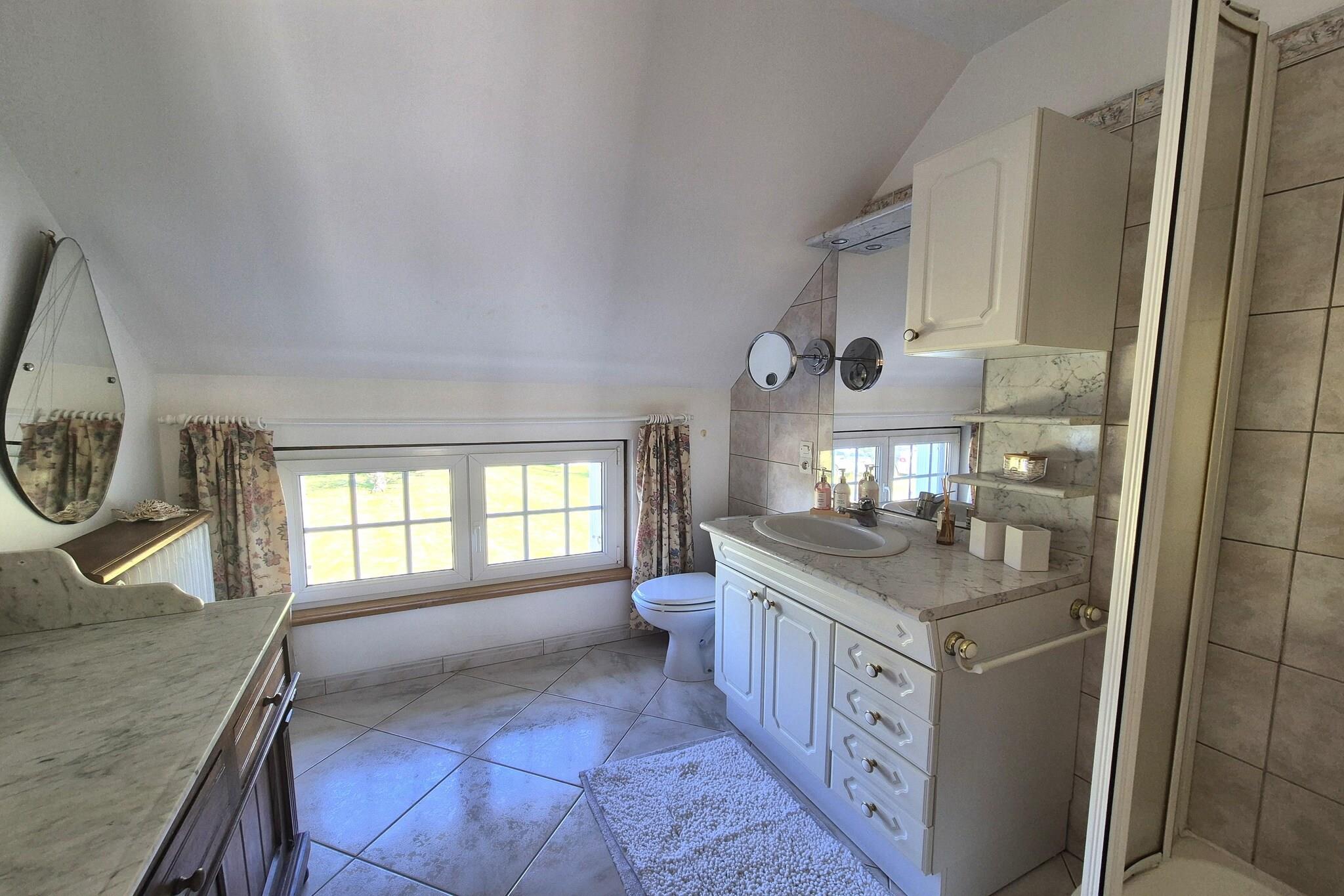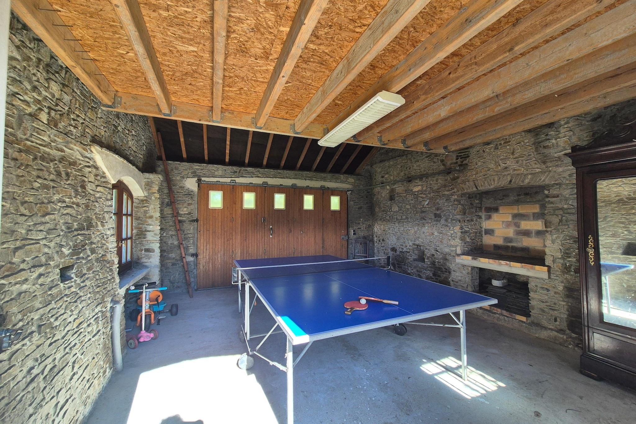 Ground floor: (open kitchen(electric kettle, toaster, cooker(induction), coffee machine(filter), coffee machine(cups), oven, microwave, dishwasher, fridge, freezer, Juicer), Living/diningroom(TV(international television channels), dining table, fireplace), bedroom(single bed(90 x 190 cm), double bed(160 x 190 cm), TV), bathroom(shower, toilet), bathroom(shower, toilet)) On the 1st floor: (Sitting room(TV), bedroom(single bed(90 x 190 cm), double bed(140 x 190 cm), TV), bedroom(double bed(140 x 190 cm), washbasin), bedroom(bunk bed), bathroom(shower, toilet), toilet) Large kitchen(freezer, tumble dryer, washing machine), garden(fenced, 4000 m2), parking, table tennis table, oil heating