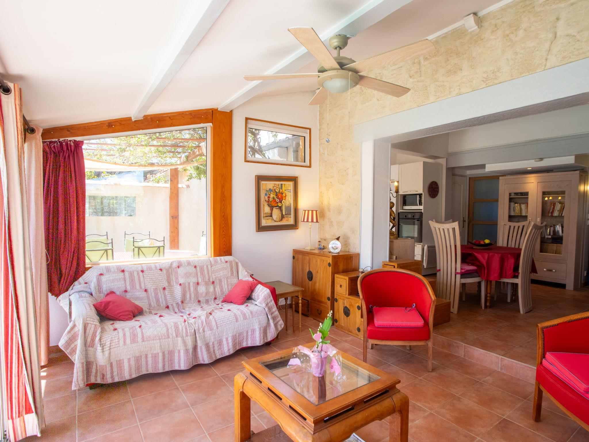 3-room house 70 m2. Spacious and bright, beautiful furnishings: living/dining room with dining table and TV (flat screen). Exit to the swimming pool. 1 room with 1 french bed (160 cm, length 190 cm). Open kitchen (4 hot plates, oven, dishwasher, toaster, kettle, microwave, freezer, electric coffee machine). Exit to the terrace. Shower, sep. WC. Air-conditioning. Upper floor: 1 room with 2 beds (140 cm, length 190 cm), shower/WC. Natural stone floors. Terrace 15 m2, porch 12 m2. Terrace furniture. View of the swimming pool. Facilities: washing machine, iron. Internet (WiFi, free). Please note: suitable for families. TV only FR. Smoke alarm. Offer by a private individual according to Art. 155, IV of CGI. 83071001545JY