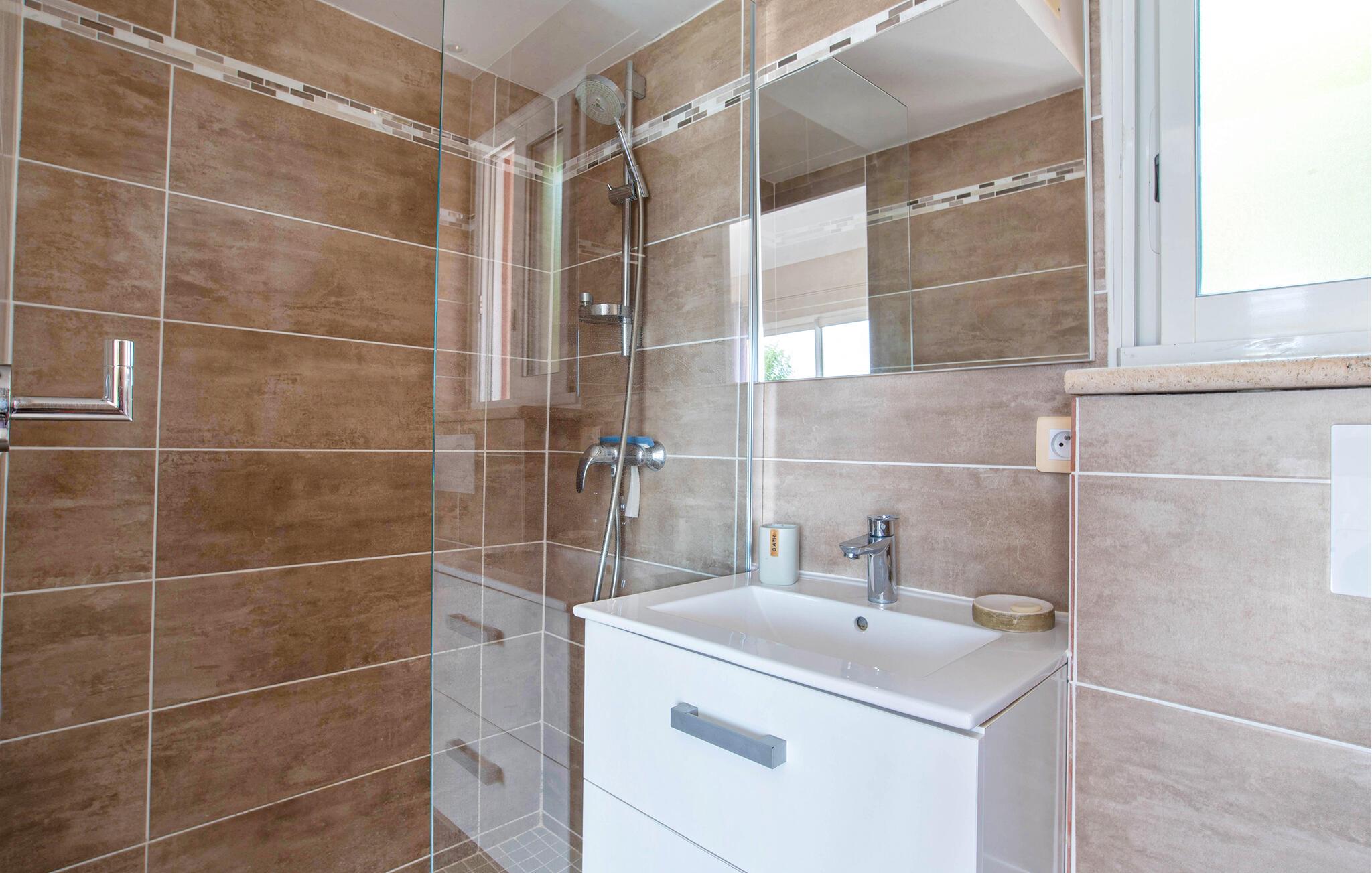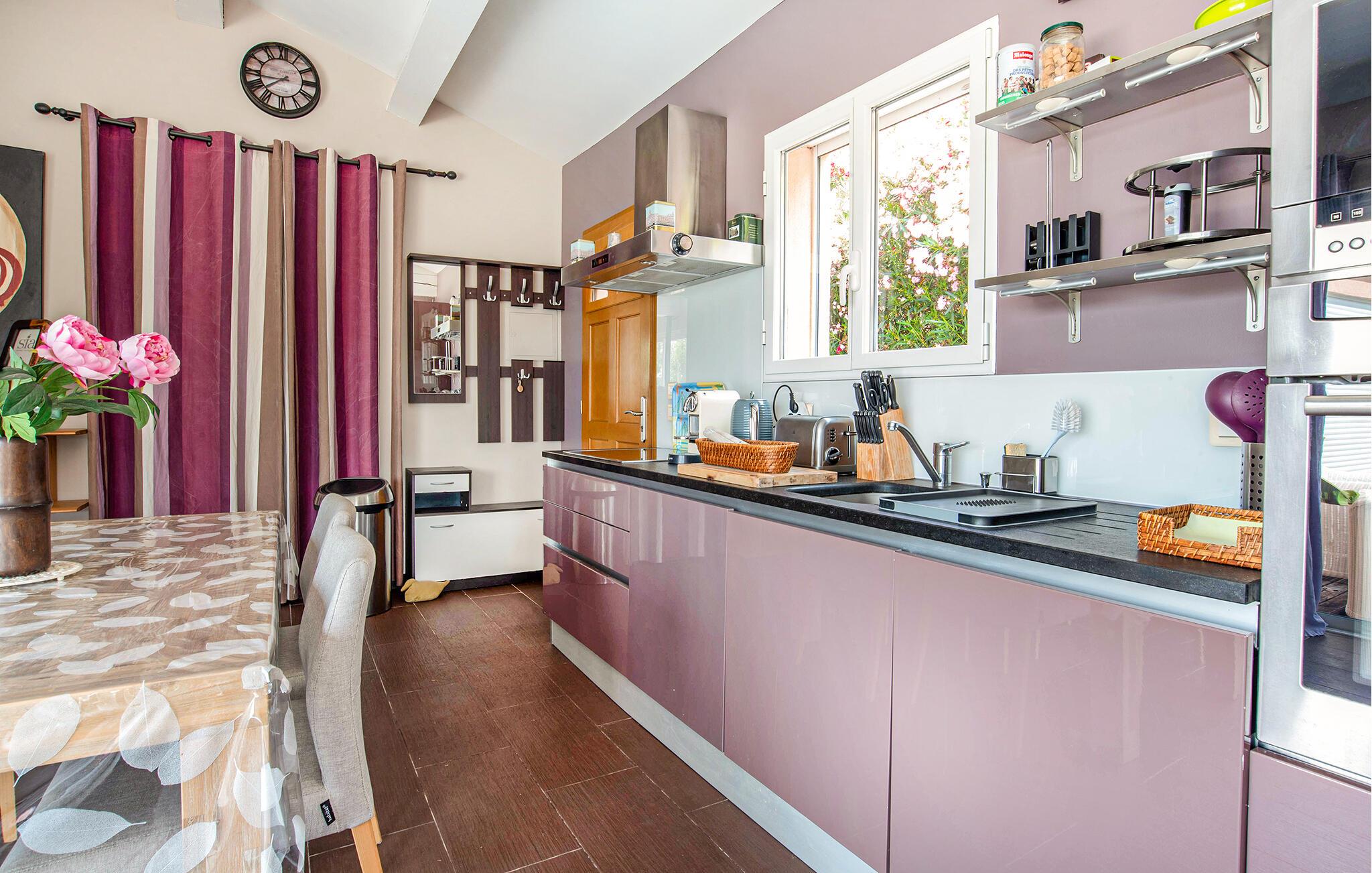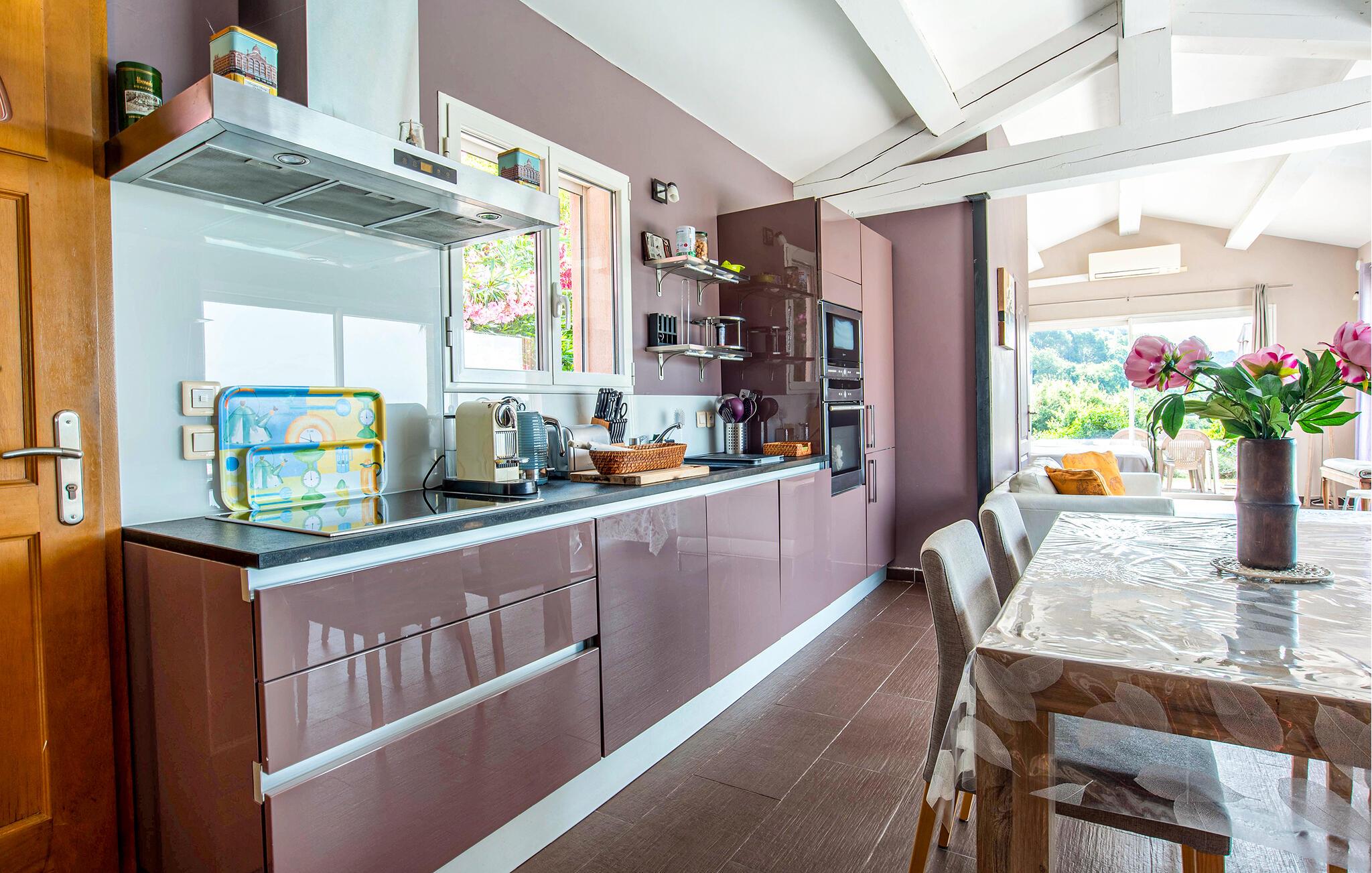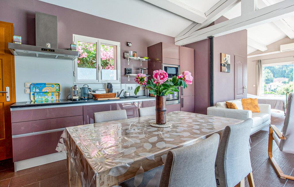 Dieses charmante Studio ist der ideale Ort, um in vertrauter Zweisamkeit dem Alltag zu entfliehen und erholsame Tage an der Côte d’Azur zu genießen. Genießen Sie Ihre Mahlzeiten im hellen und liebevoll eingerichteten Wohnbereich, zaubern Sie köstliche Gerichte aus frischen Produkten vom Markt und plaudern Sie bei einem Glas Wein, während Sie den Blick über die malerische Landschaft schweifen lassen.