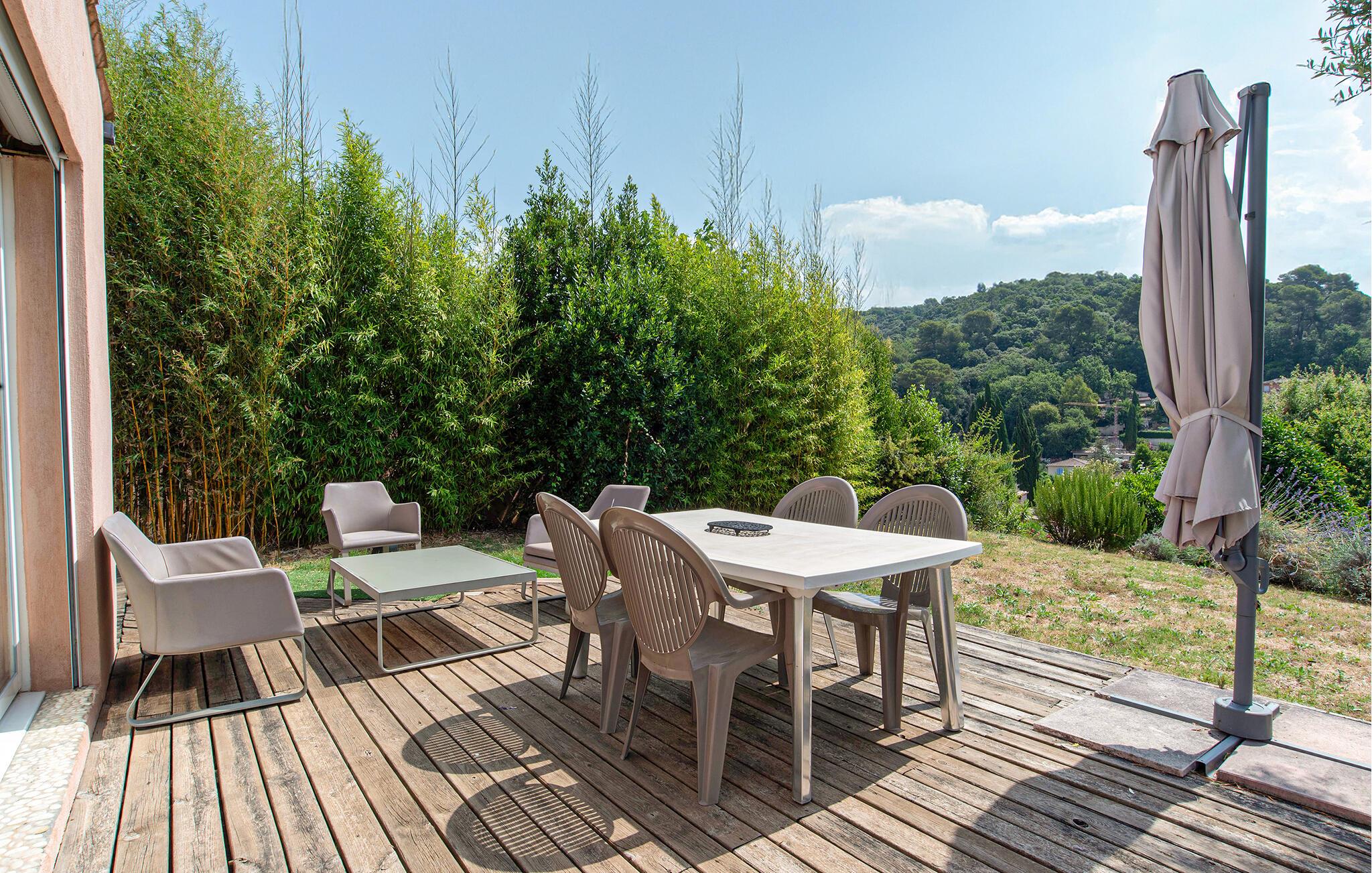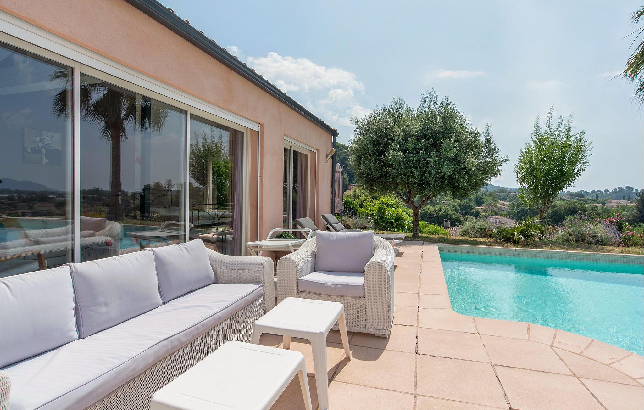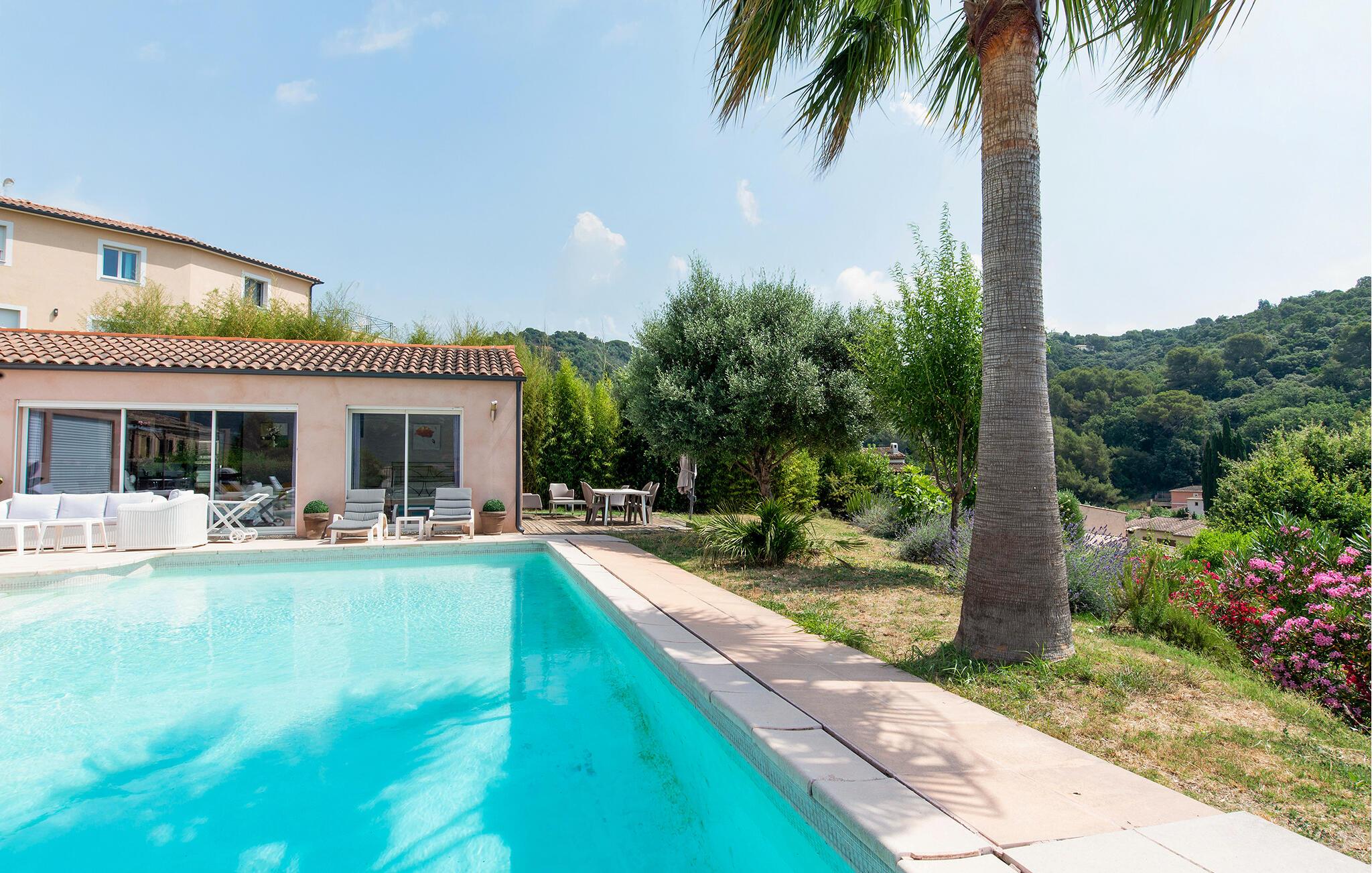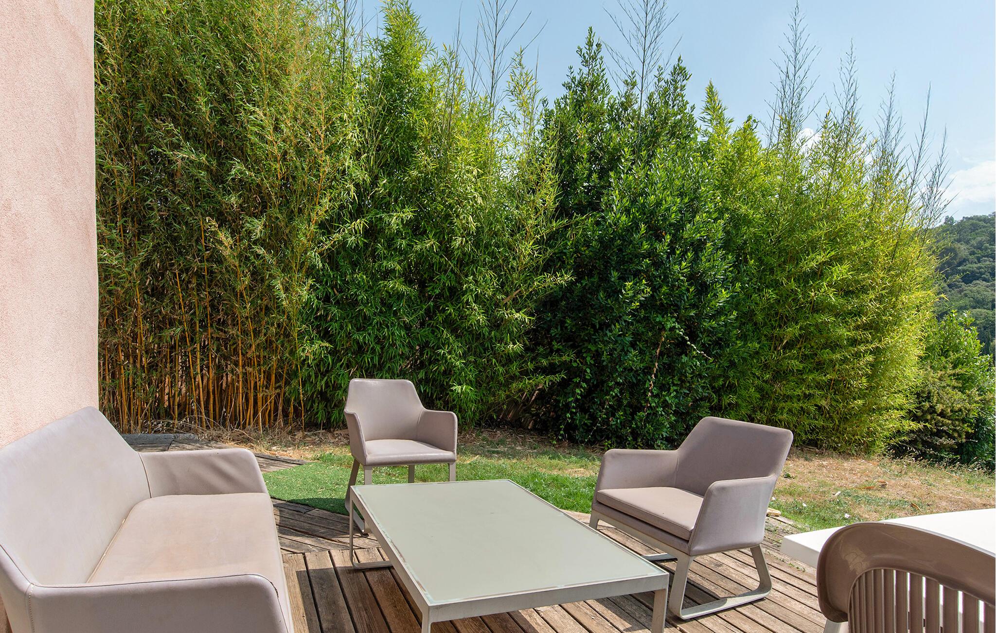 Im großen Pool können Sie in der milden Morgensonne gemächlich Ihre Bahnen ziehen, bevor Sie sich ein ausgiebiges Frühstück auf der Terrasse servieren. Entfachen Sie den Grill und freuen Sie sich auf stimmungsvolle Abende in mediterraner Atmosphäre.