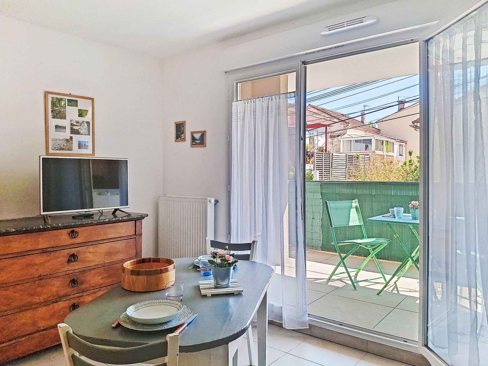 2-room apartment 40 m2 on 1st floor. Bright, comfortable and beautiful furnishings: living/dining room 20 m2 with TV (flat screen). Exit to the terrace, south facing position. 1 room with 1 french bed (140 cm, length 190 cm). Open kitchen (oven, dishwasher, 3 induction hot plates, toaster, kettle, microwave, freezer, electric coffee machine, Capsules for coffee machine (NESPRESSO) extra). Bath or shower/WC. Gas heating. Terrace 10 m2, south-west facing position, south-west facing position. Terrace furniture. Facilities: washing machine. Internet (WiFi, extra). Garage space n 22 (1 car), height 190 cm, width 255 cm. Please note: non-smokers only. TV only FR. Smoke alarm. Offer by a private individual according to Art. 155, IV of CGI.