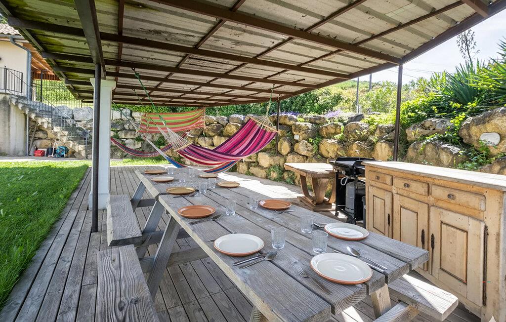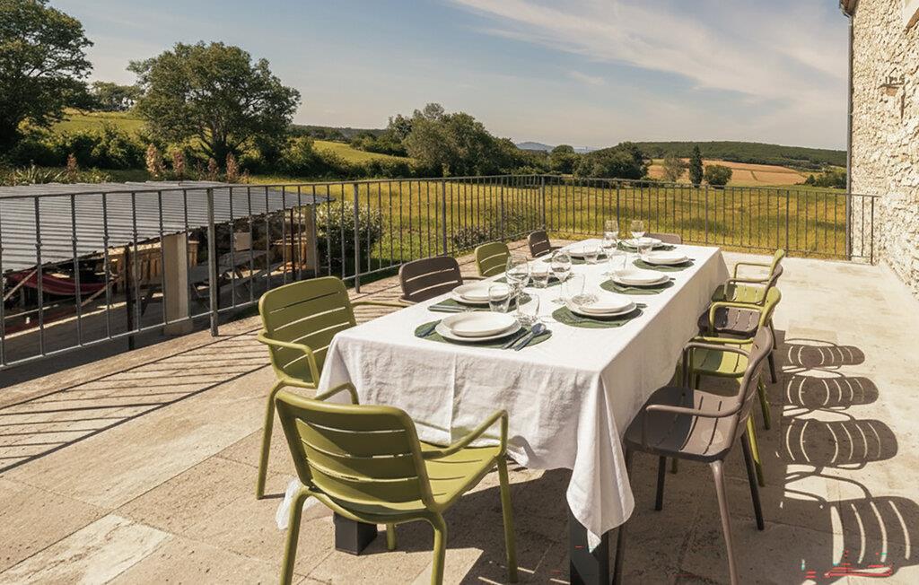 Frühstücken Sie morgens in geselliger Runde auf der Terrasse und genießen Sie den Blick in die weite Landschaft. Entspannen Sie sich auf den Liegestühlen, spielen Sie eine Runde Boule und versammeln Sie Familie oder Freunde zu einem gemütlichen Grillessen.