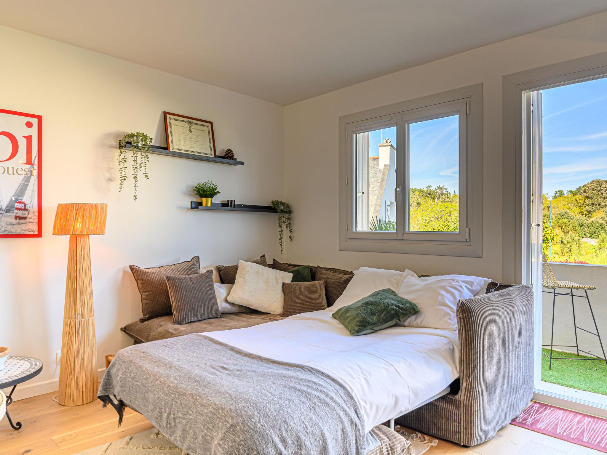 "Ty Breiz", 2-room apartment 40 m2, on the ground floor. Renovated in 2022: living/dining room with 1 double sofabed (1 x 140 cm, length 190 cm), TV (flat screen). Exit to the balcony. 1 room with 1 french bed (1 x 160 cm, length 190 cm). Open kitchen (oven, dishwasher, 3 induction hot plates, toaster, kettle, microwave, freezer, electric coffee machine). Shower, sep. WC. Electric heating. Balcony 5 m2, east facing position and south facing position. Balcony furniture. Facilities: washing machine, dryer, baby cot, hair dryer. Internet (WiFi, free). Parking space n 2. Please note: maximum 1 pet/ dog allowed. Smoke alarm. Offer by a private individual according to Art. 155, IV of CGI. 5625800017210