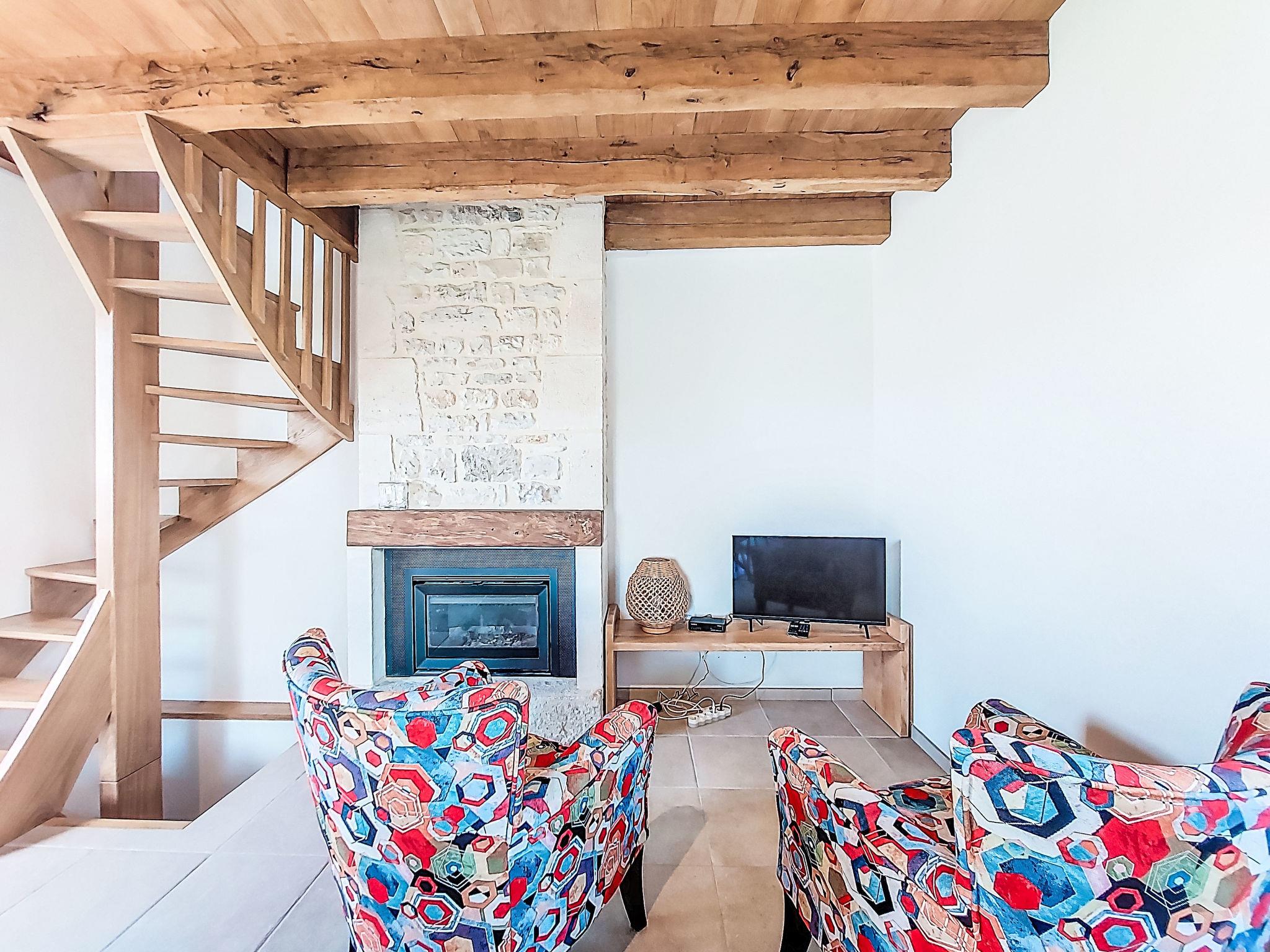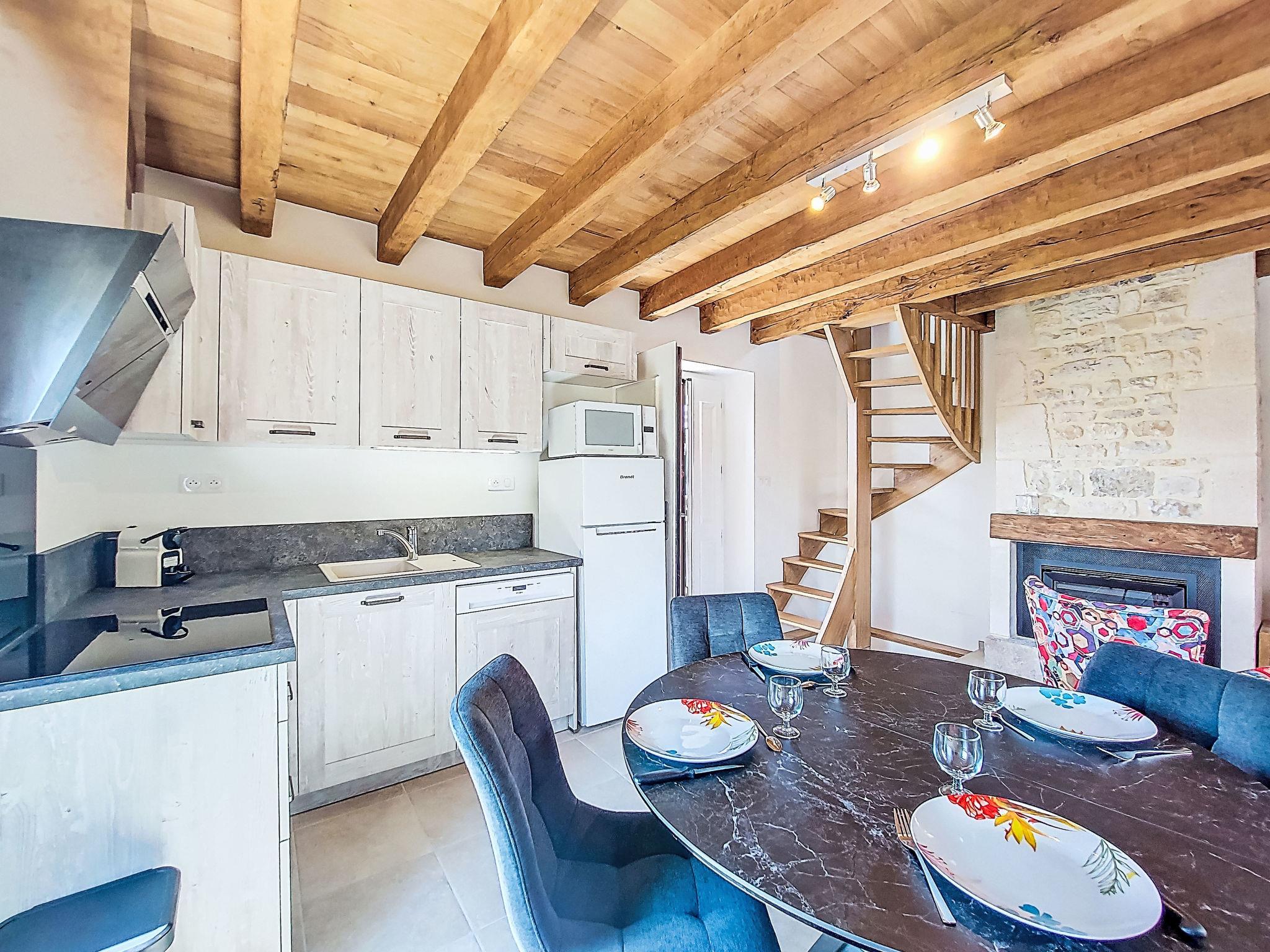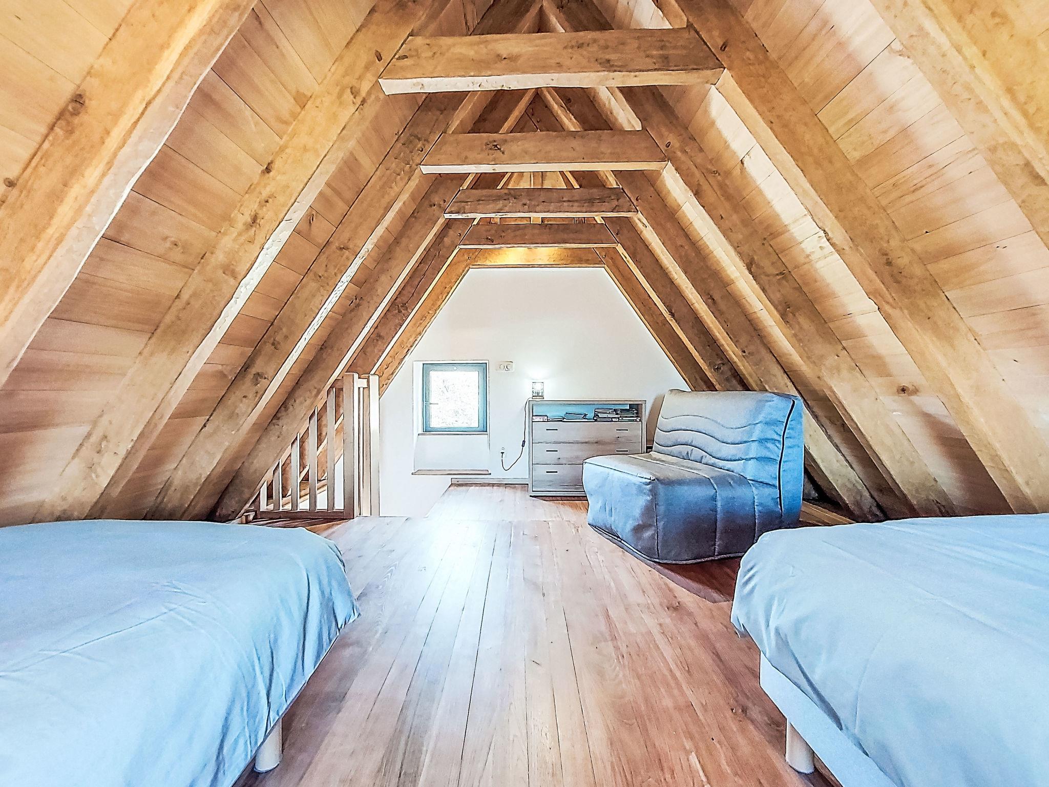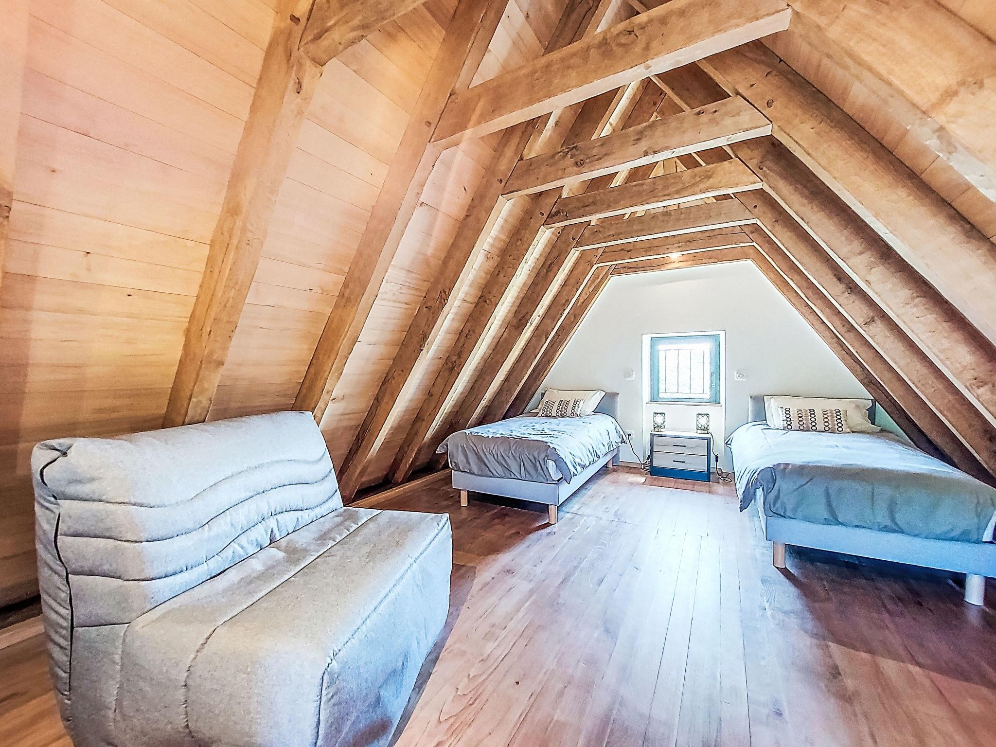 "Cuzac", 3-room house 50 m2 on 3 levels. Partly with sloping ceilings, modern and cosy furnishings: kitchen-/living room (dishwasher, 1 induction hot plates, 3 gas rings, toaster, kettle, electric coffee machine, Capsules for coffee machine (Nespresso) extra, combination microwave) with open-hearth fireplace, dining table and satellite TV (flat screen), DVD. On the lower ground floor: (steep stair), 1 room with 1 french bed (140 cm, length 190 cm). Exit to the garden. Shower, sep. WC. Upper floor: 1 open room with sloping ceilings with 2 beds (90 cm, length 190 cm). Electric heating. Terrace roofed. Terrace furniture, barbecue (portable), deck chairs (2). Marvellous panoramic view of the countryside. Facilities: washing machine, children's high chair, baby cot, logs (extra). Please note: non-smoking house. Maximum 2 pets/ dogs allowed. Smoke alarm.